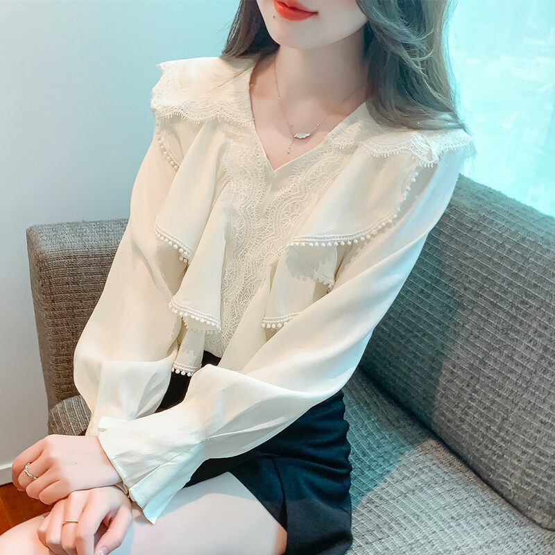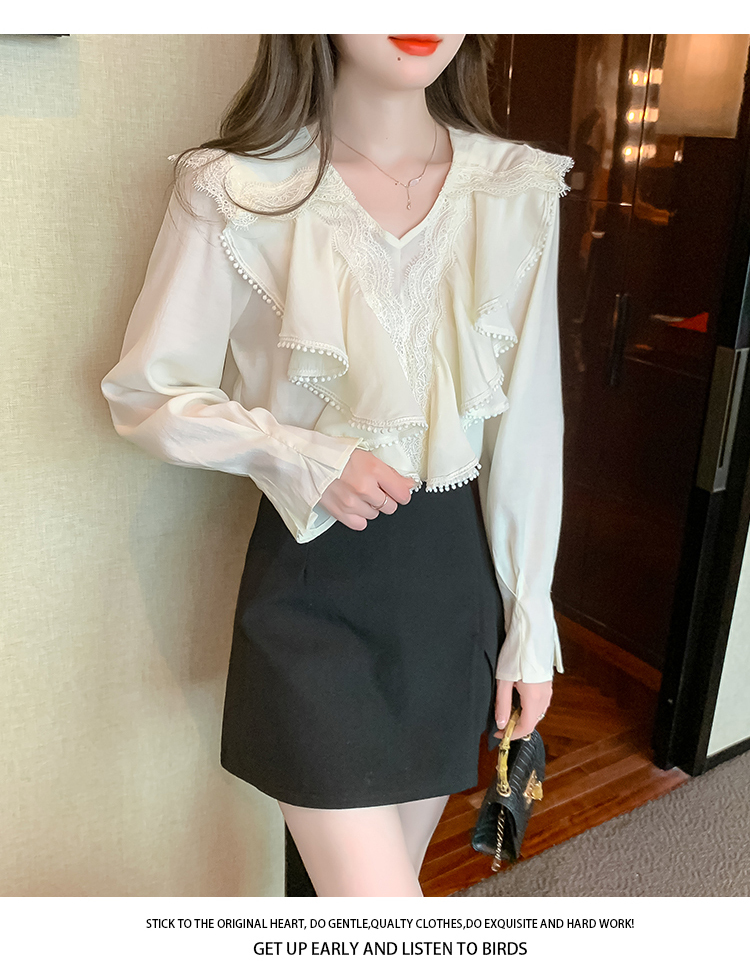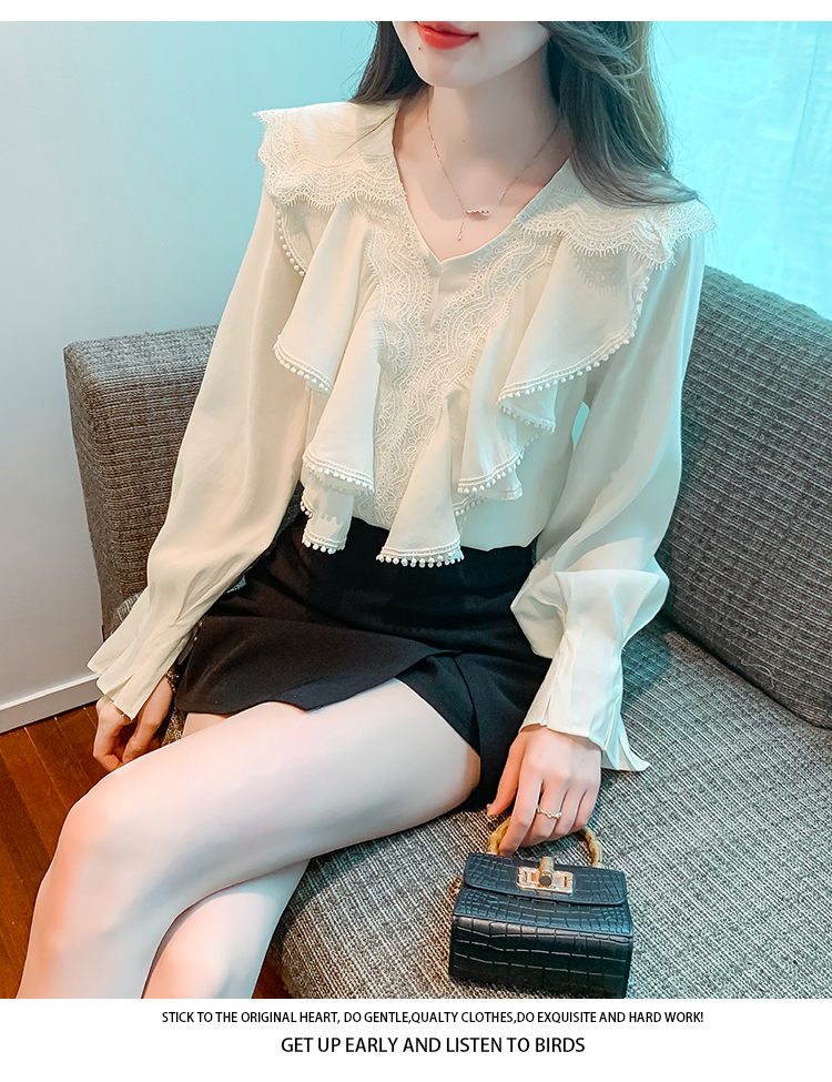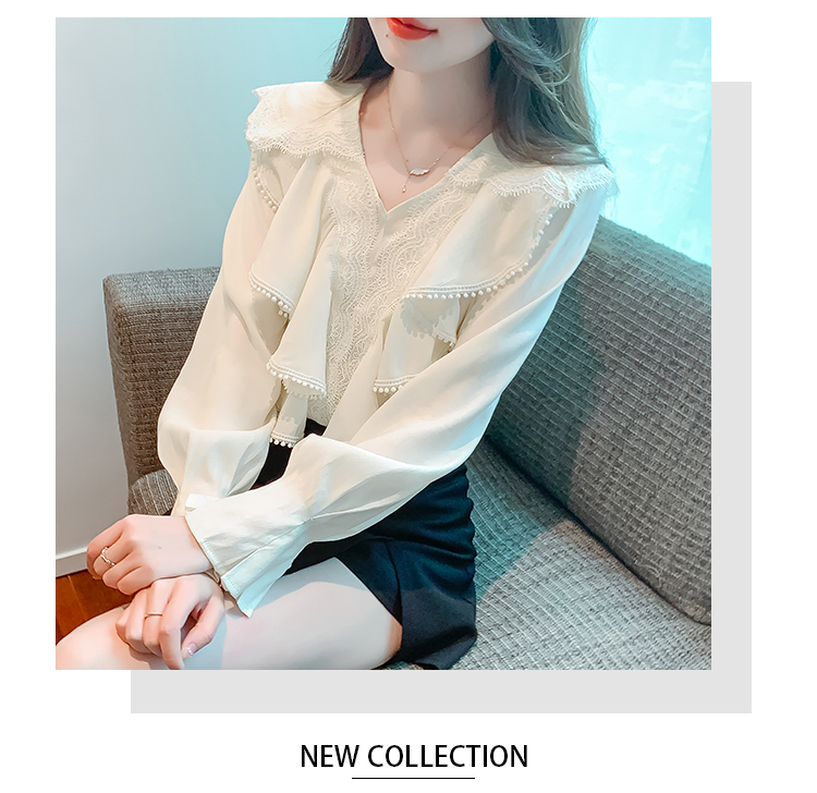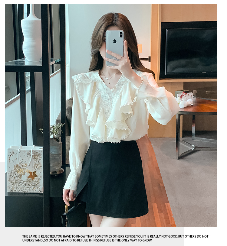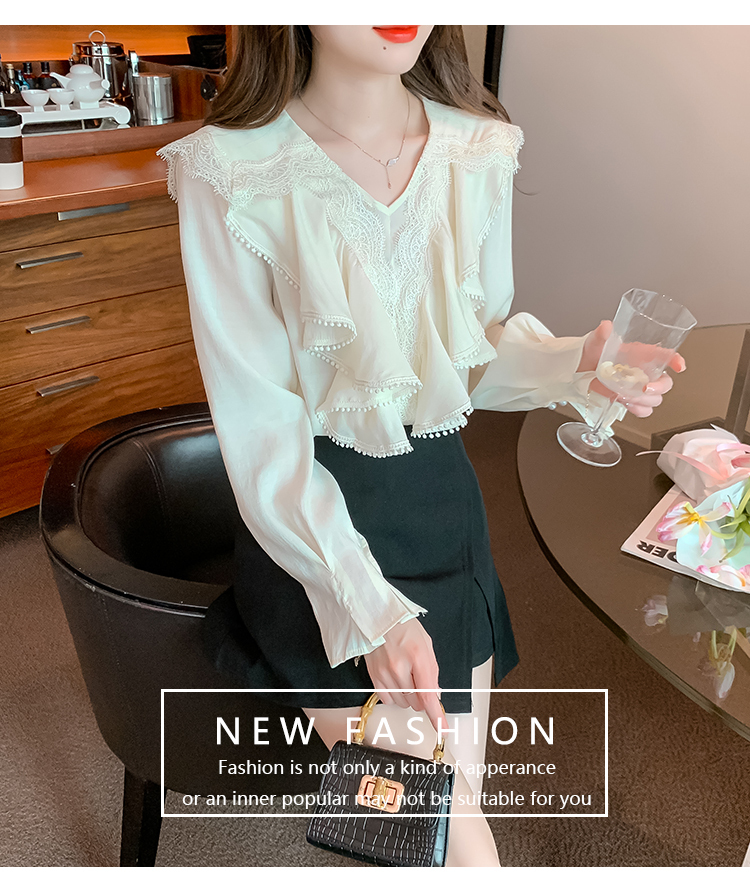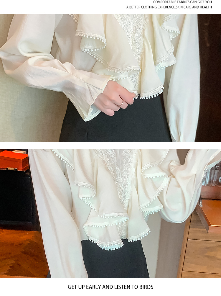 限量特惠|知性氣質荷葉邊拼接蕾絲雪紡衫-2色(09H4527)
