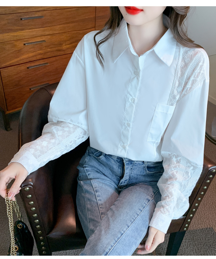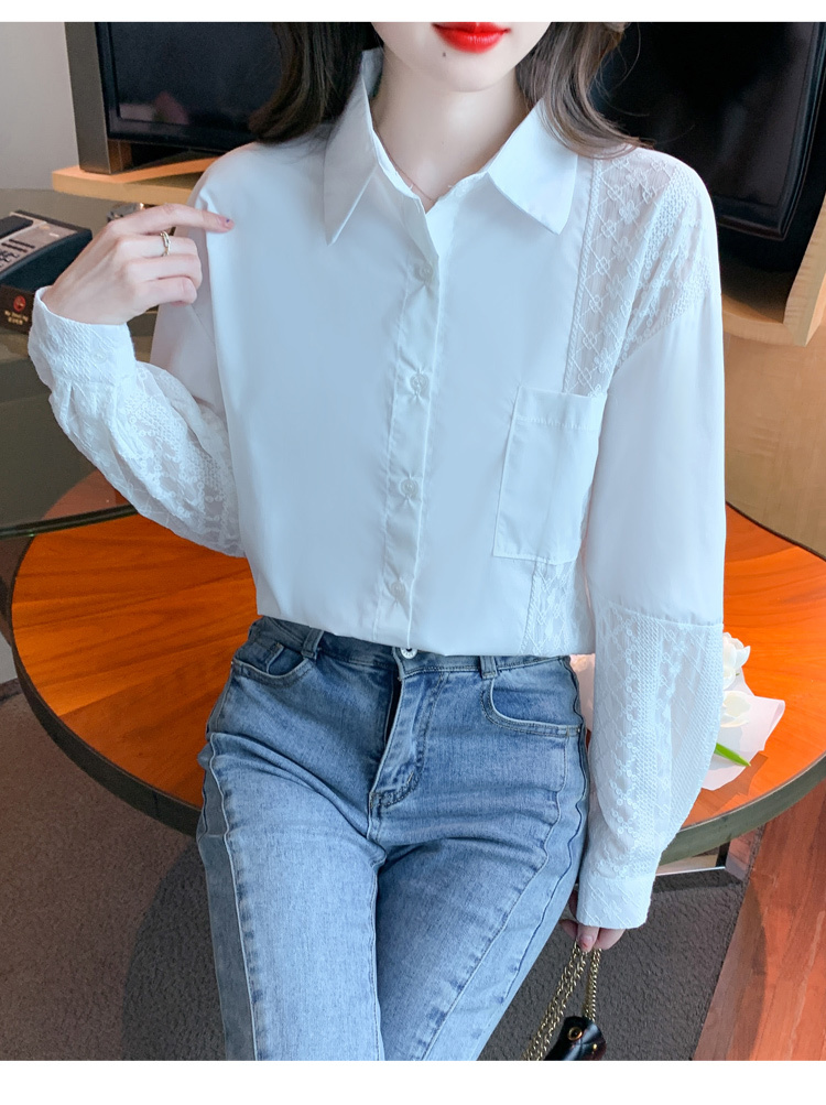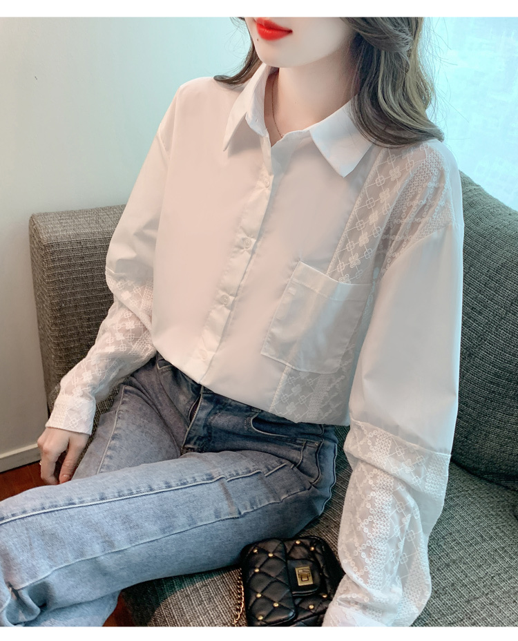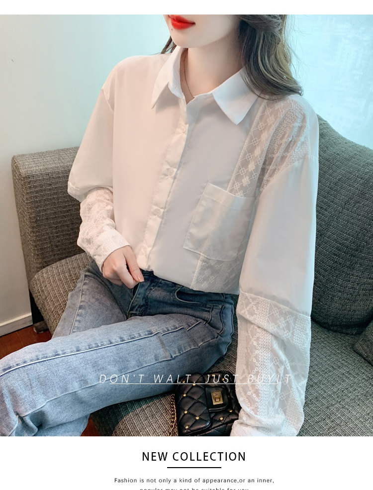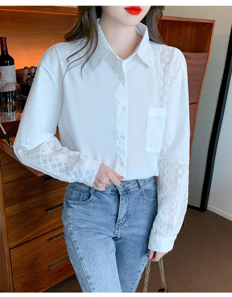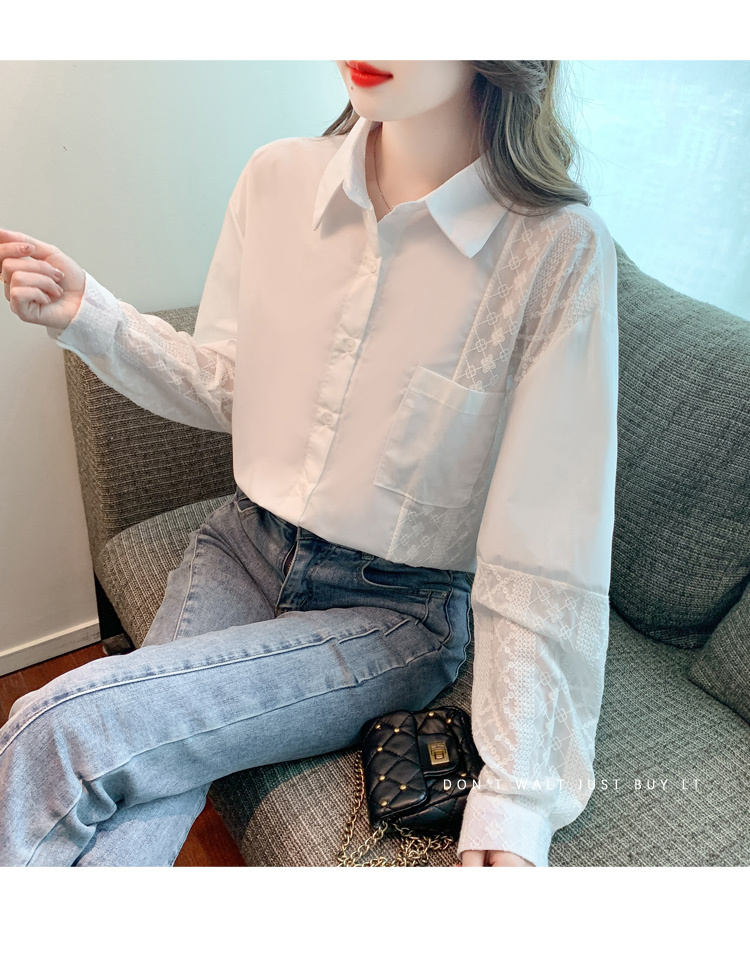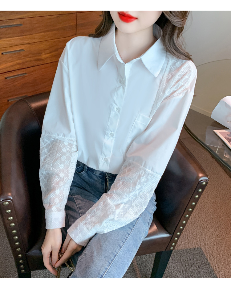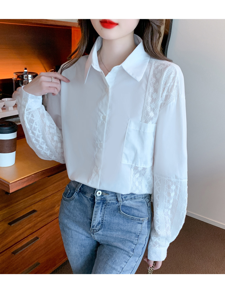 限量特惠|個性舒適拼接蕾絲翻領雪紡衫(09H4528)