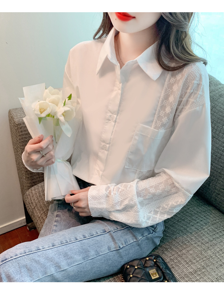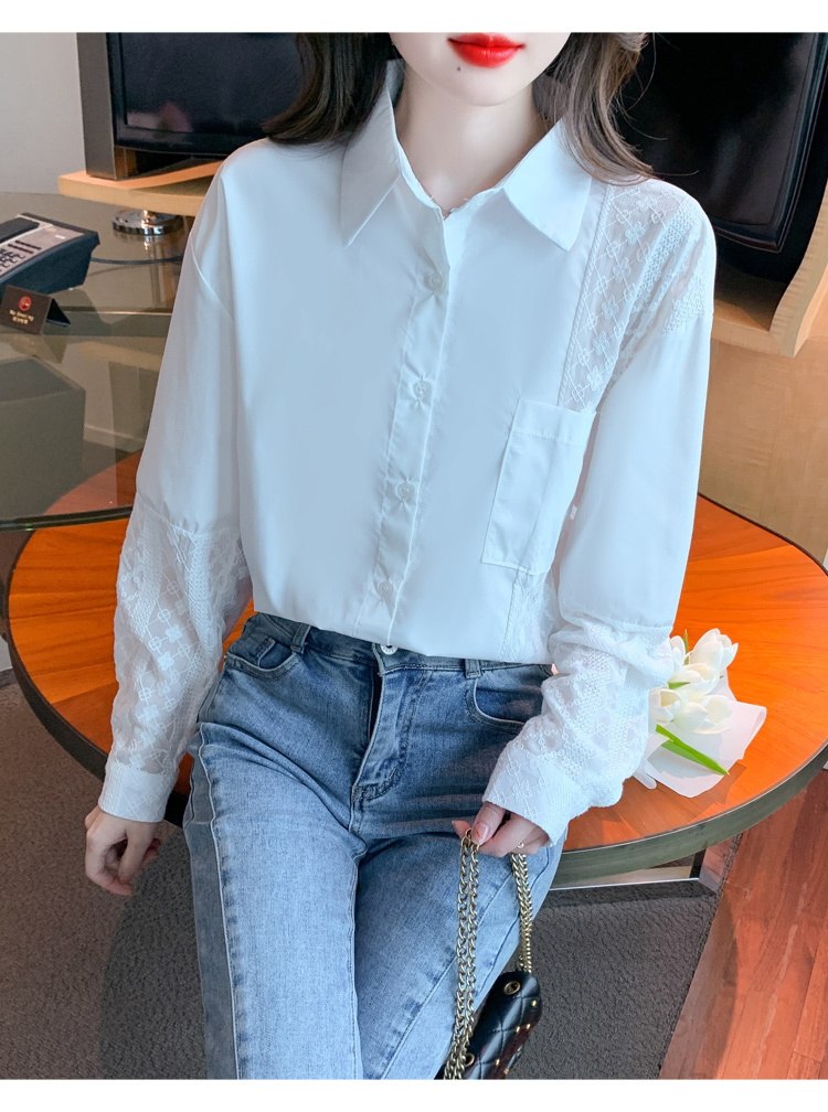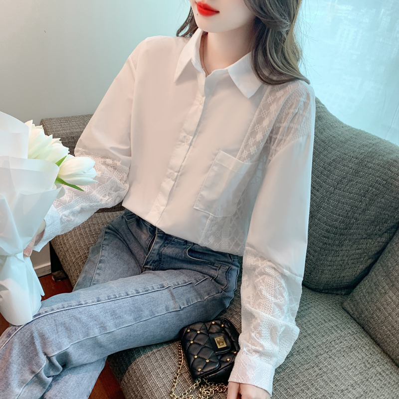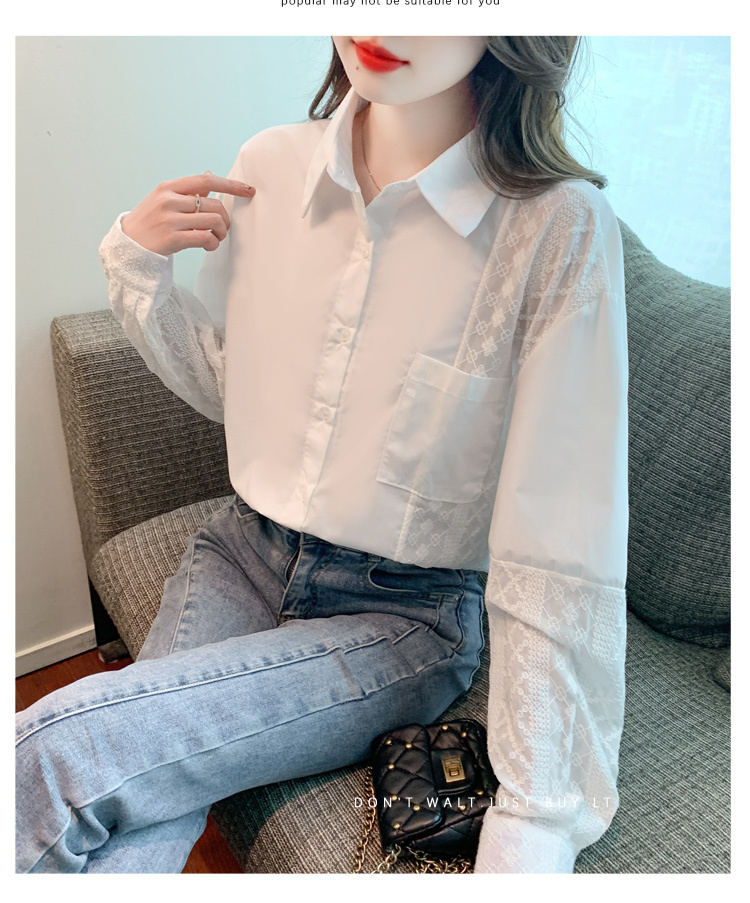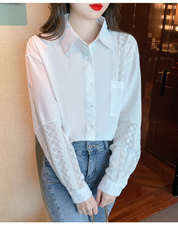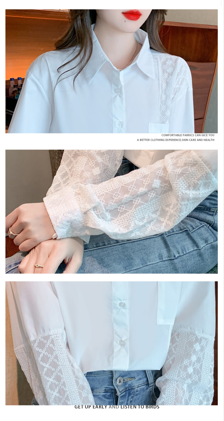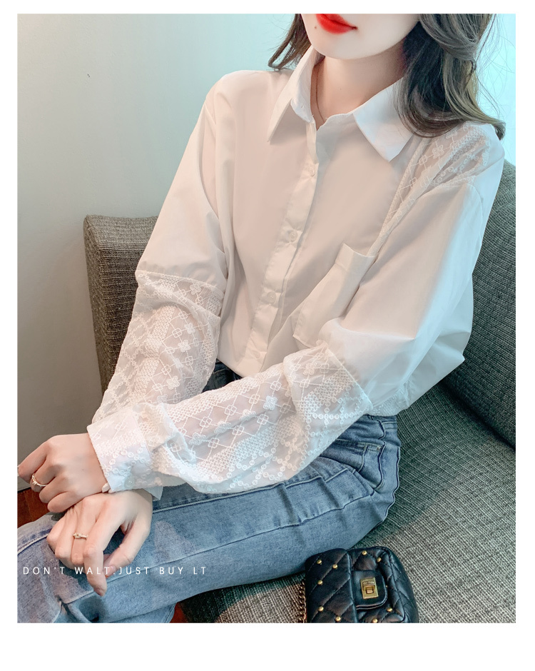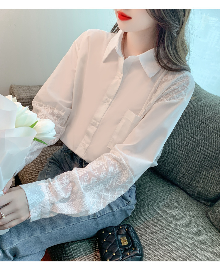 限量特惠|個性舒適拼接蕾絲翻領雪紡衫(09H4528)