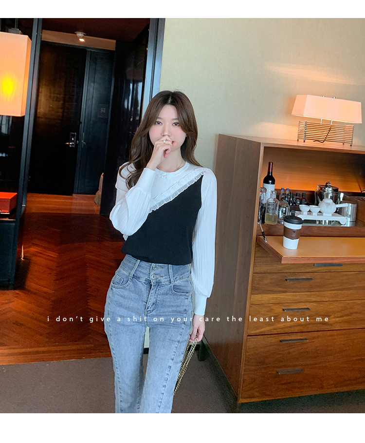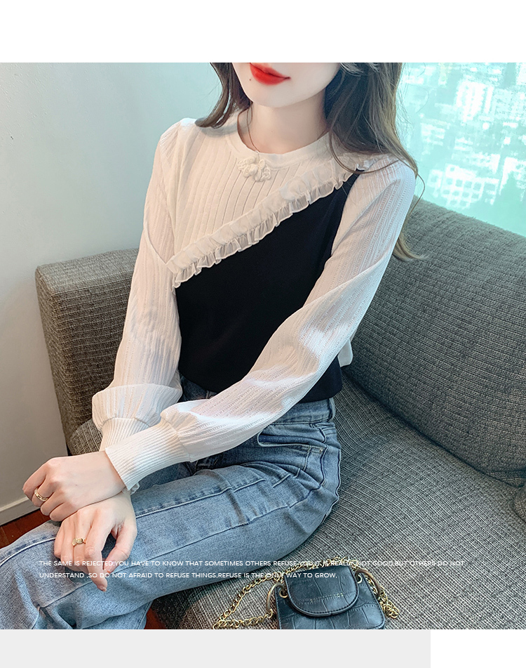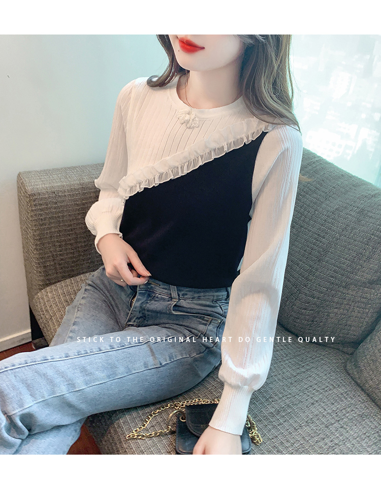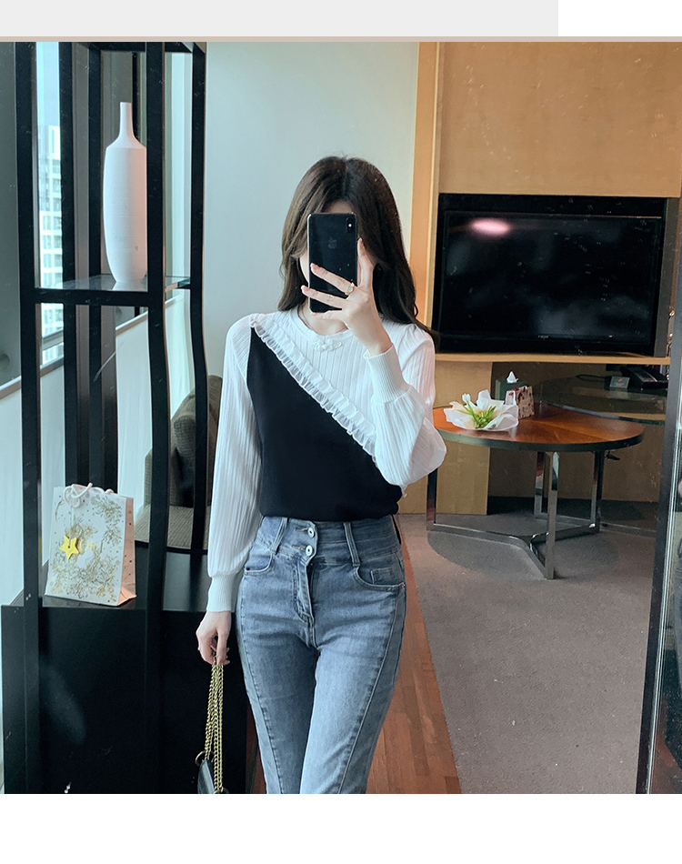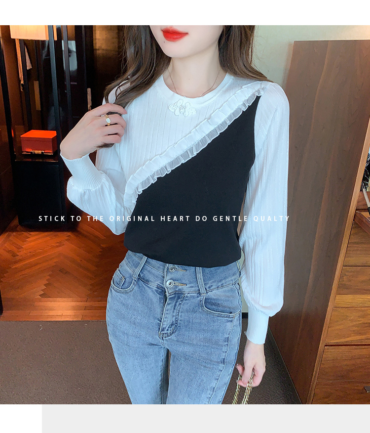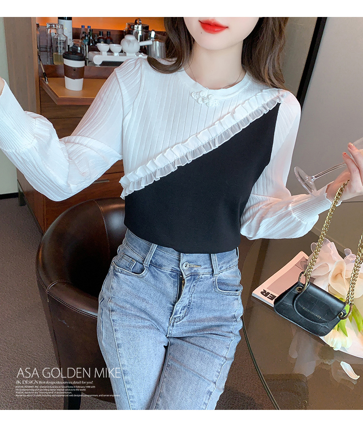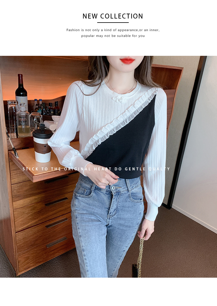 限量特惠|個性舒適拼接荷葉邊撞色上衣(09H4531)