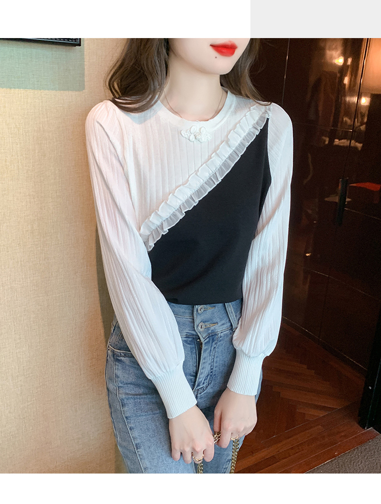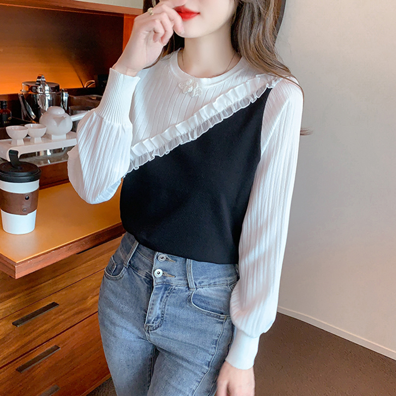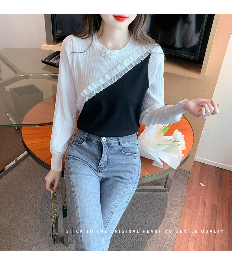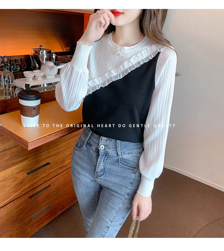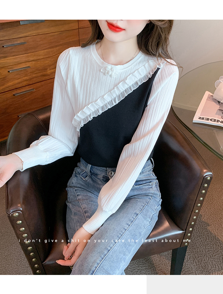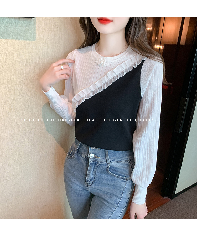 限量特惠|個性舒適拼接荷葉邊撞色上衣(09H4531)