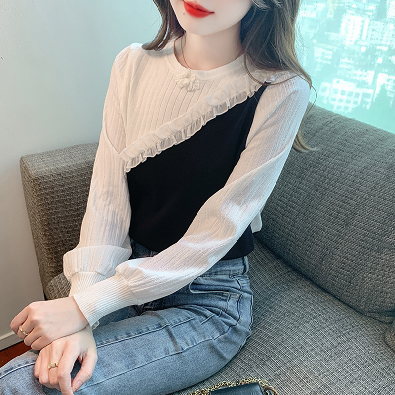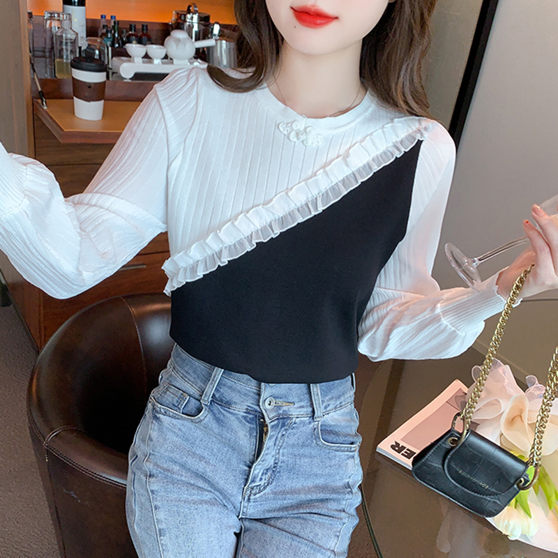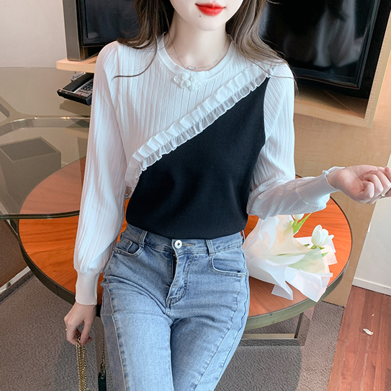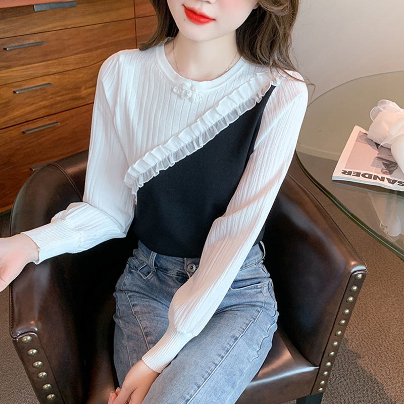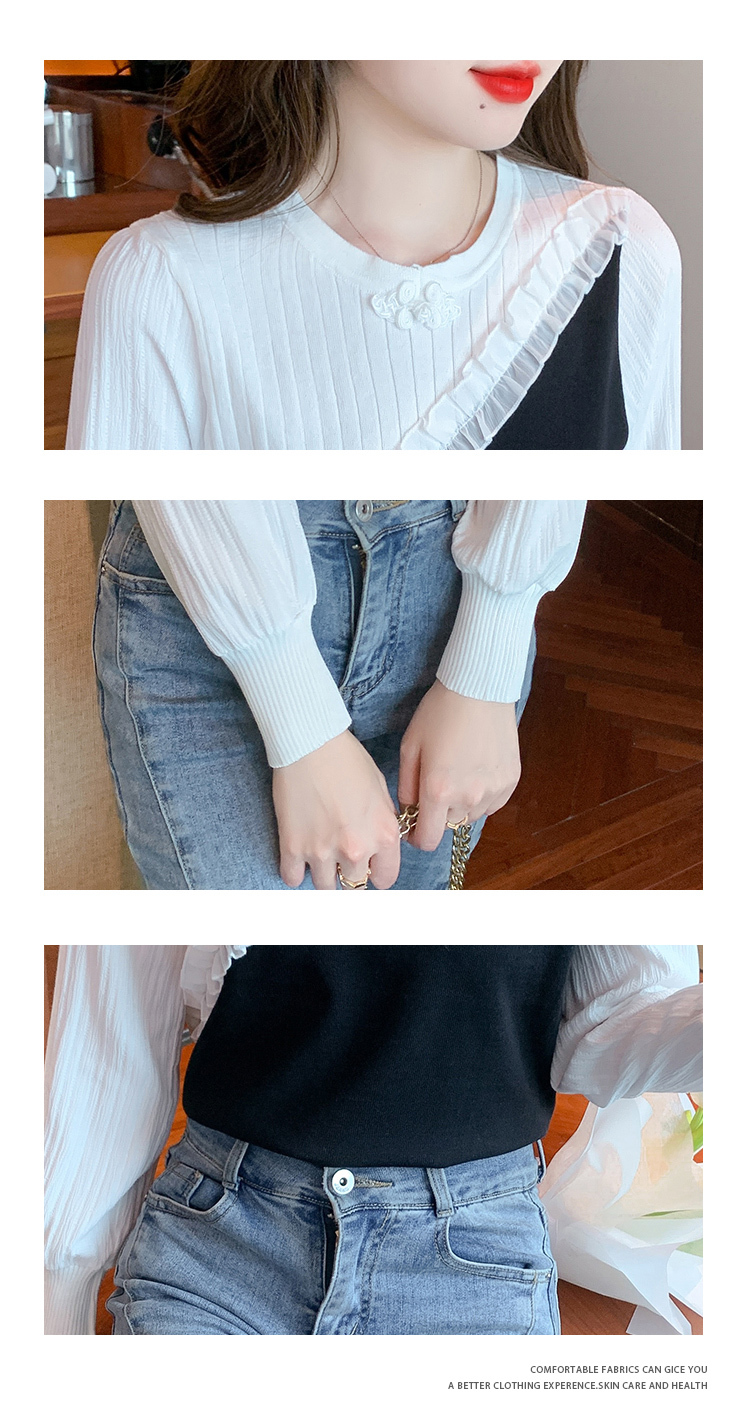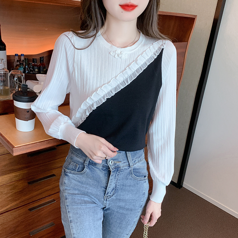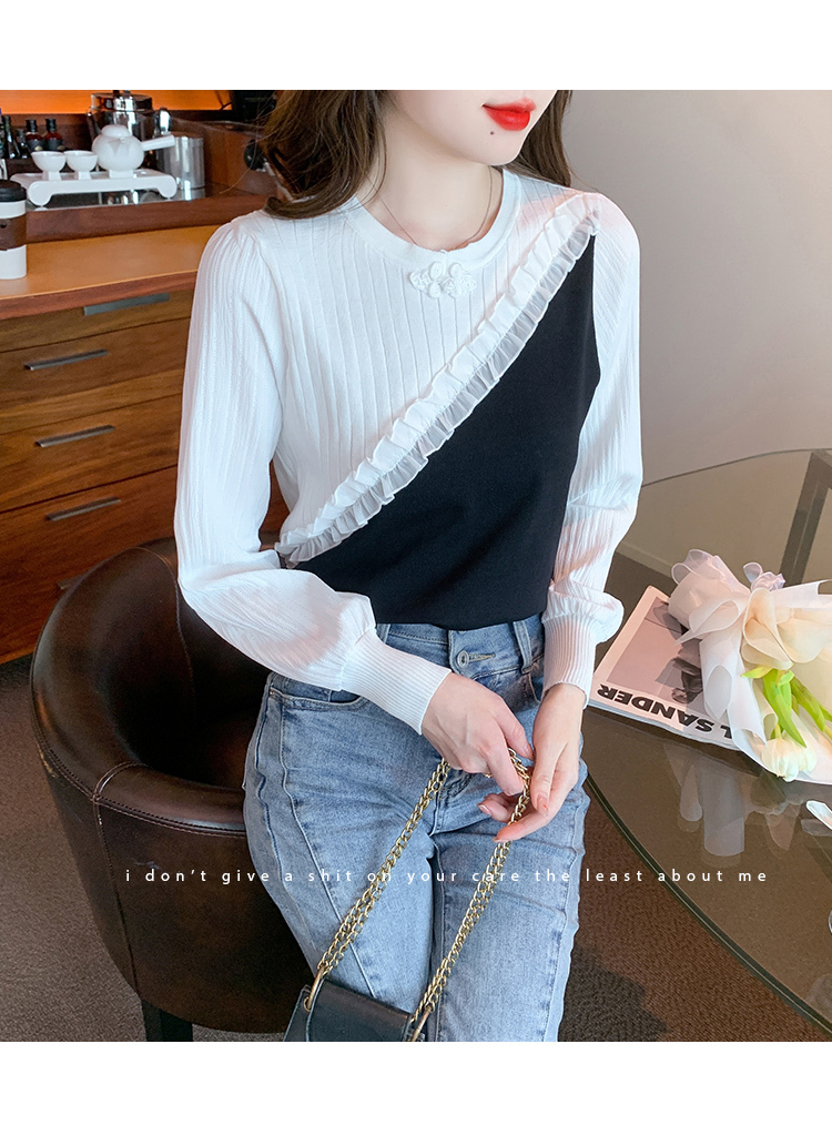限量特惠|個性舒適拼接荷葉邊撞色上衣(09H4531)