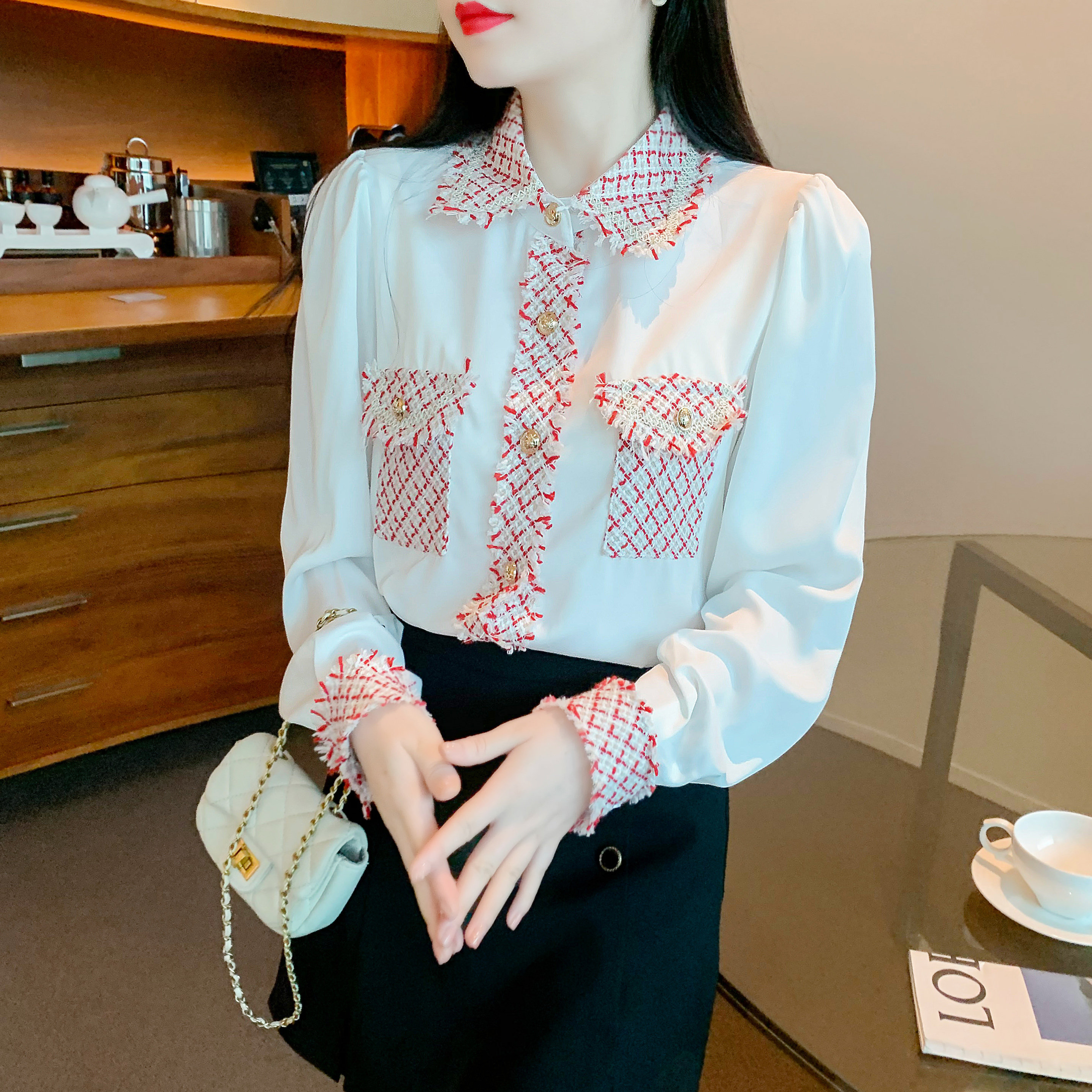 🔺面料:雪紡+粗花呢