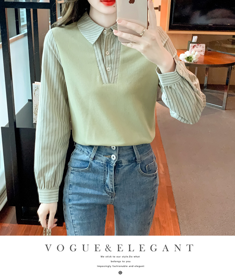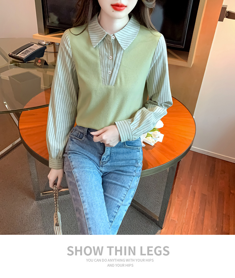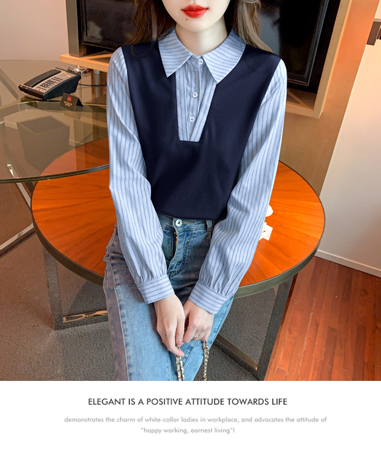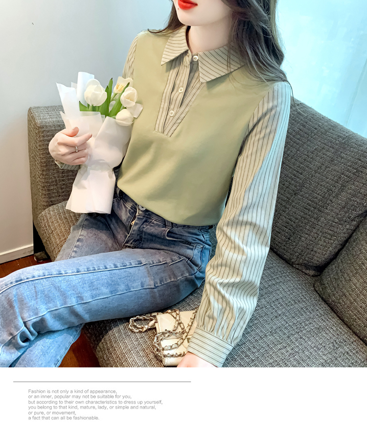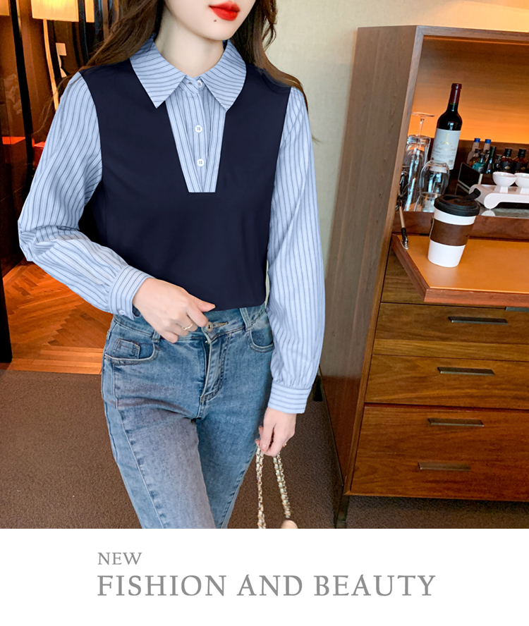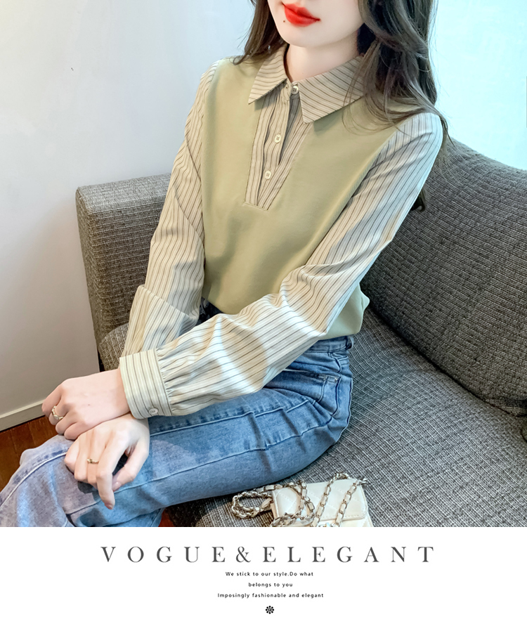 限量特惠|個性舒適拼接條紋假兩件式翻領上衣-2色(09H4551)