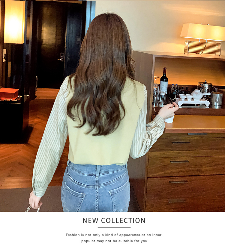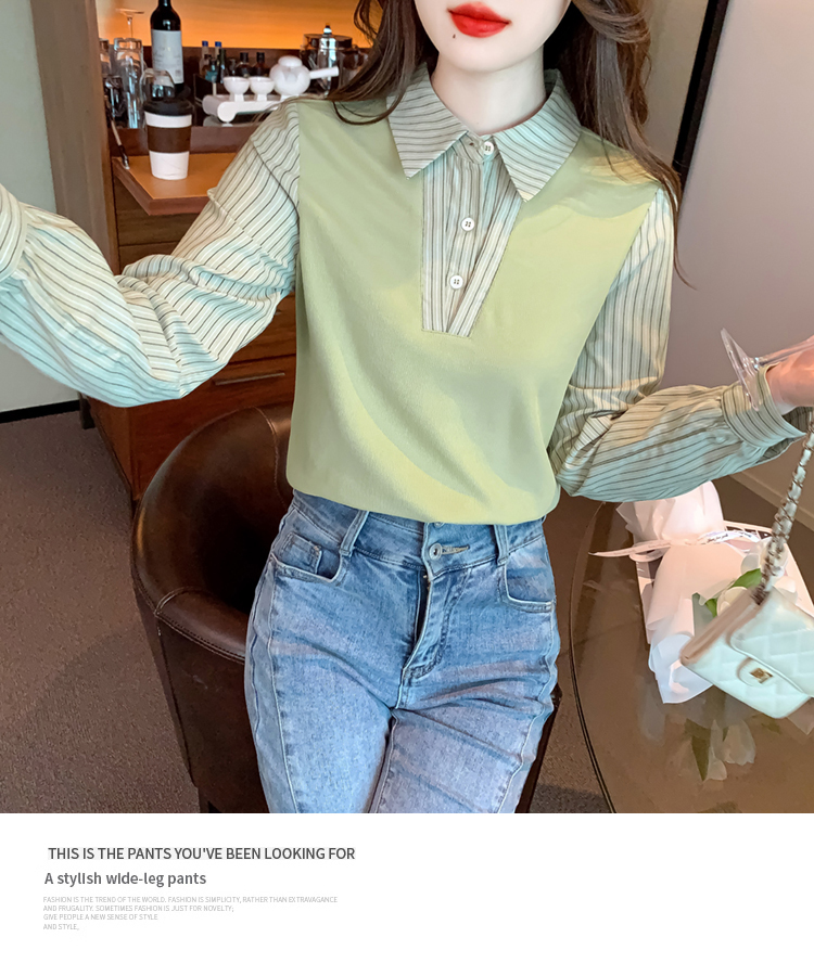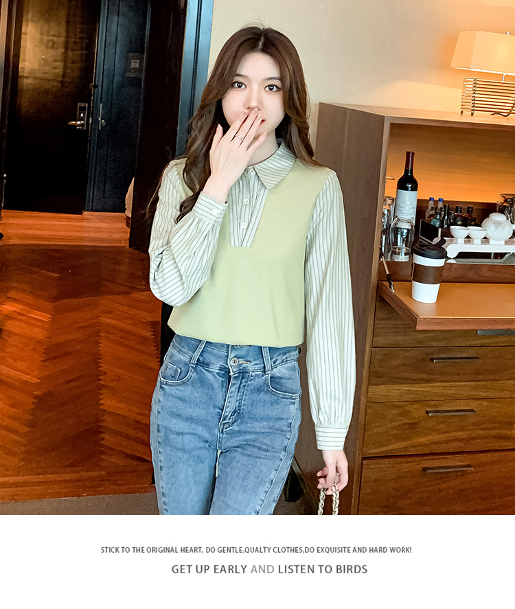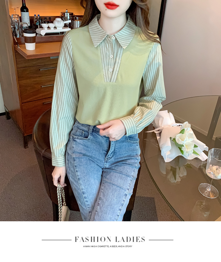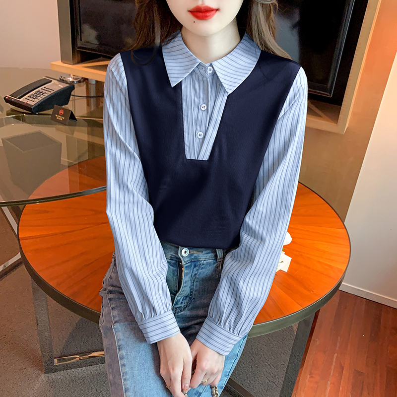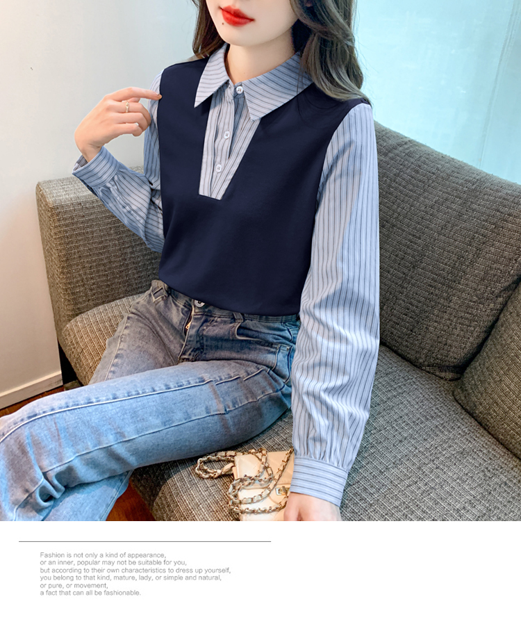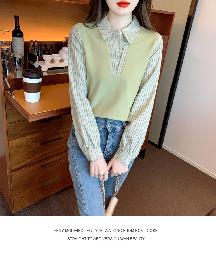 限量特惠|個性舒適拼接條紋假兩件式翻領上衣-2色(09H4551)