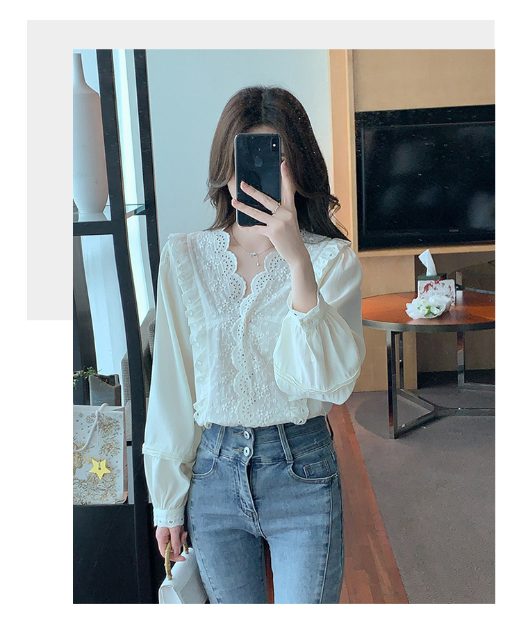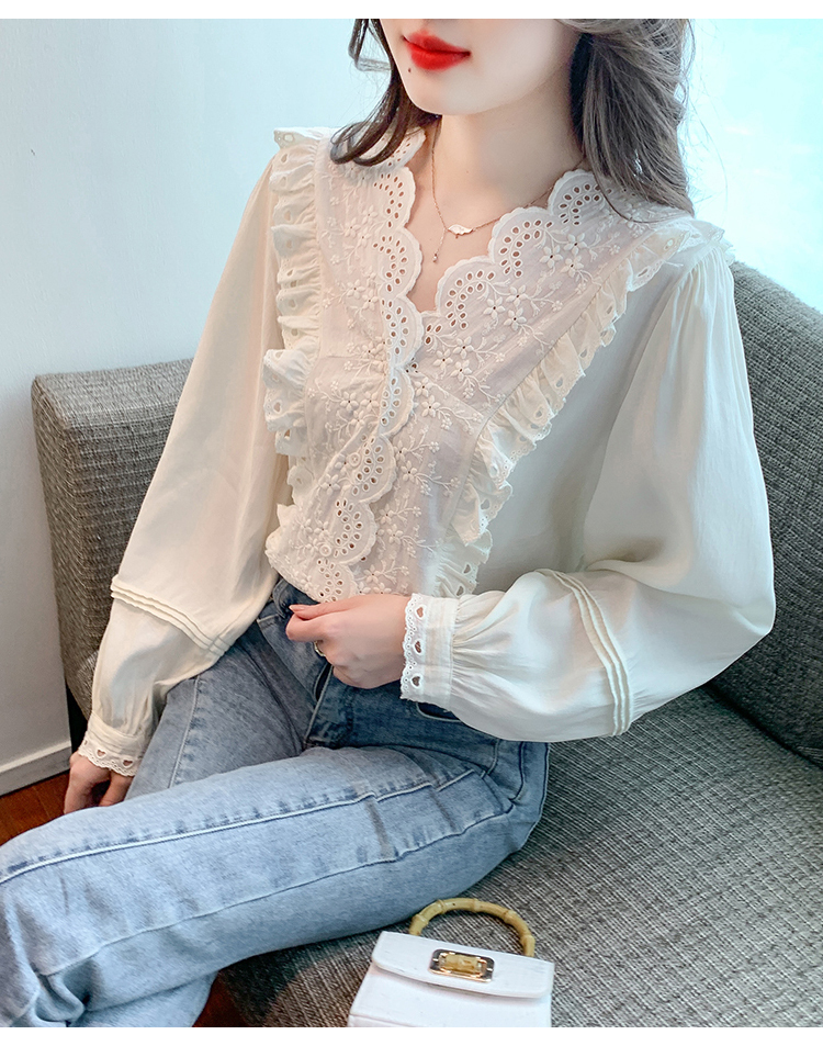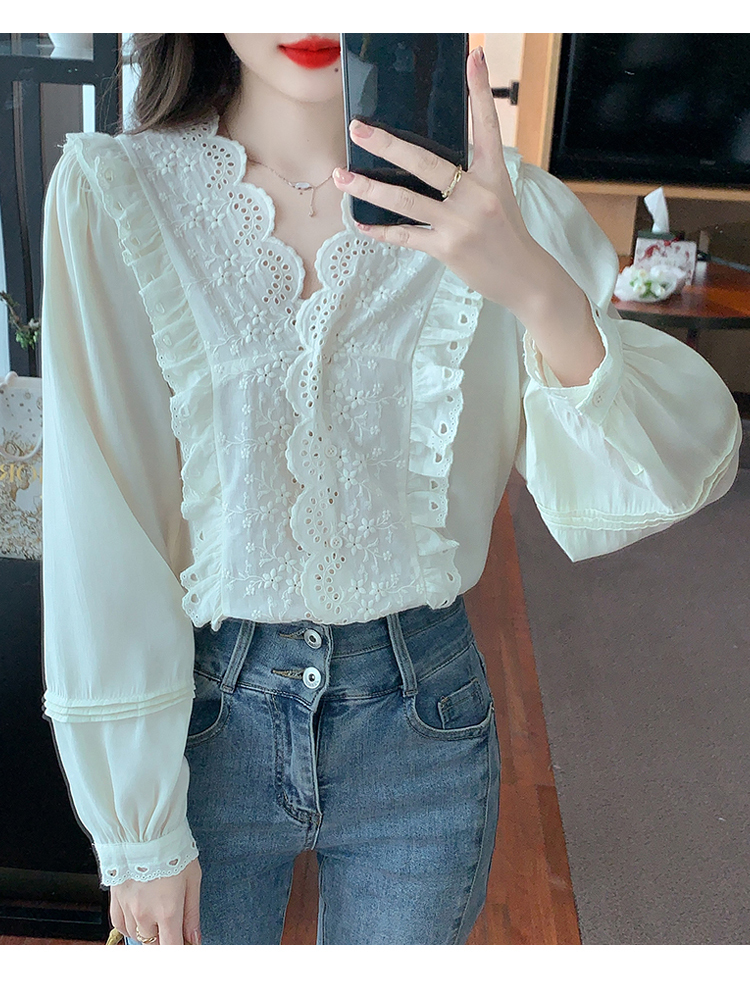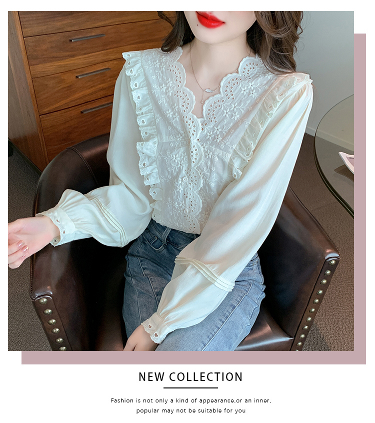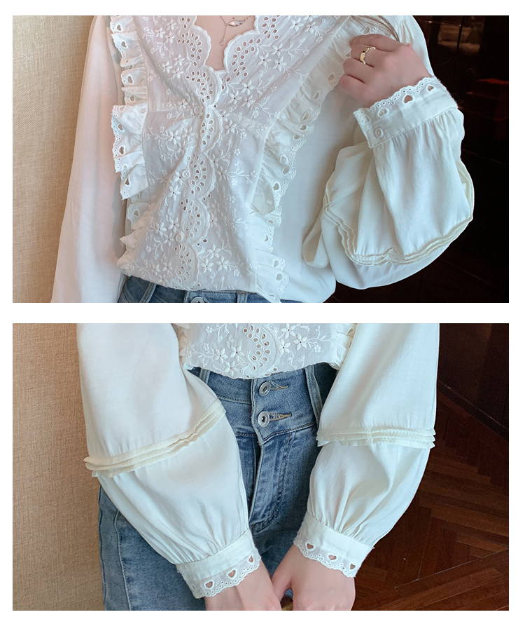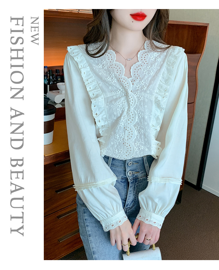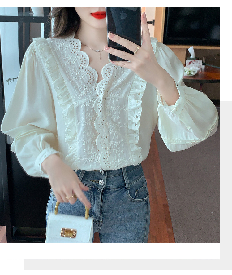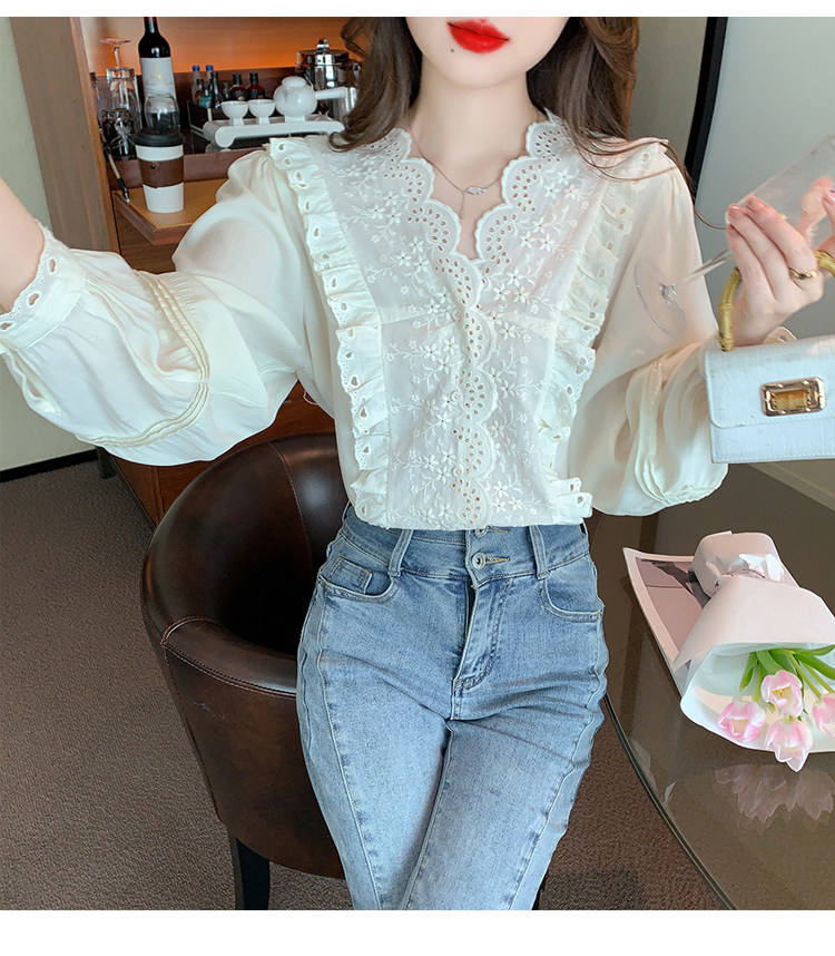 限量特惠|氣質甜美V領花邊刺繡上衣(09H4596)