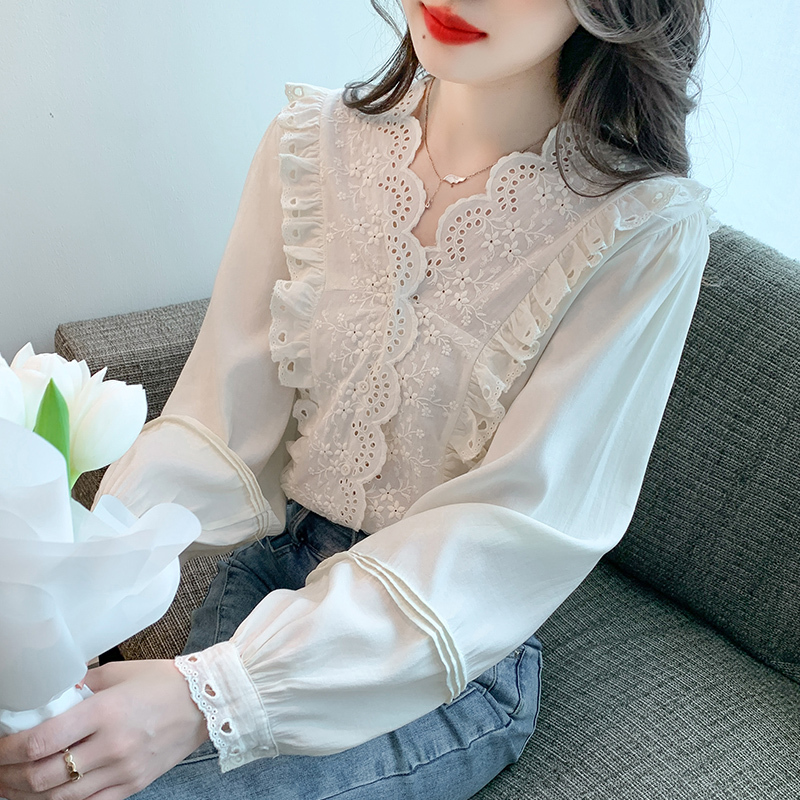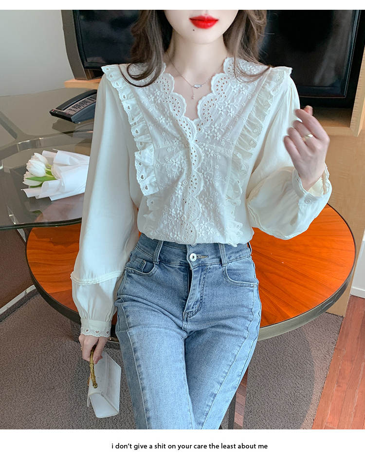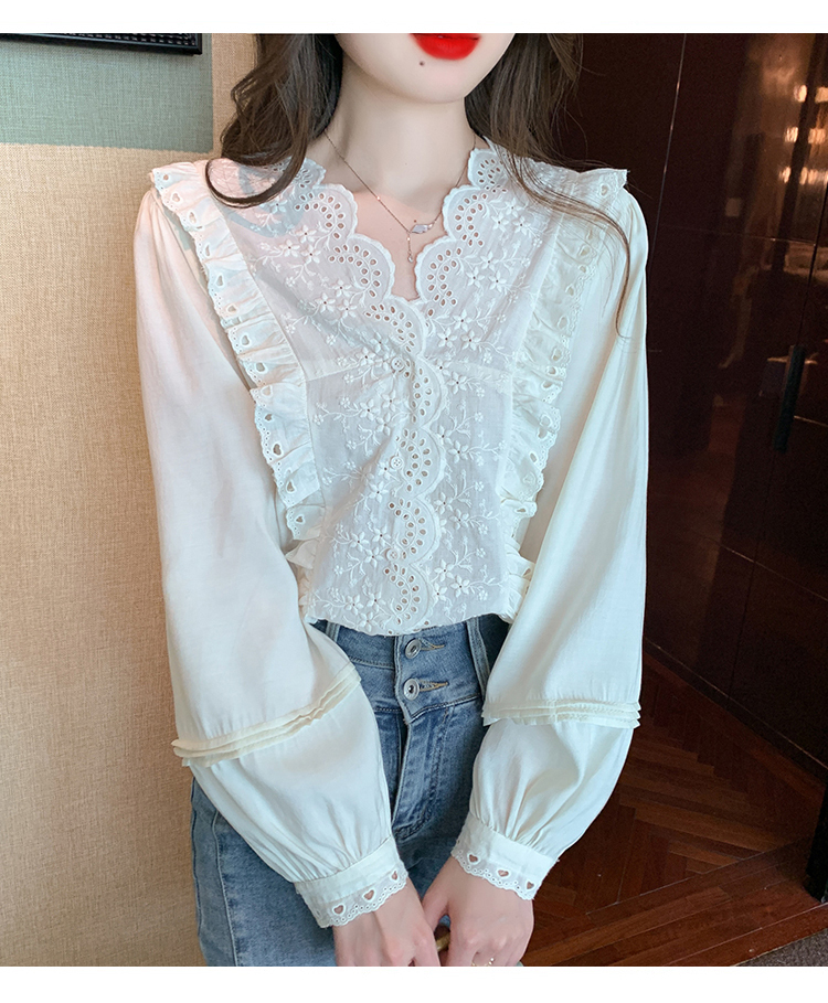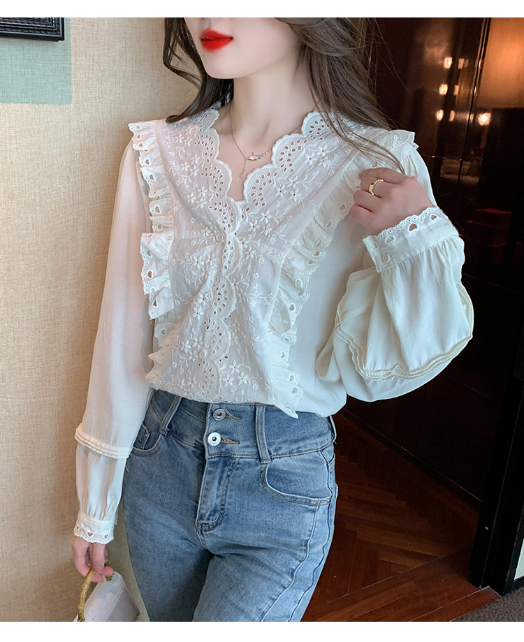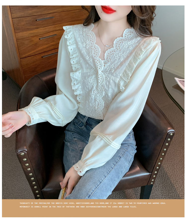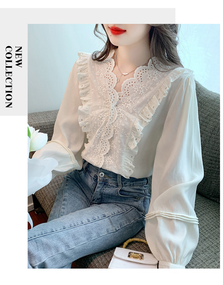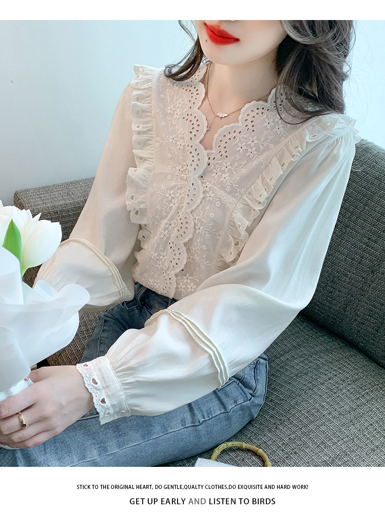 限量特惠|氣質甜美V領花邊刺繡上衣(09H4596)