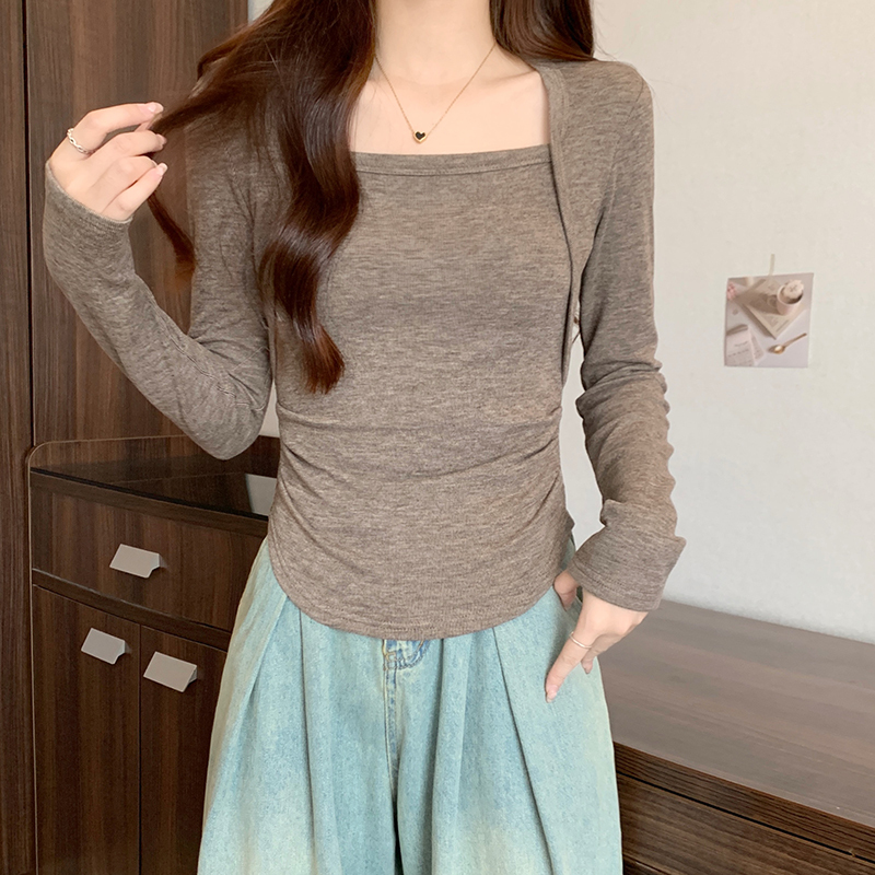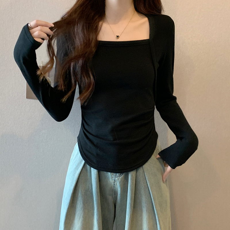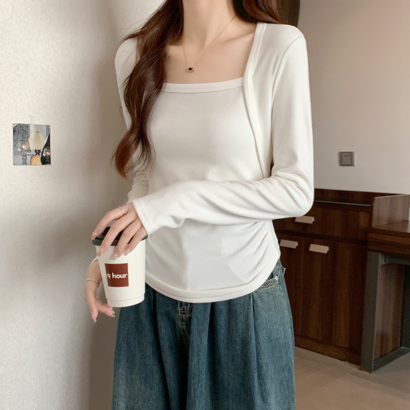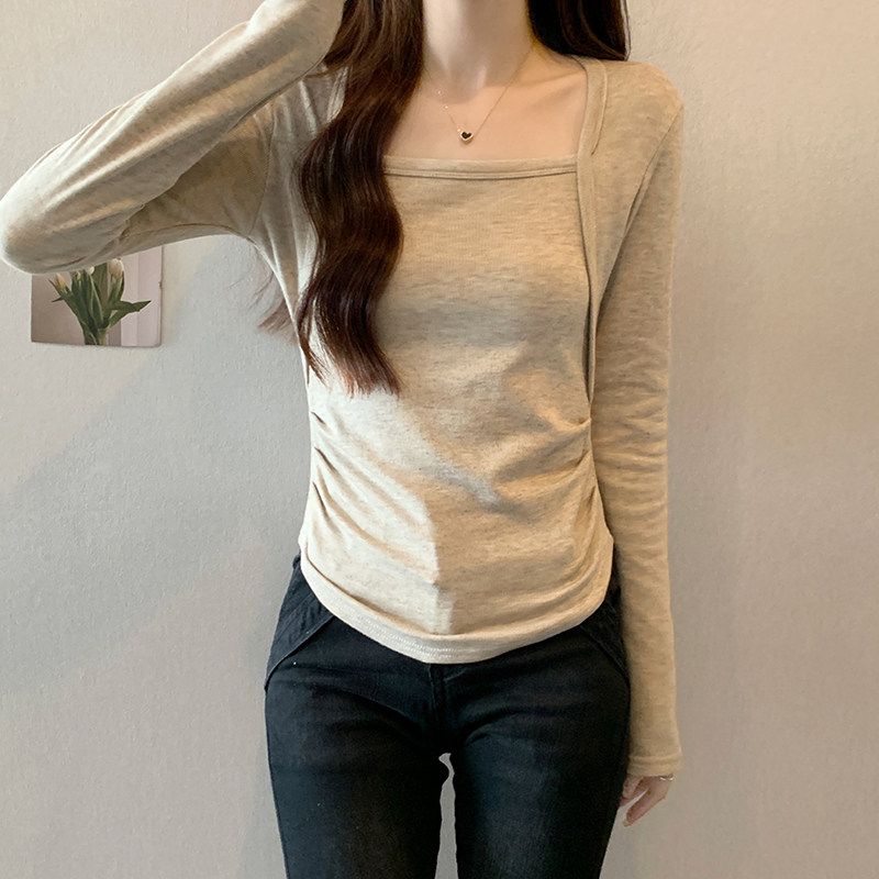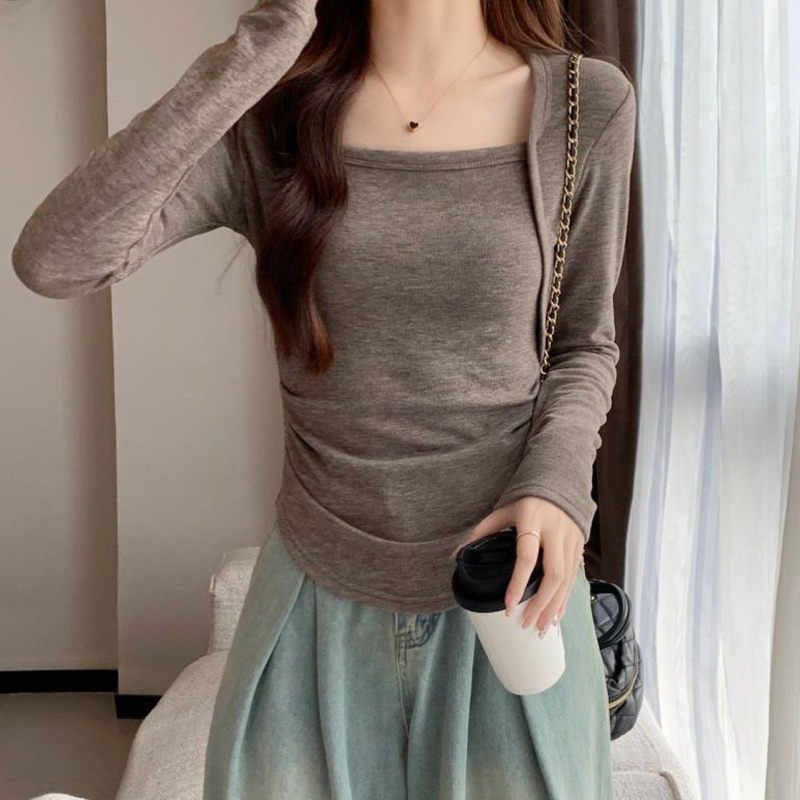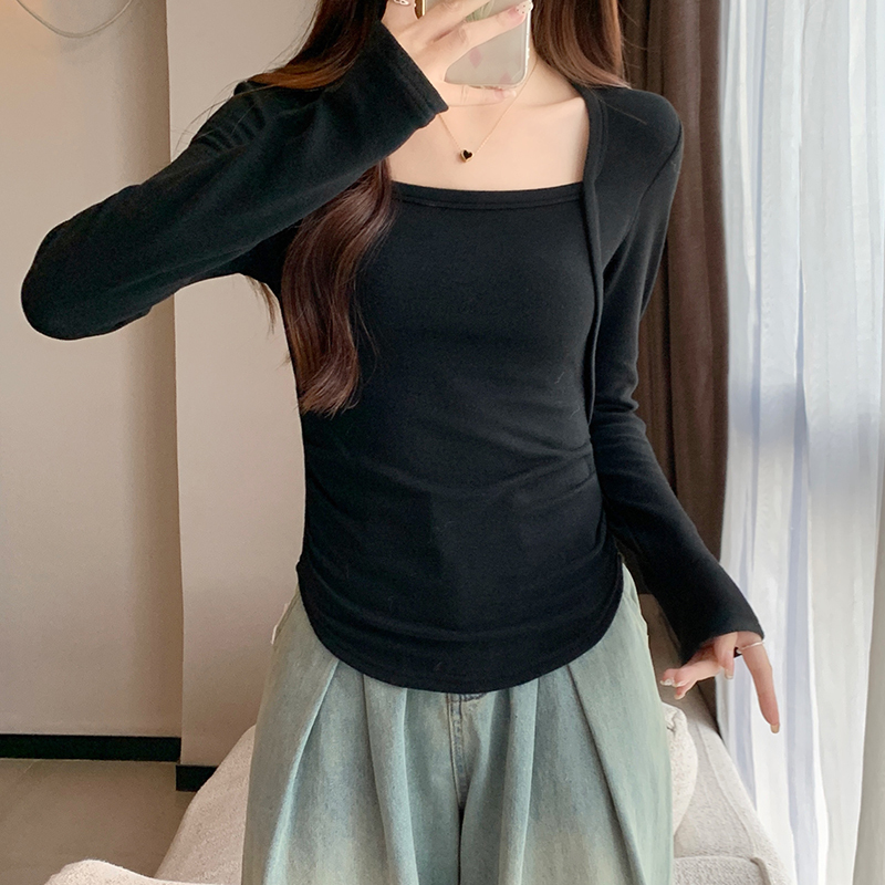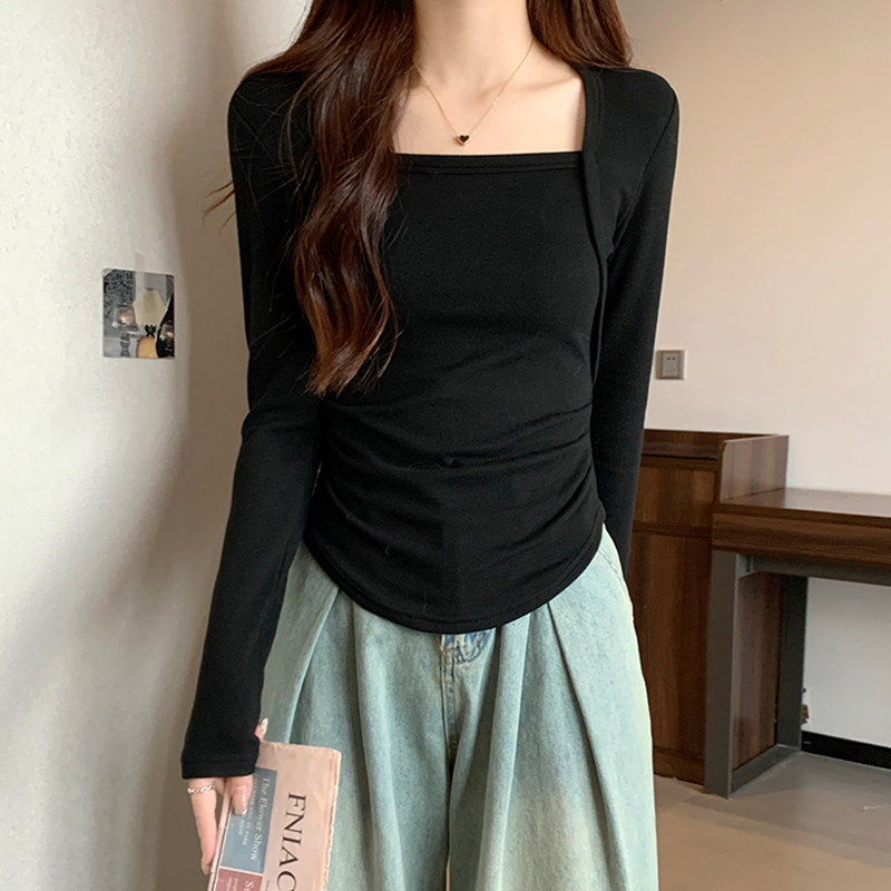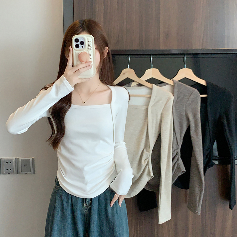 限量特惠|極簡百搭拼接感褶皺修身T恤-4色(09H4620)