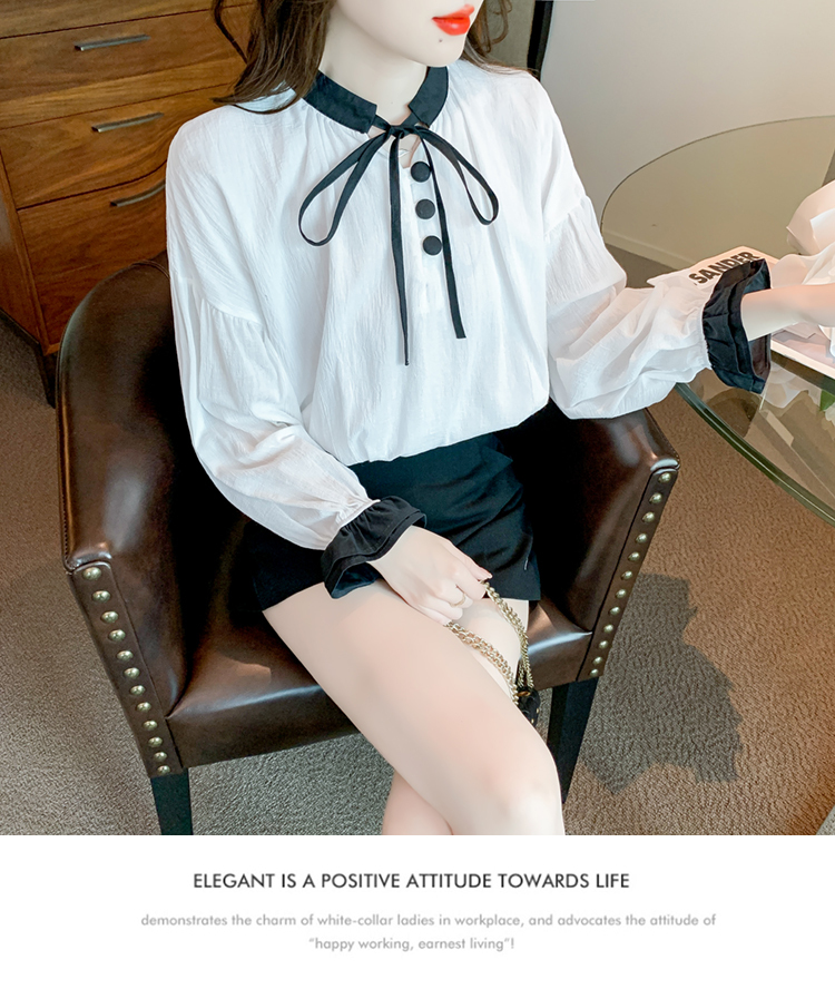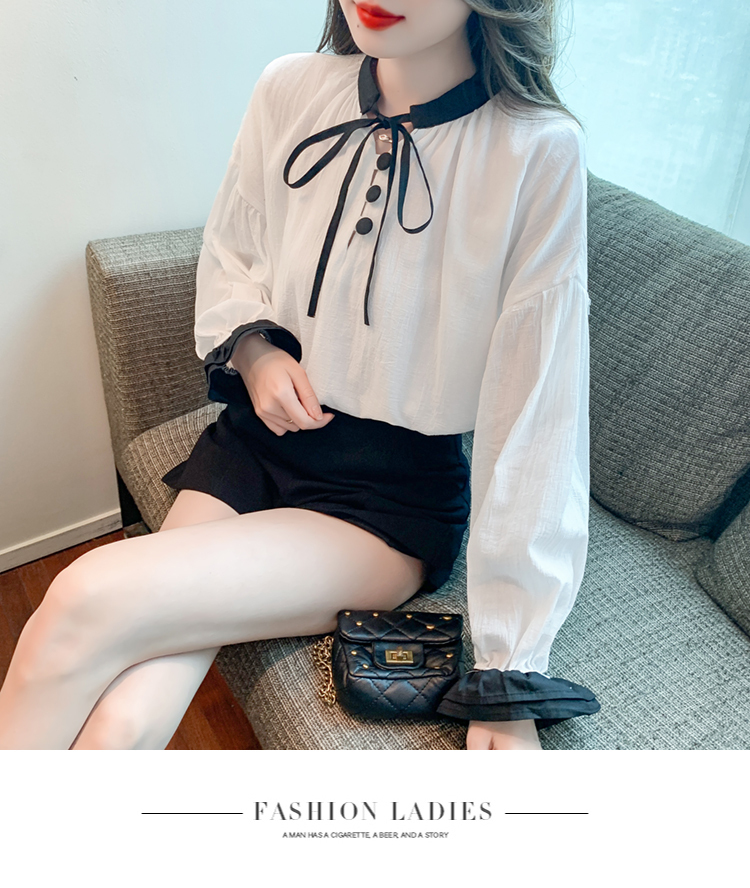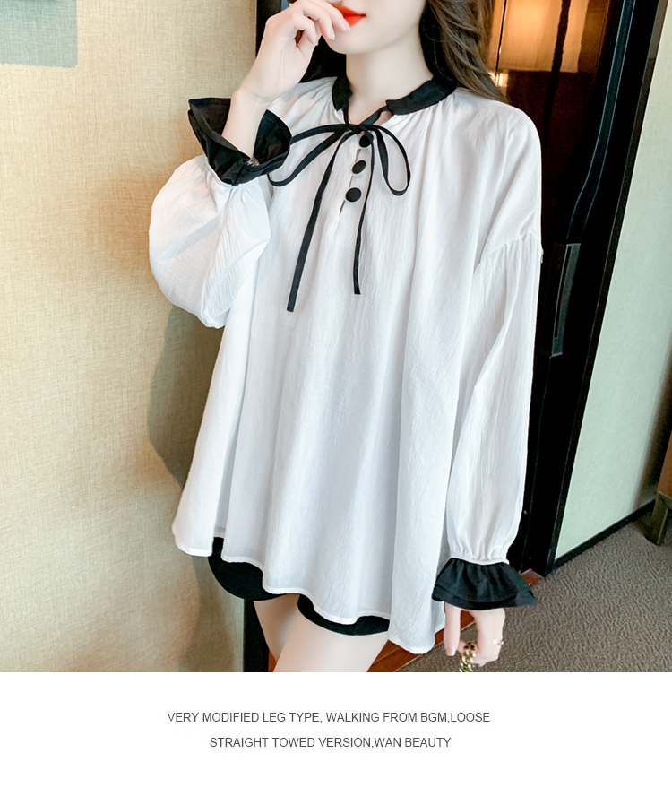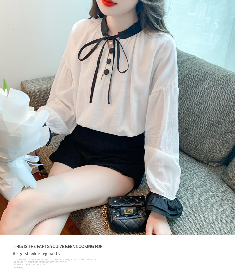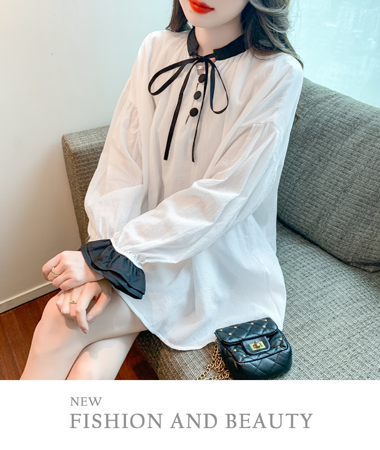 限量特惠|氣質甜美撞色綁帶雪紡衫(09H4652)