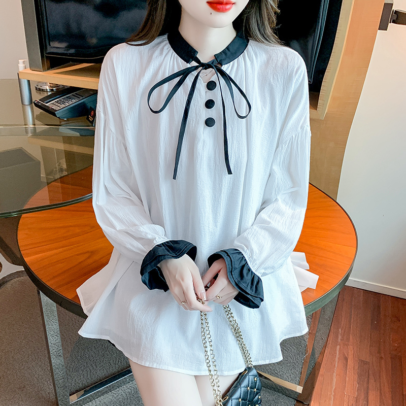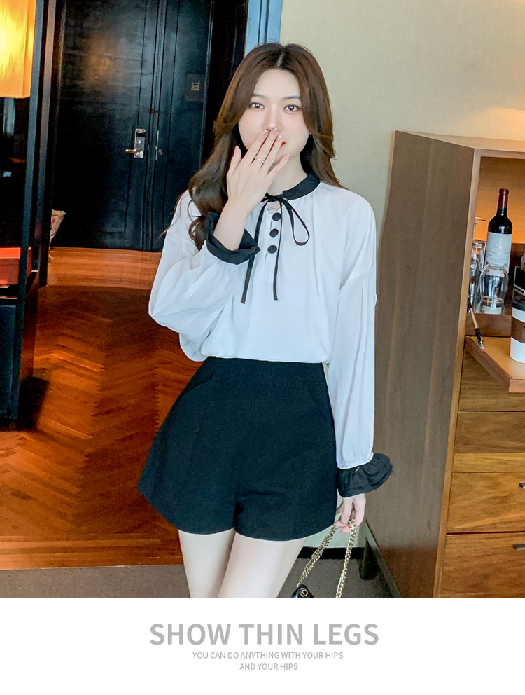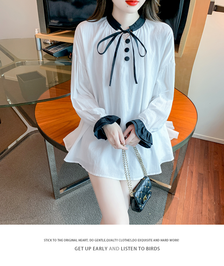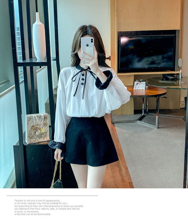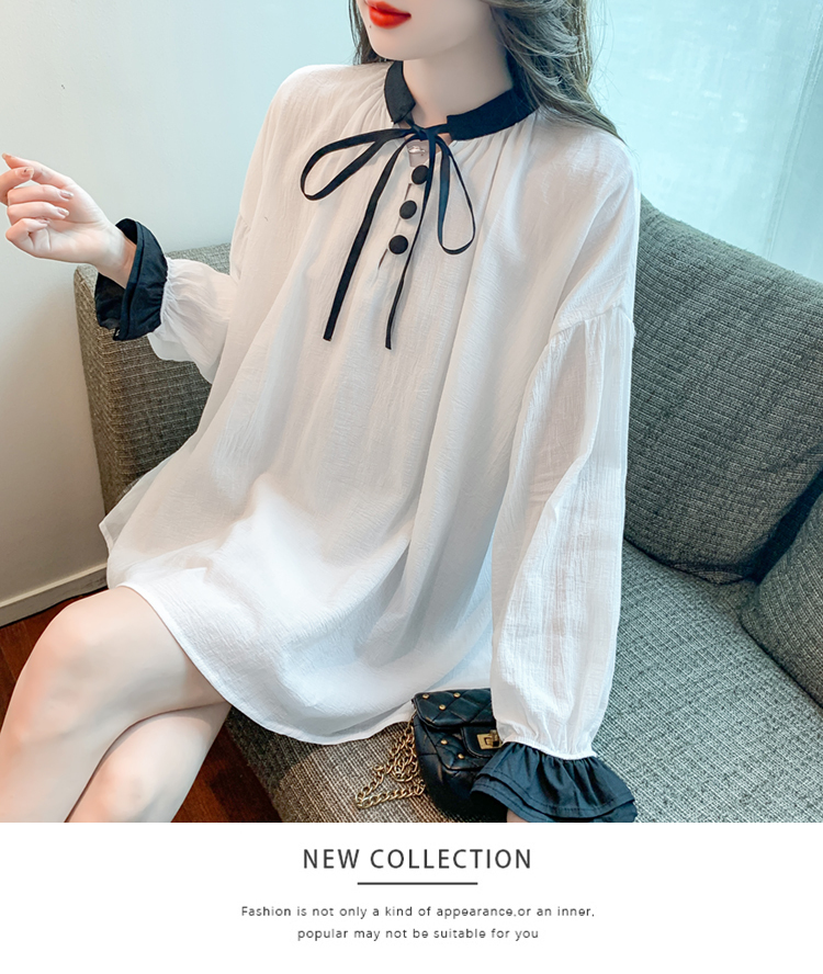 限量特惠|氣質甜美撞色綁帶雪紡衫(09H4652)