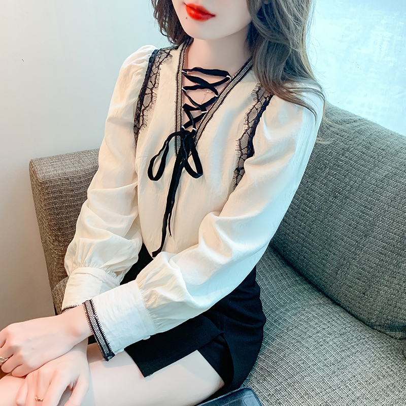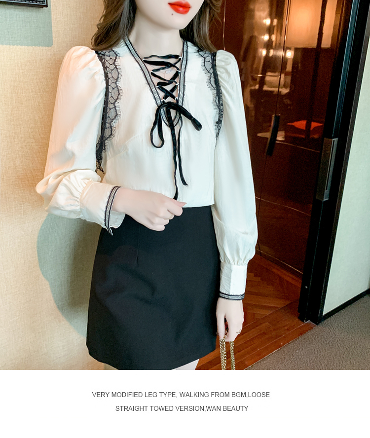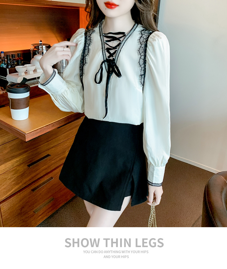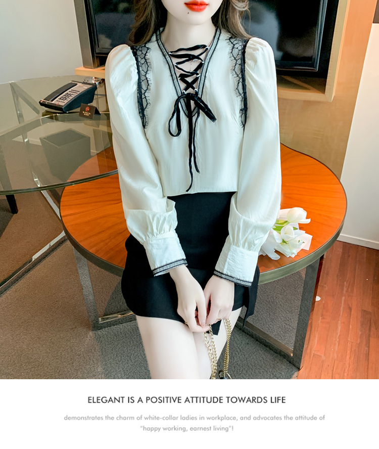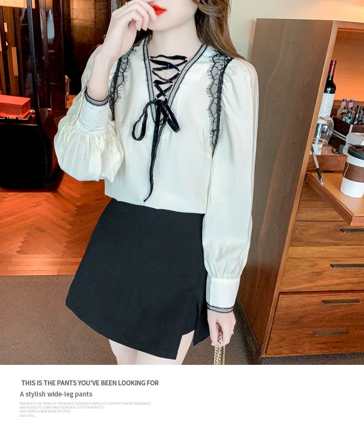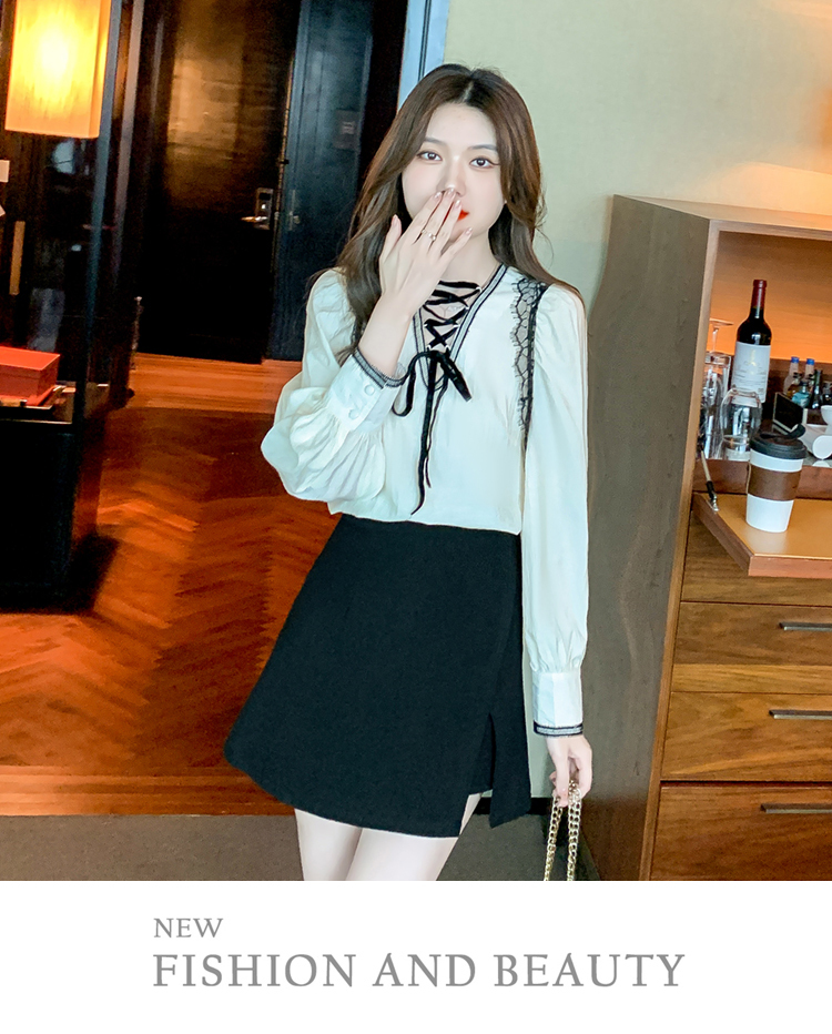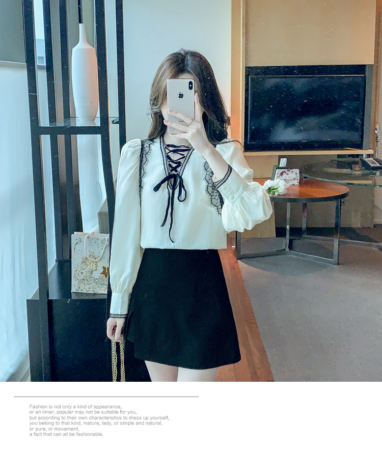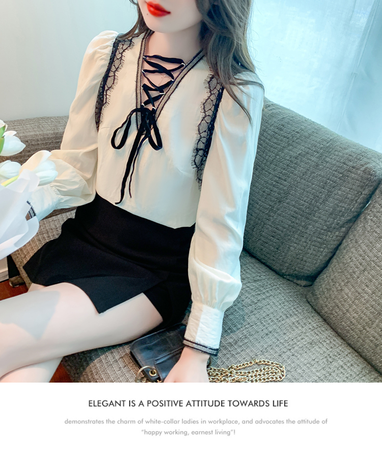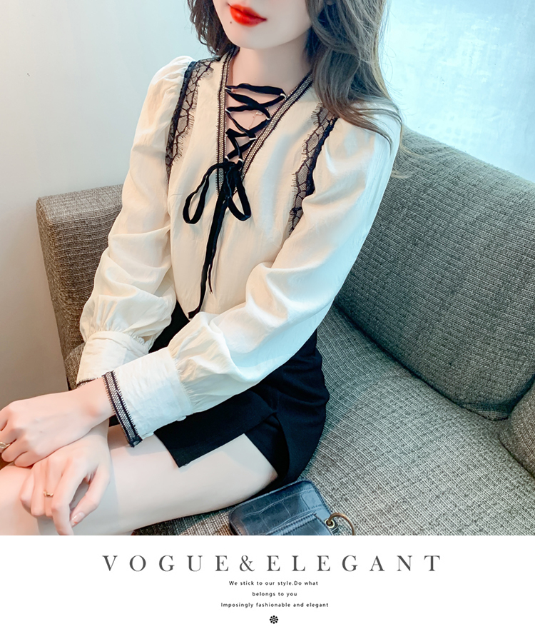 限量特惠|氣質甜美拼接蕾絲綁帶雪紡衫(09H4653)