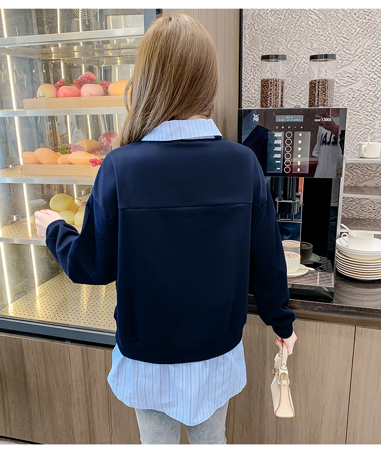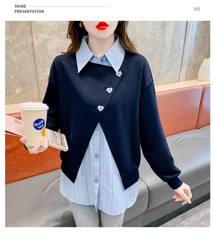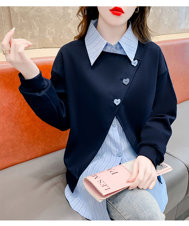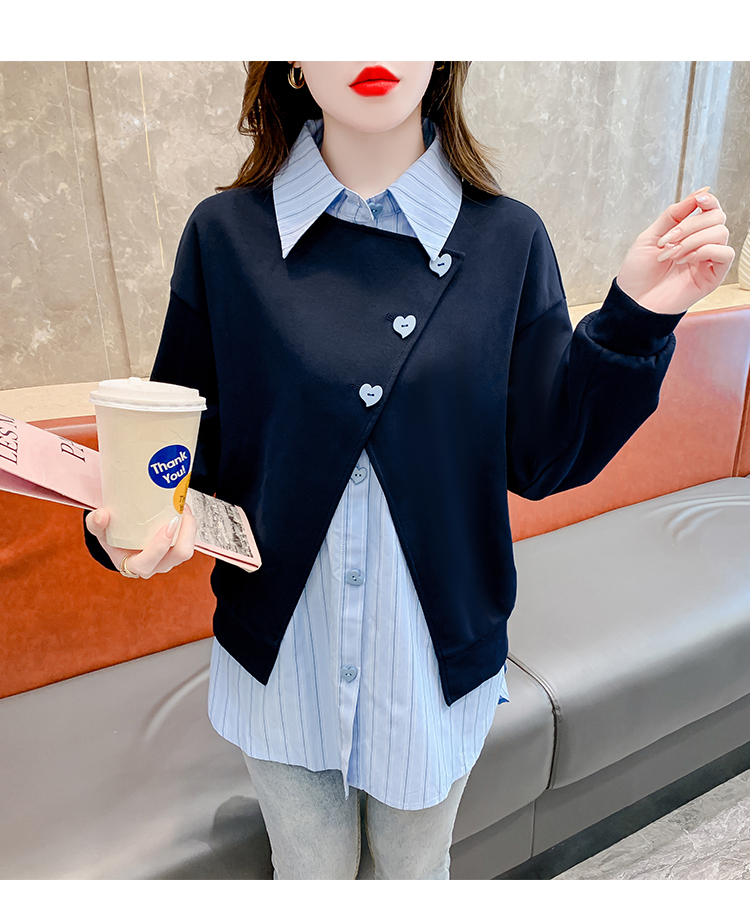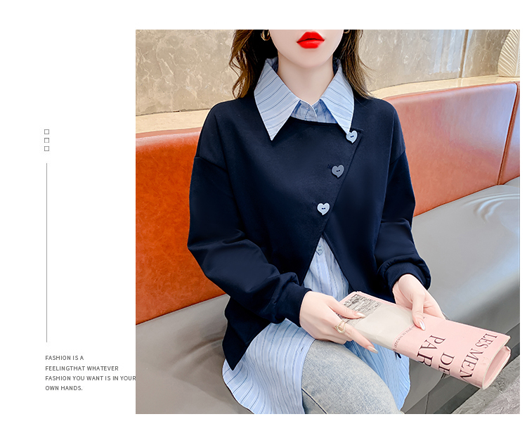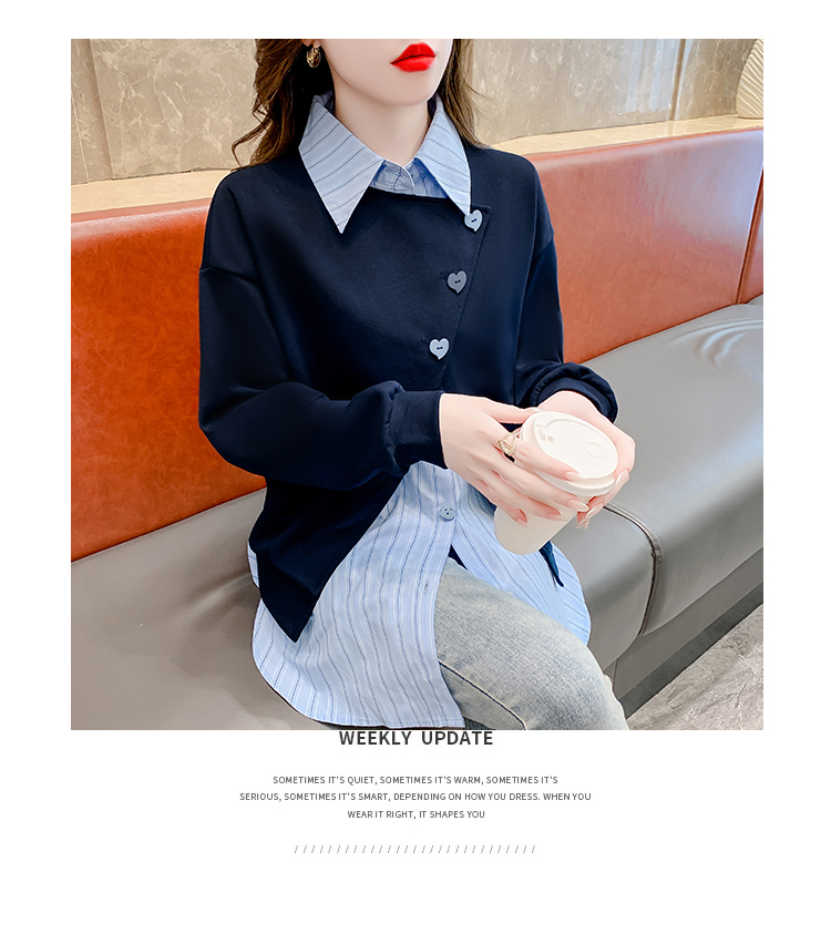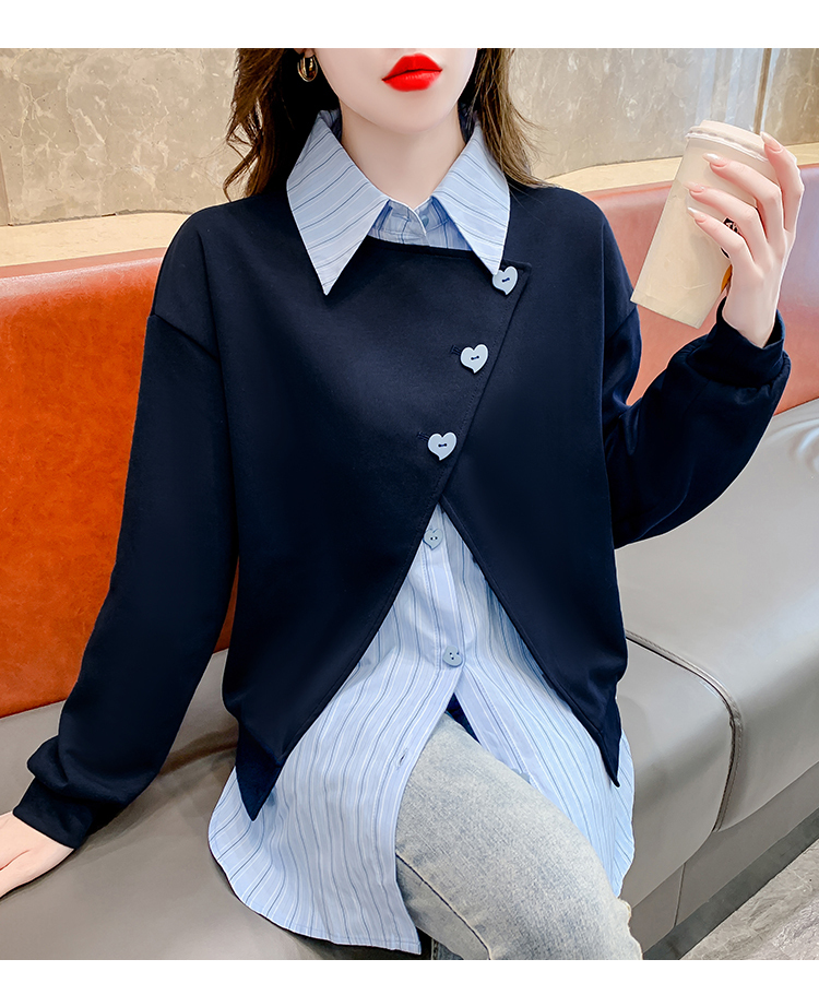 限量特惠|個性舒適拼接翻領假兩件式上衣(09H4666)