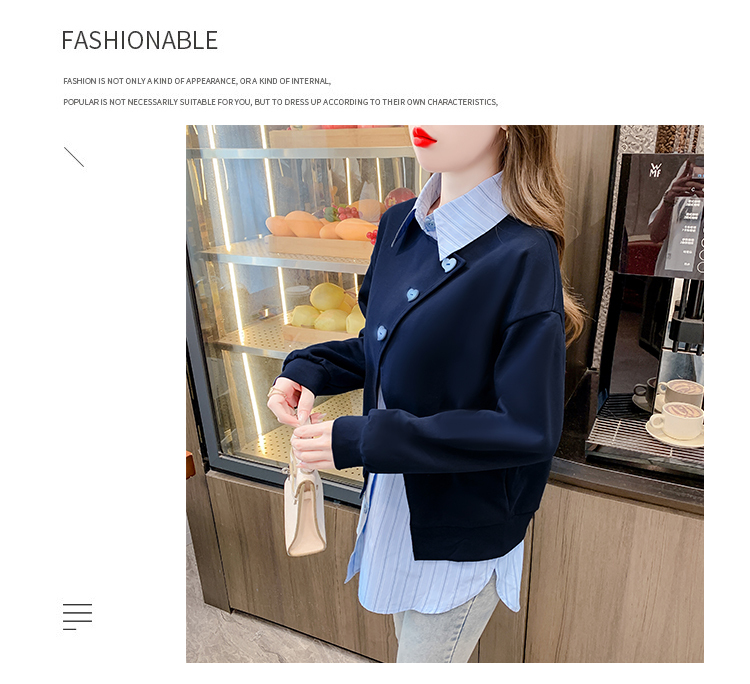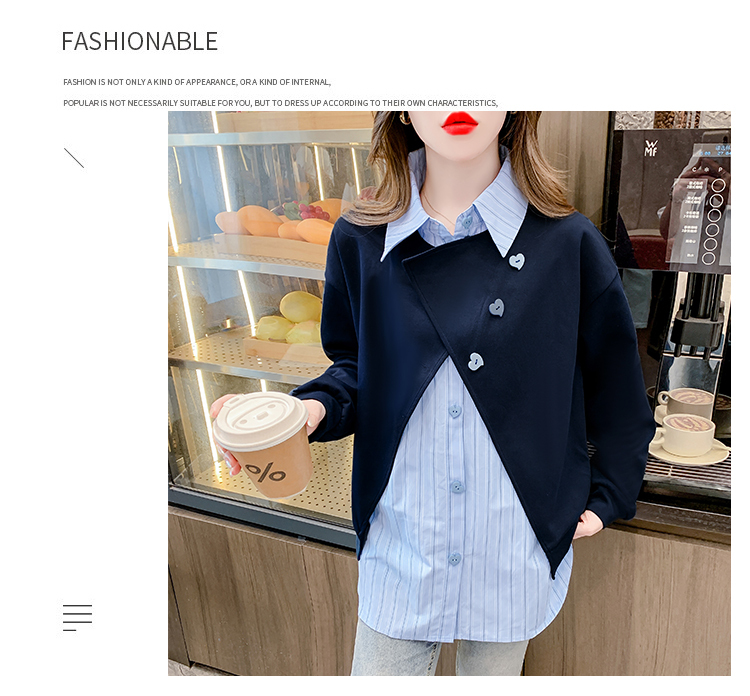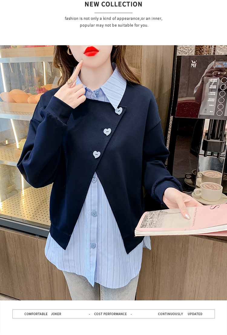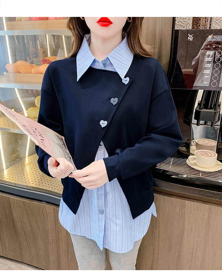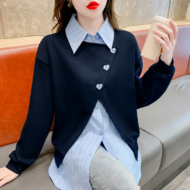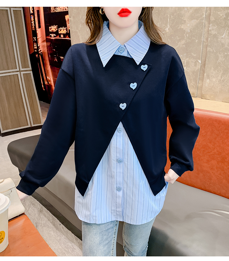 限量特惠|個性舒適拼接翻領假兩件式上衣(09H4666)