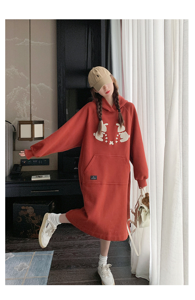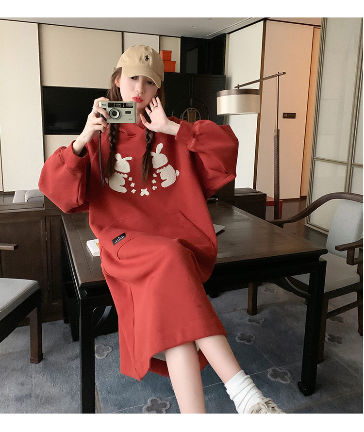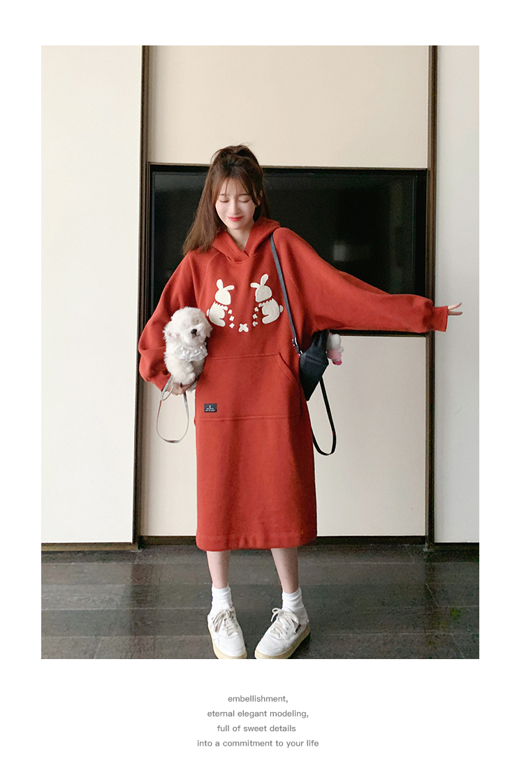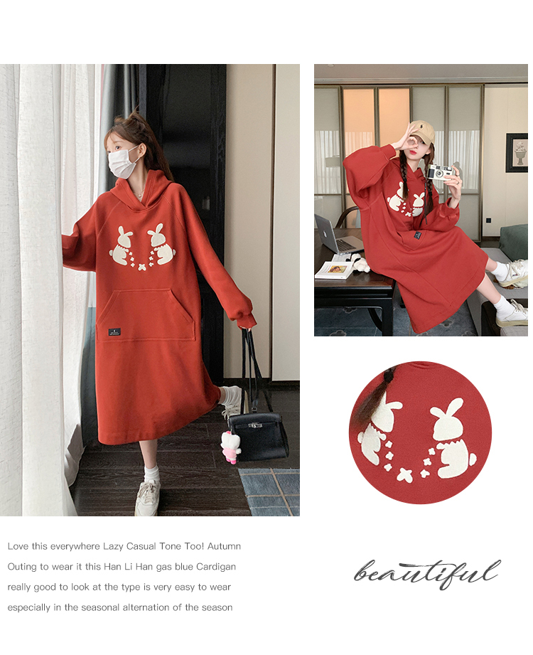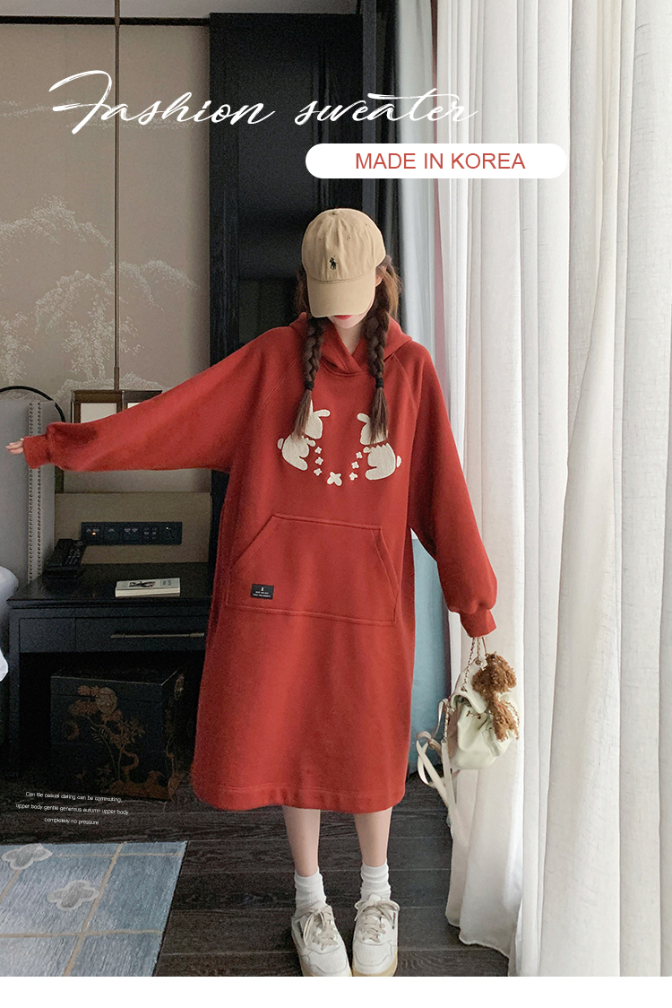 獨家訂製│韓系俏皮感緹花造型長版連帽連衣裙(09H4689)