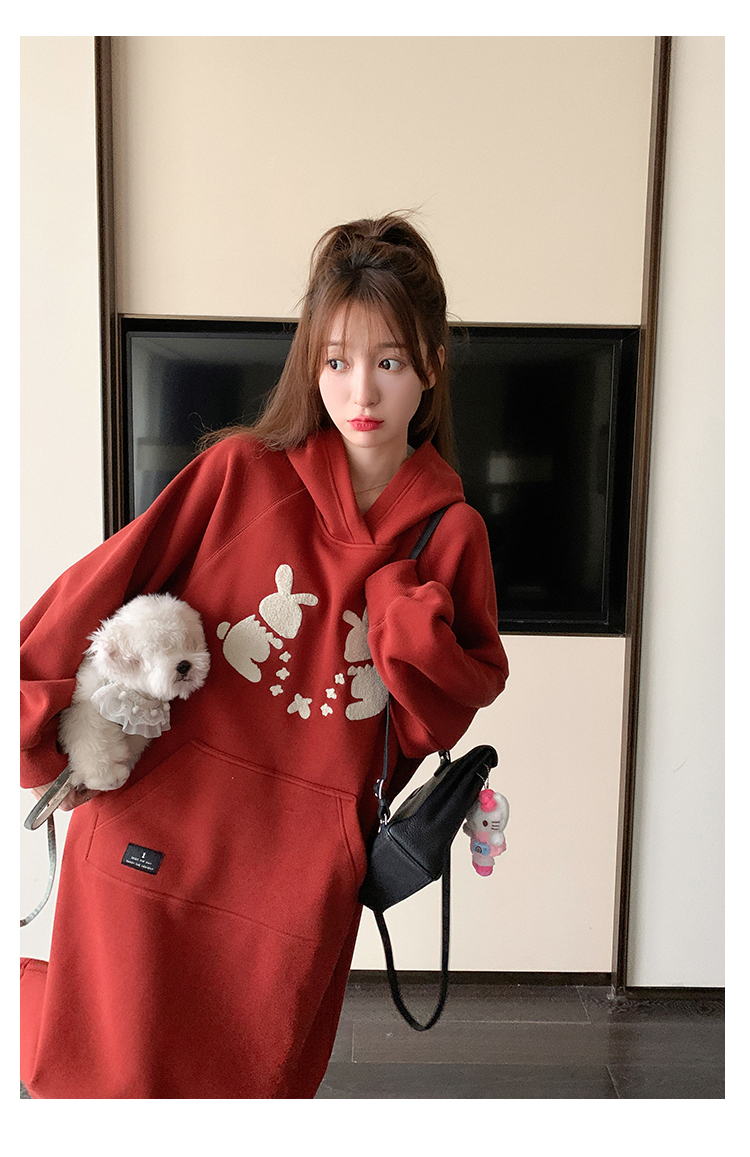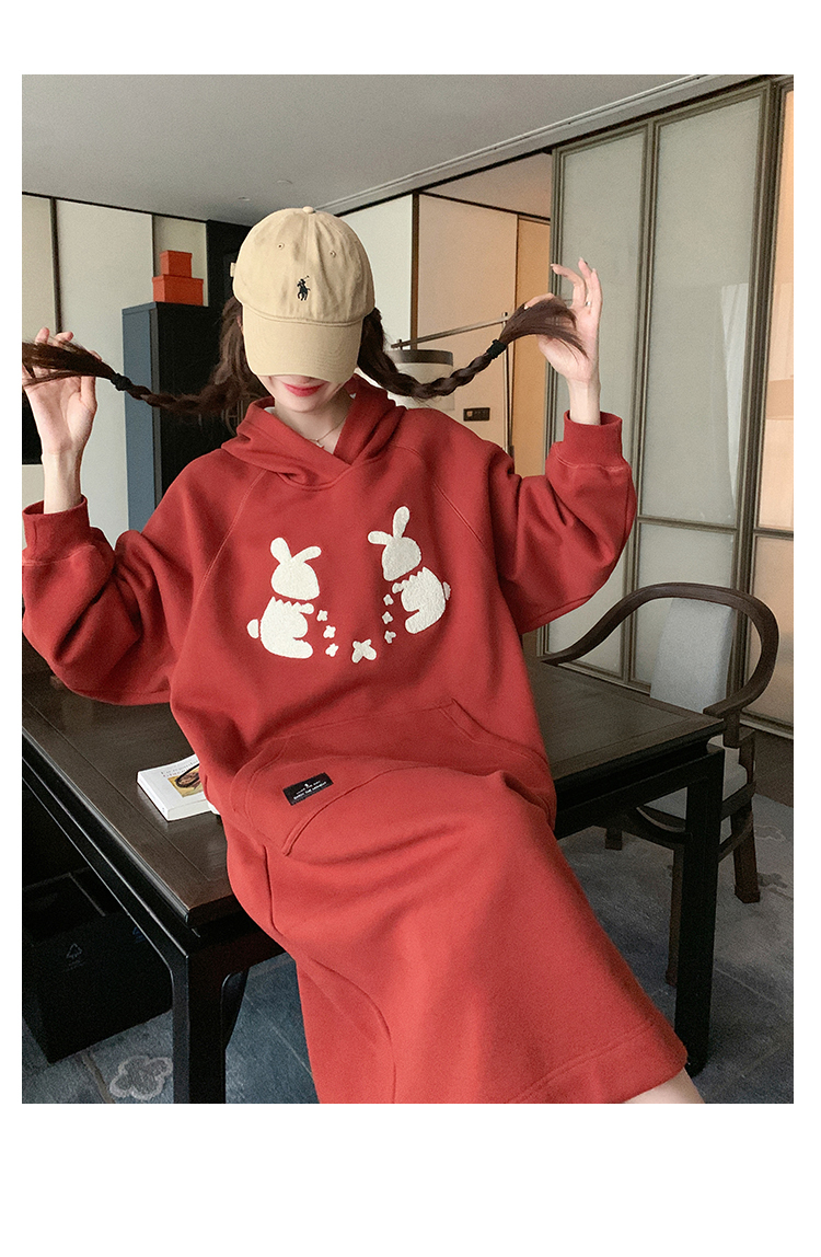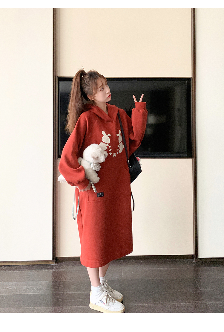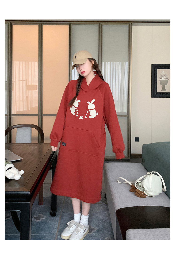 獨家訂製│韓系俏皮感緹花造型長版連帽連衣裙(09H4689)