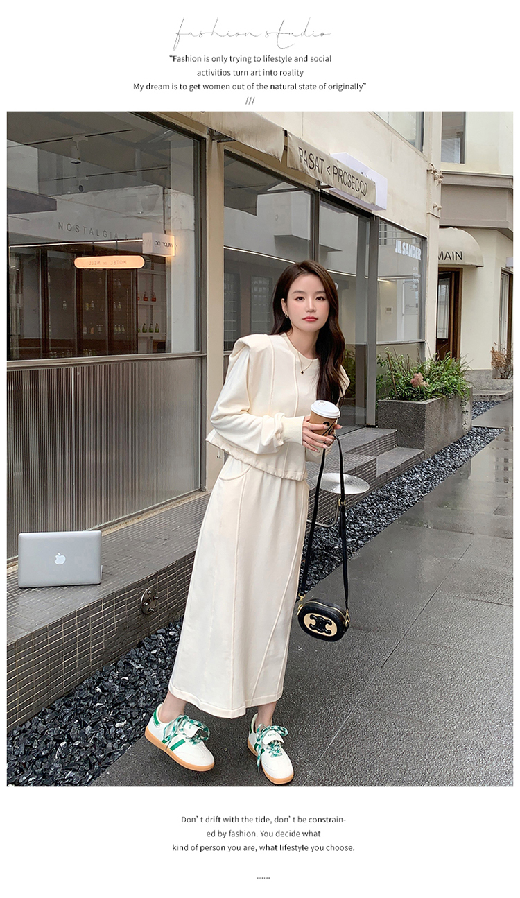 獨家訂製│韓系簡約抽繩T恤+A字裙兩件式套裝組(09H4740)