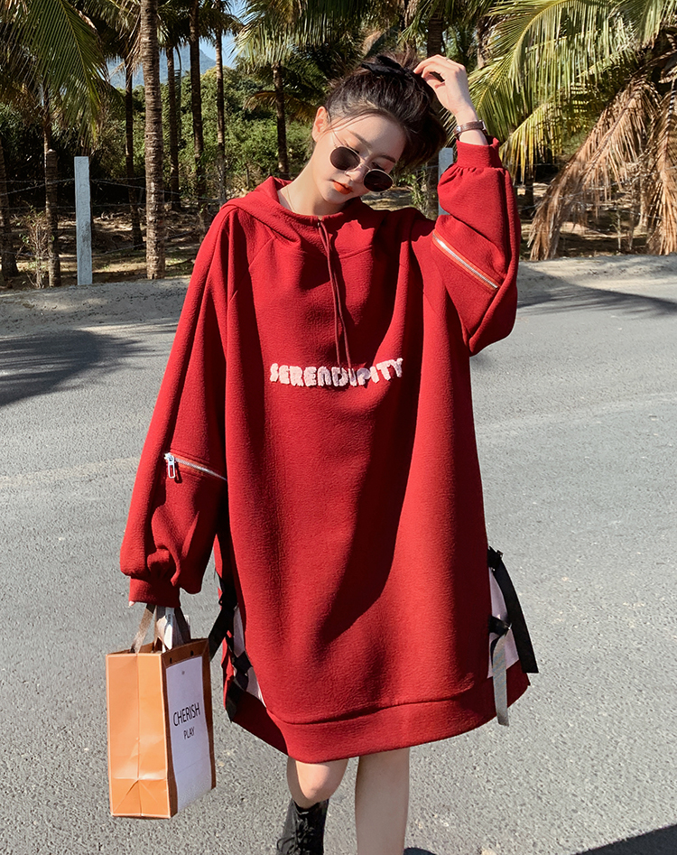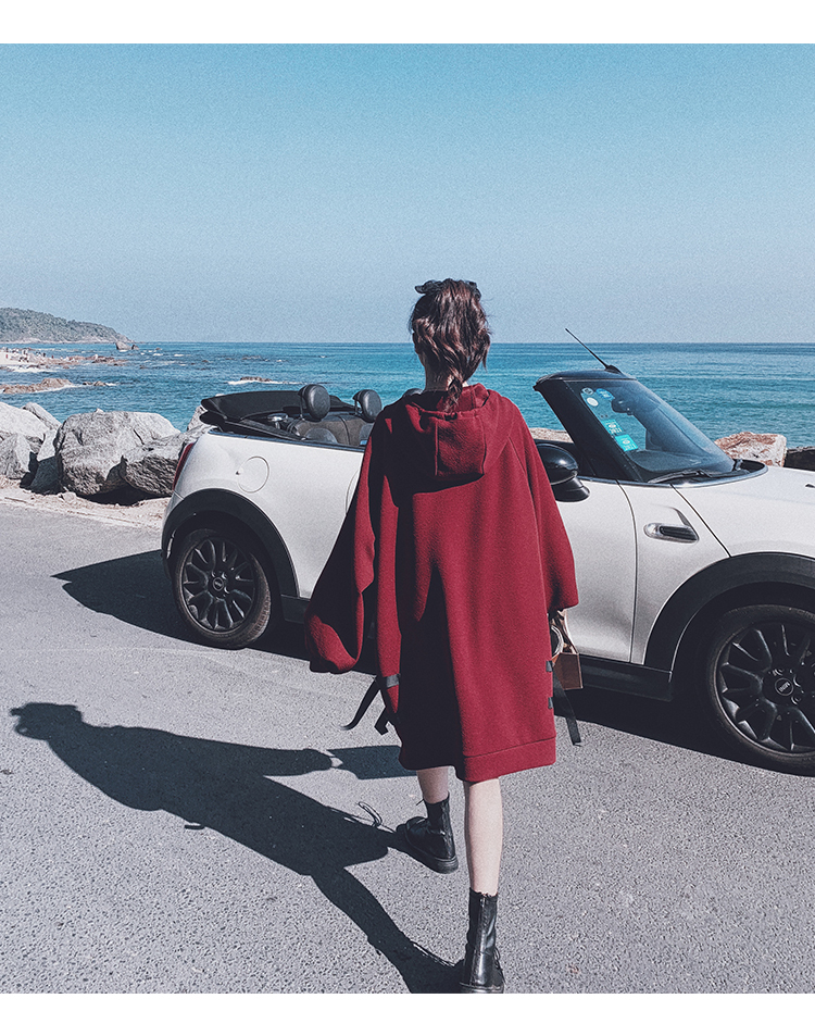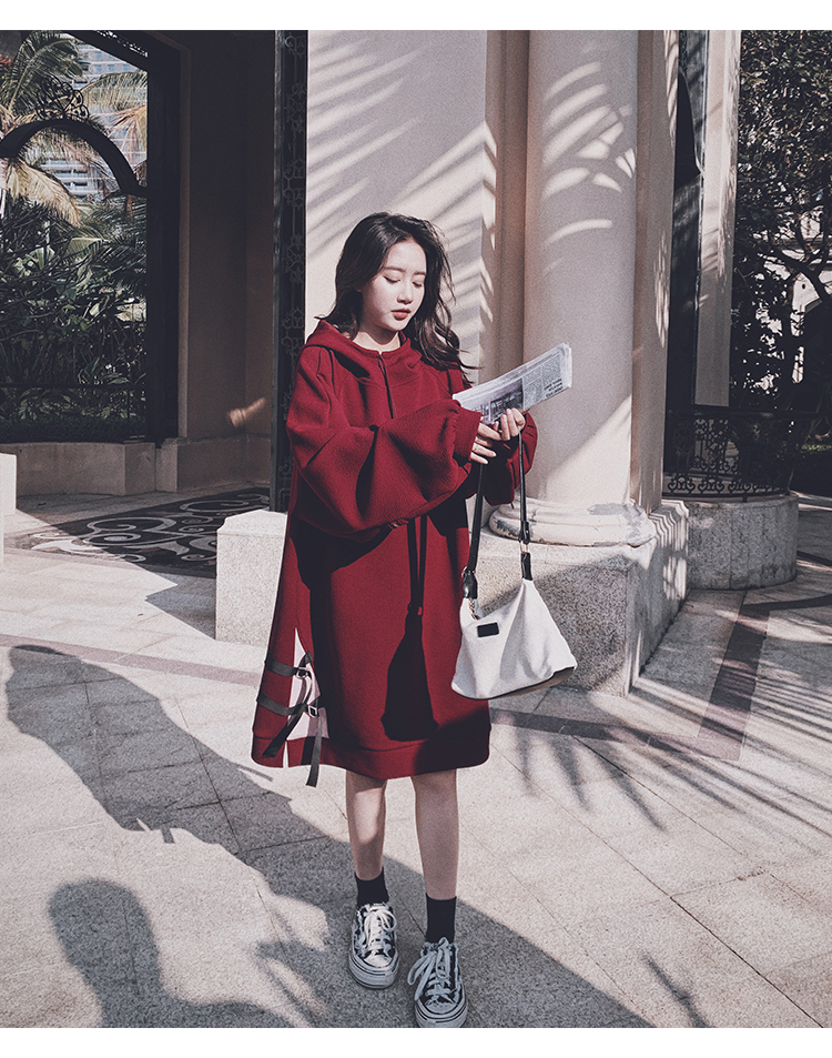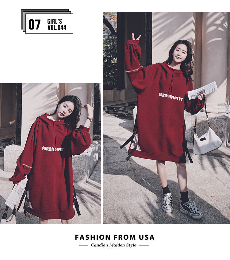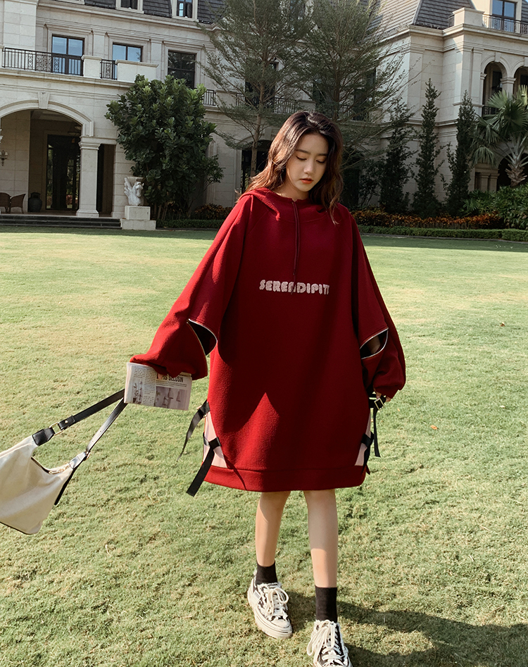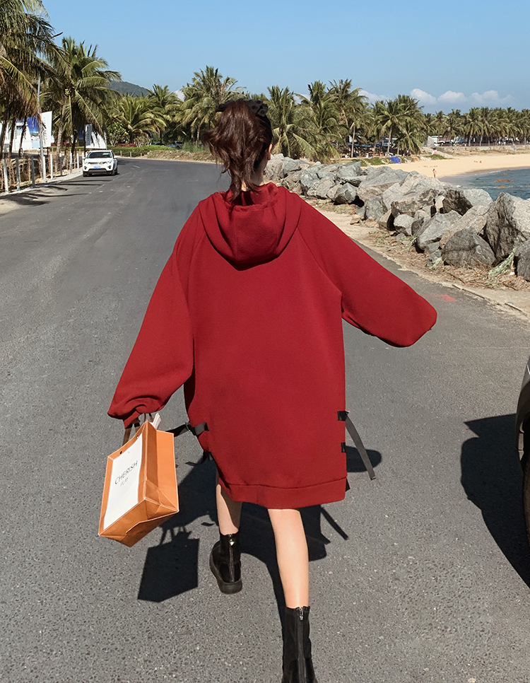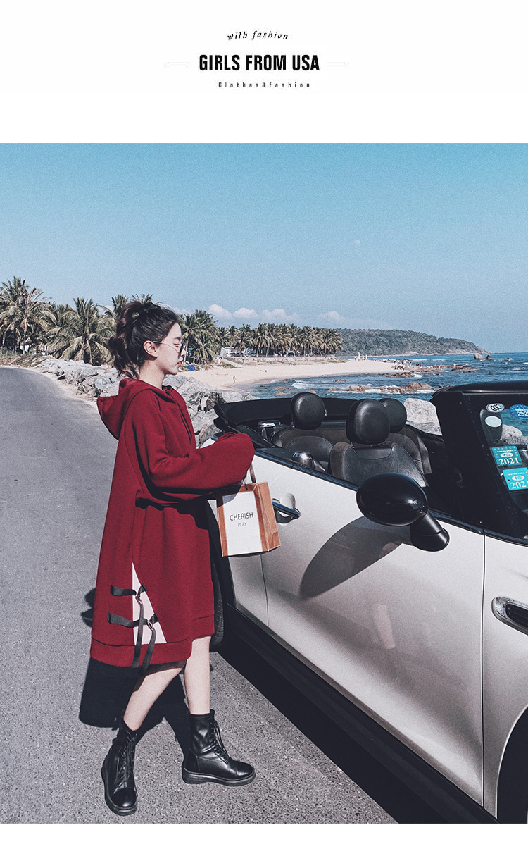 獨家訂製│韓系俏皮感側邊拼接綁帶連帽連衣裙(09H4749)