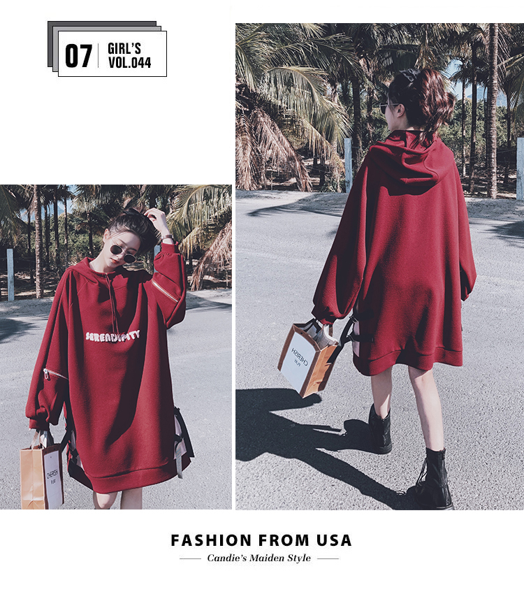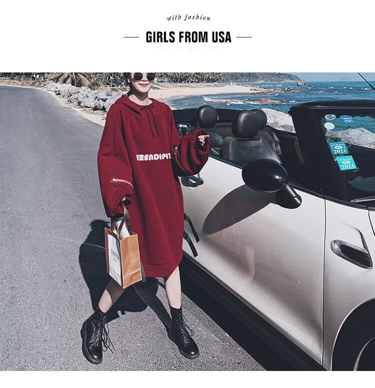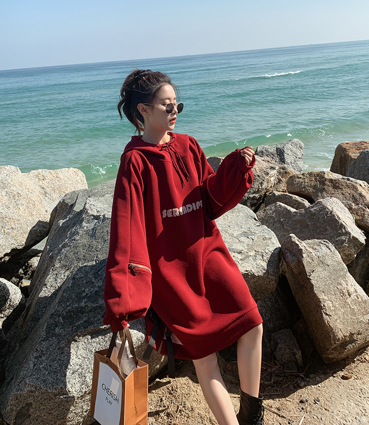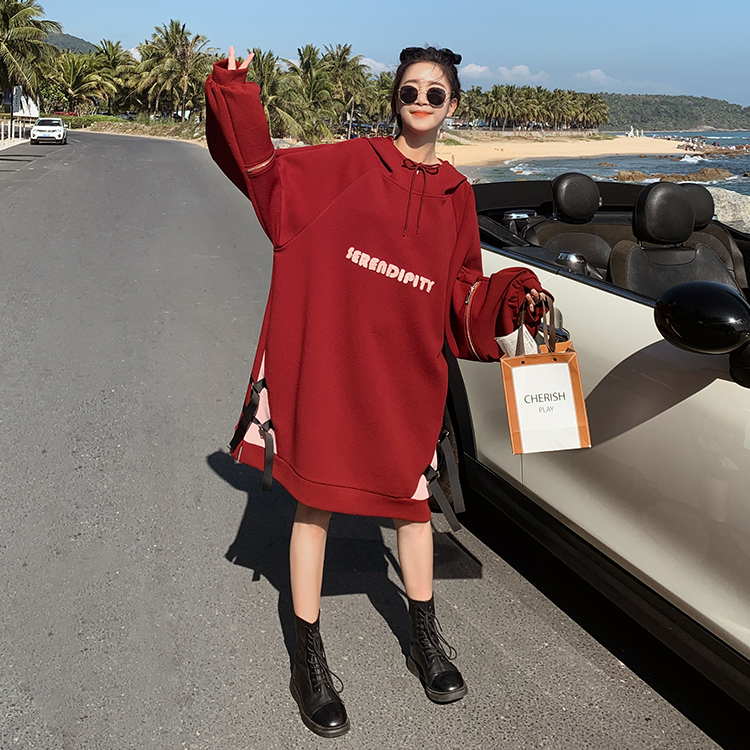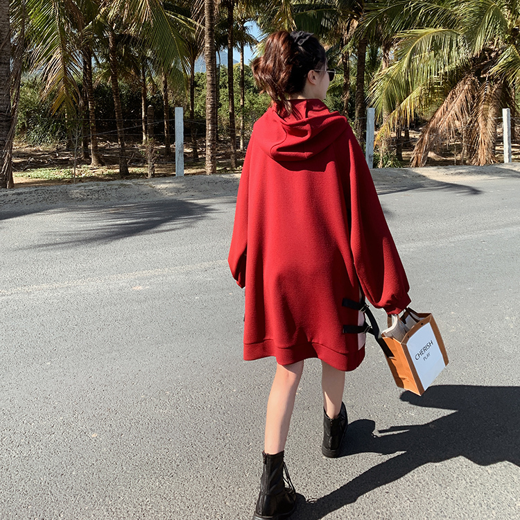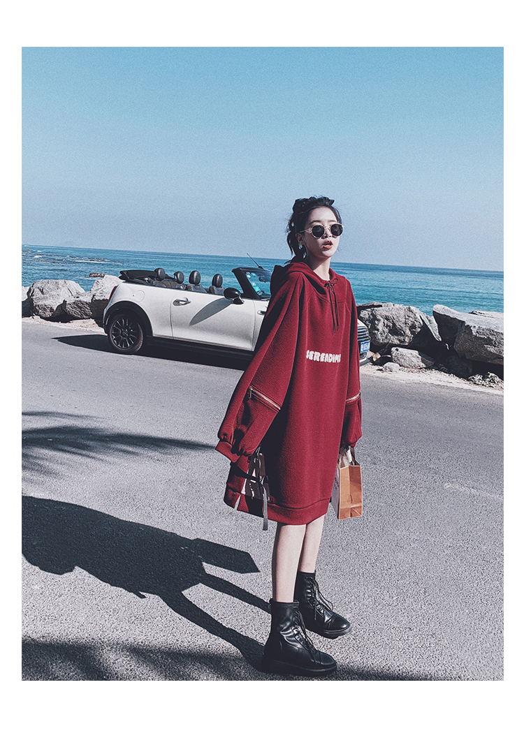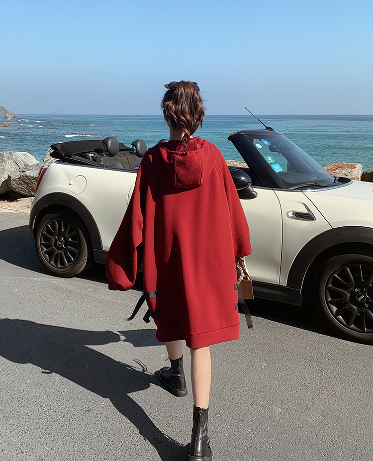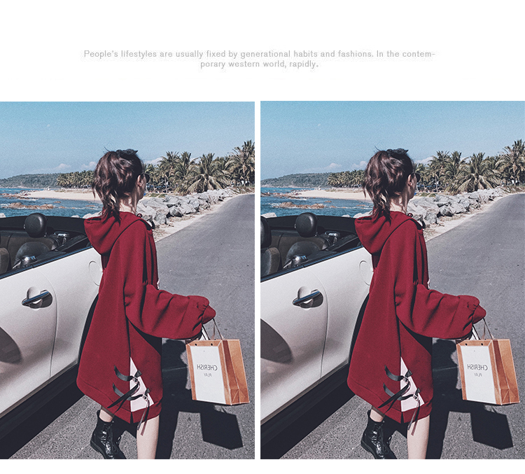 獨家訂製│韓系俏皮感側邊拼接綁帶連帽連衣裙(09H4749)