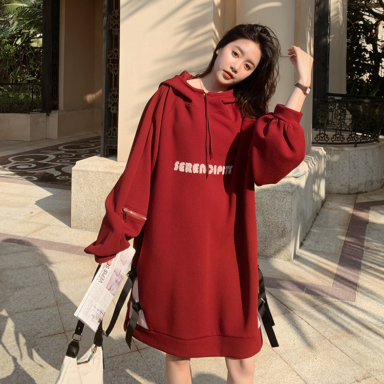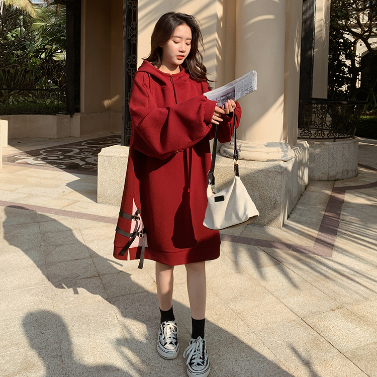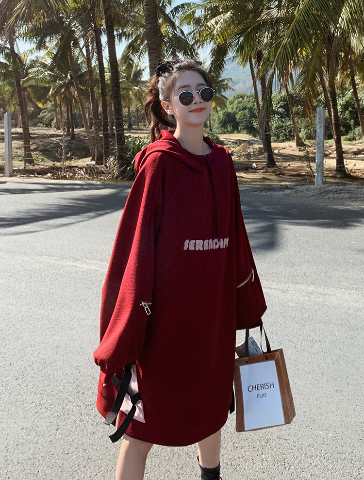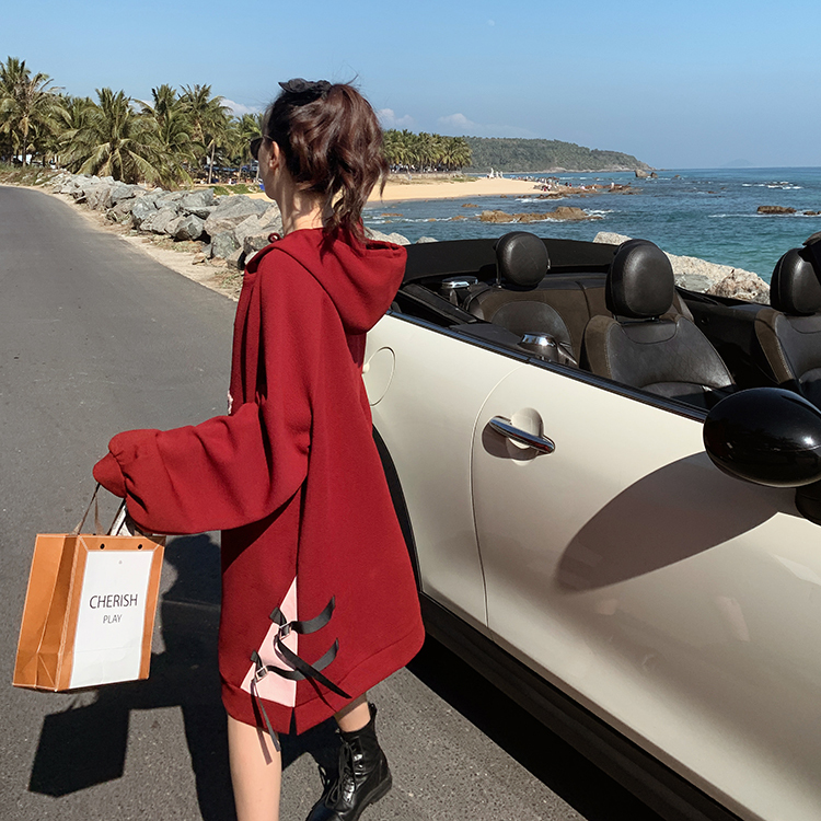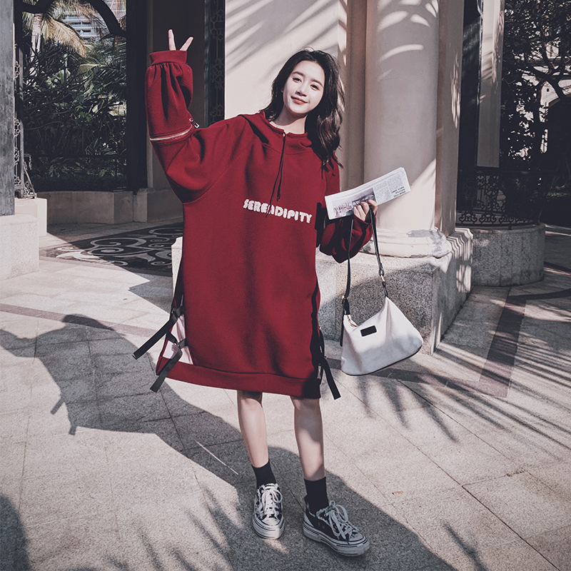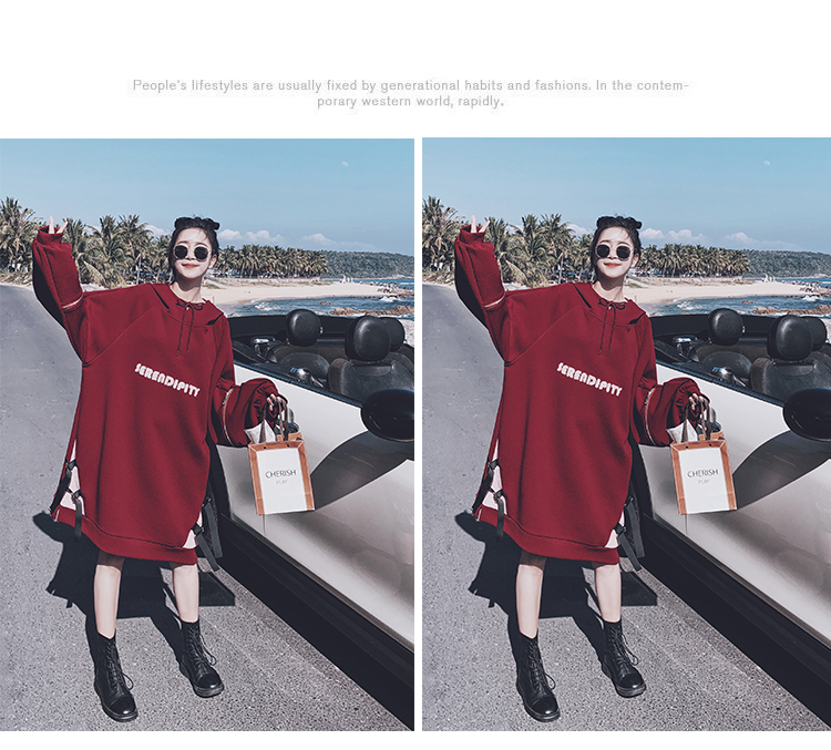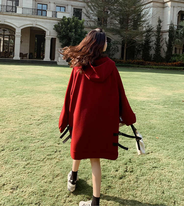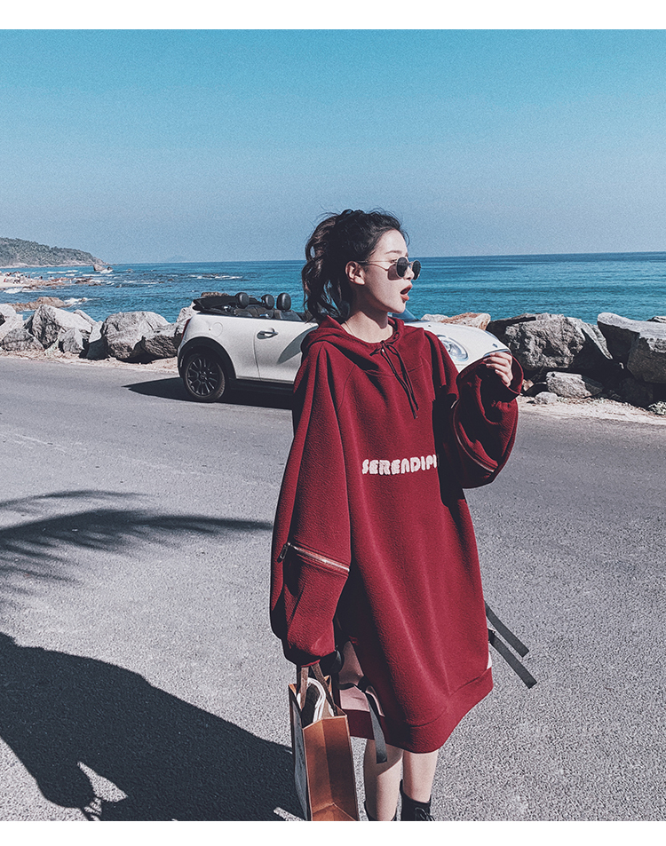 獨家訂製│韓系俏皮感側邊拼接綁帶連帽連衣裙(09H4749)