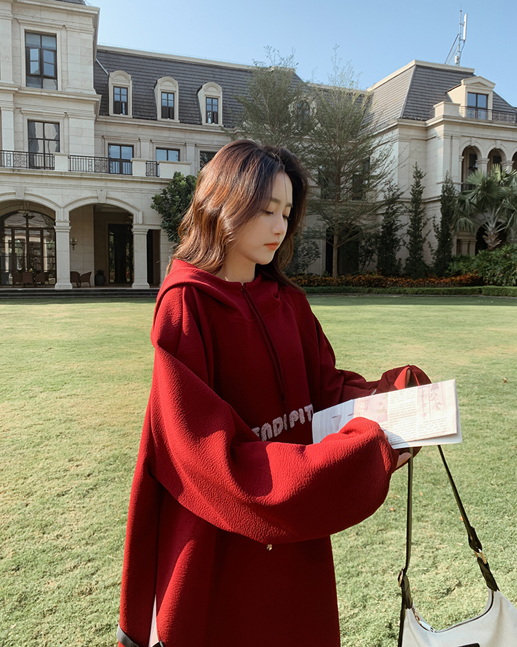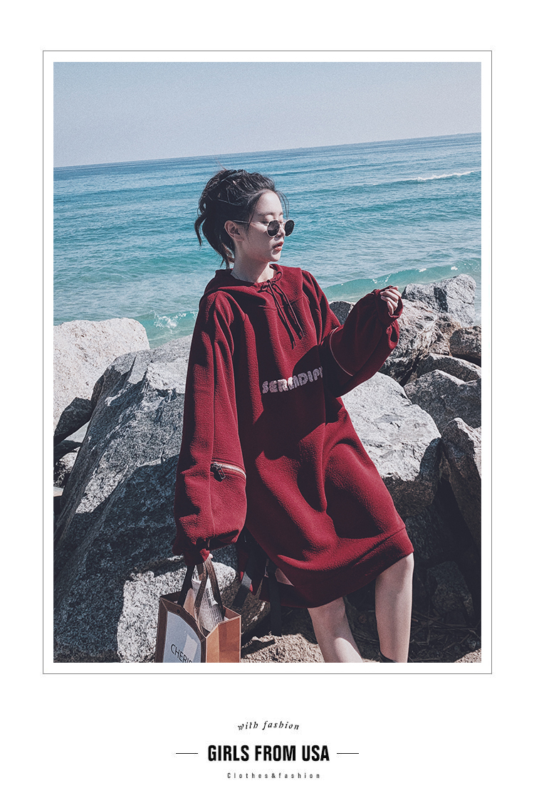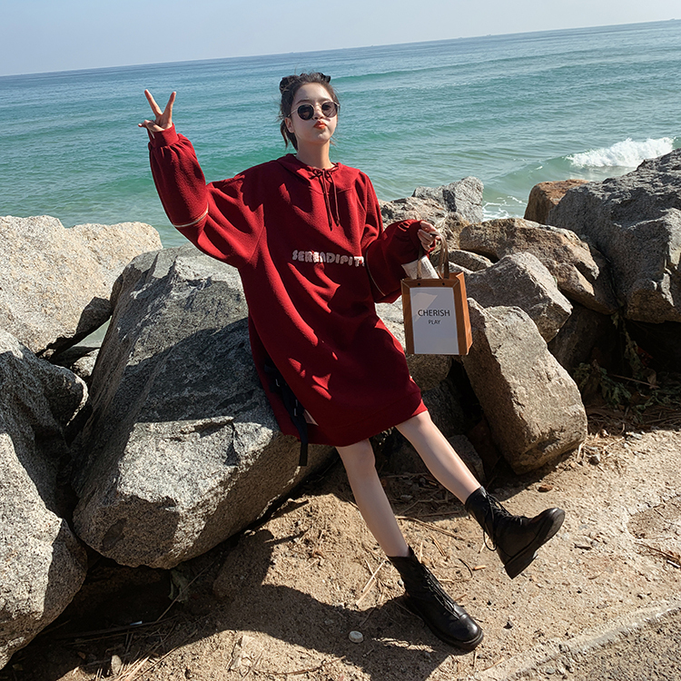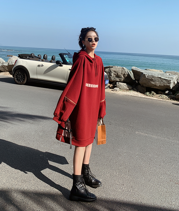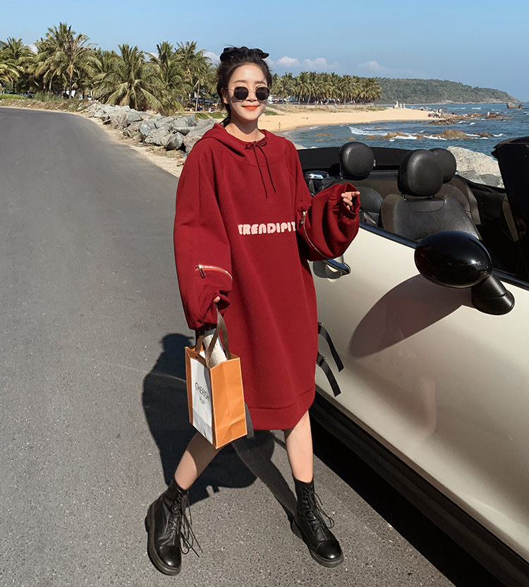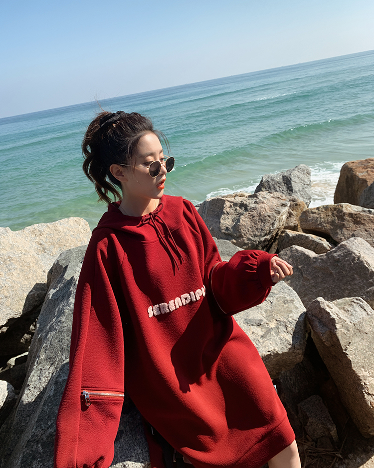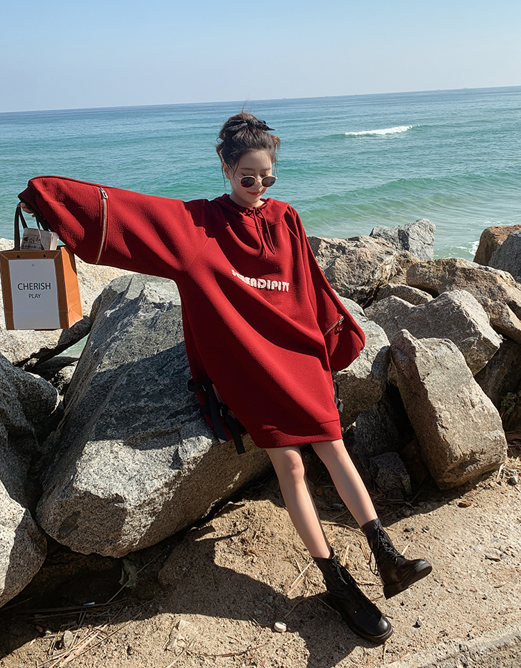 獨家訂製│韓系俏皮感側邊拼接綁帶連帽連衣裙(09H4749)