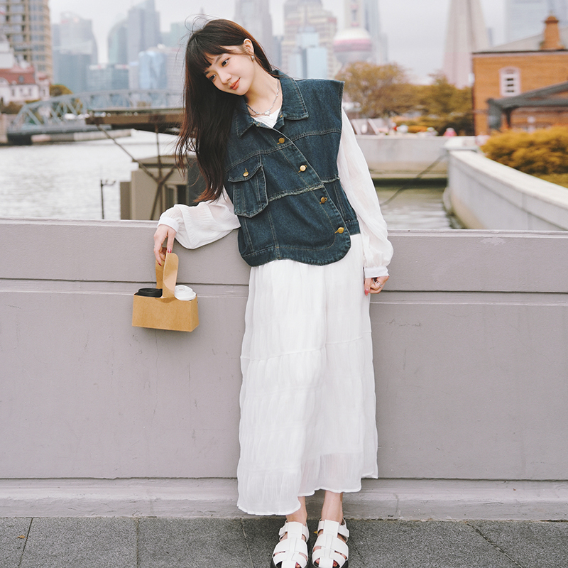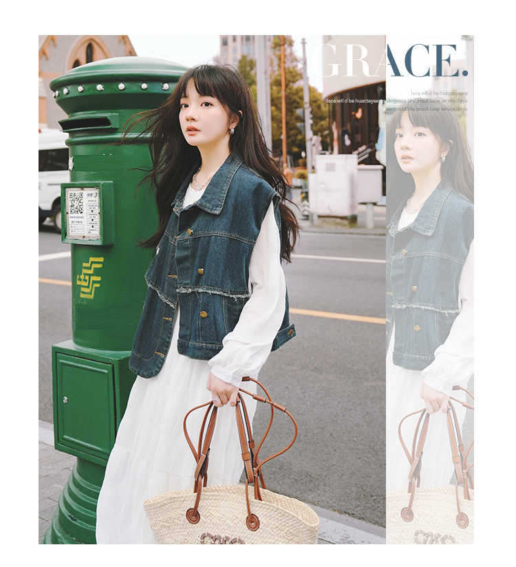 🔺面料:牛仔+高絲雪紡+內襯(聚酯纖維)