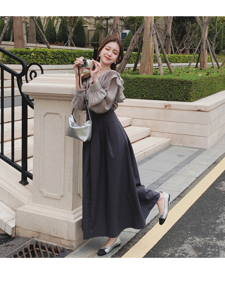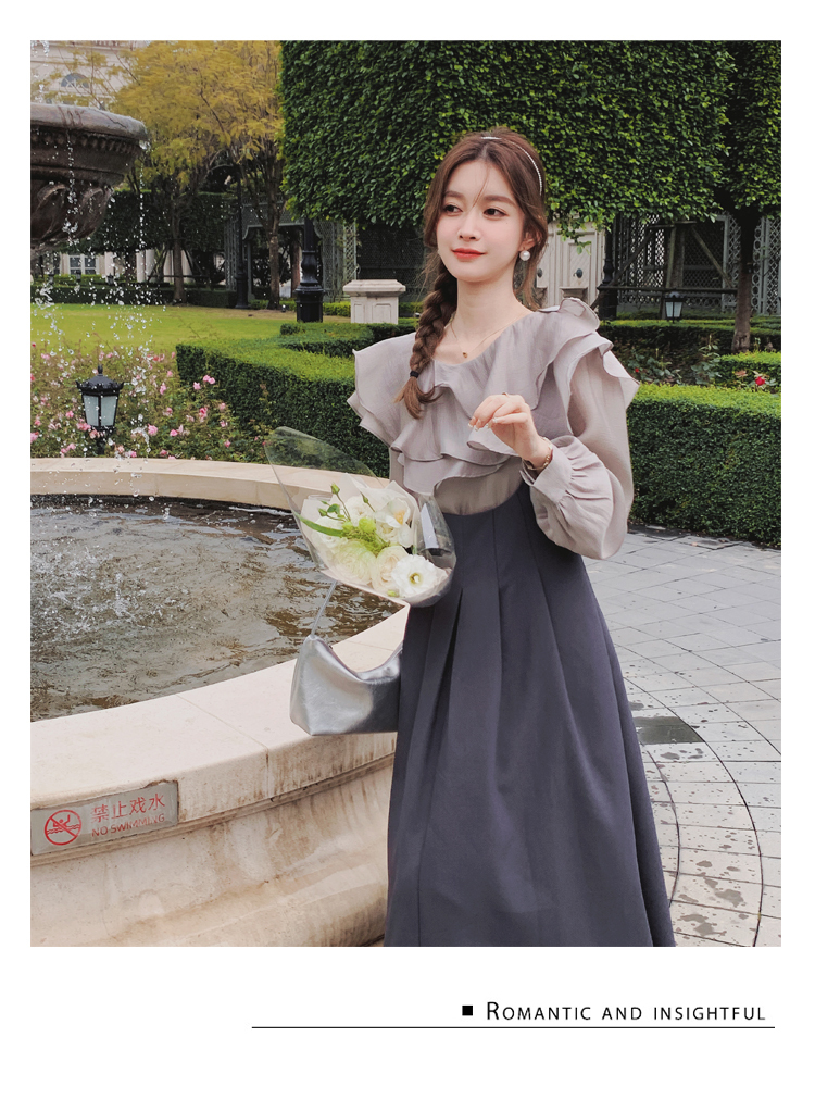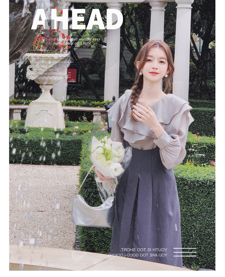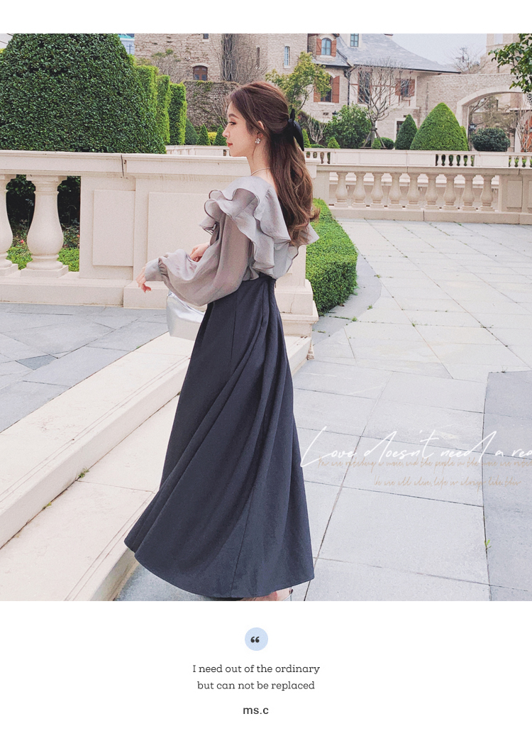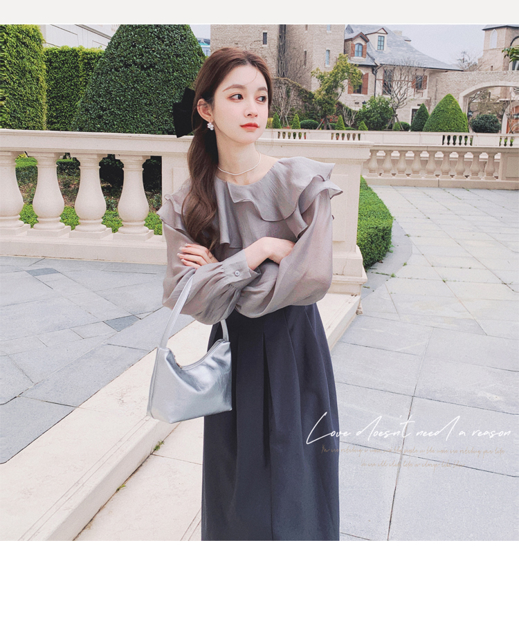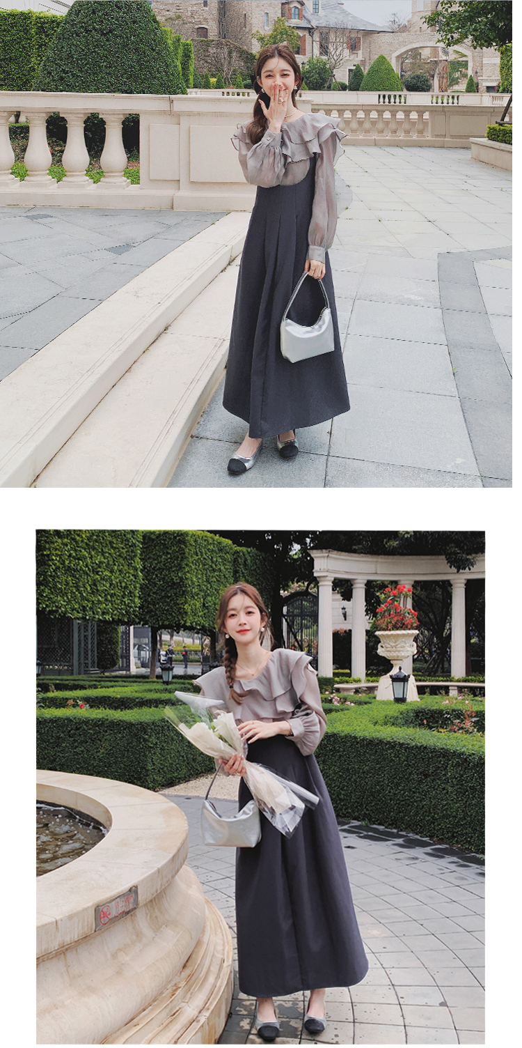 獨家訂製│韓系氣質感荷葉邊雪紡衫+收腰吊帶裙兩件式套裝組(09H4793)