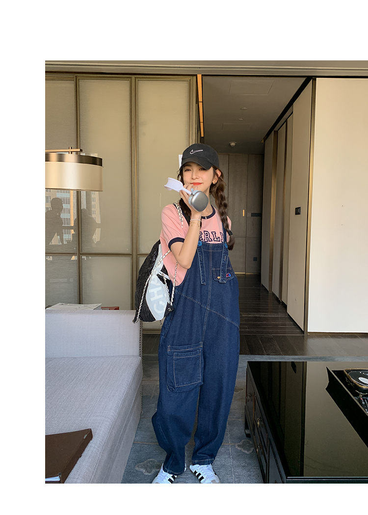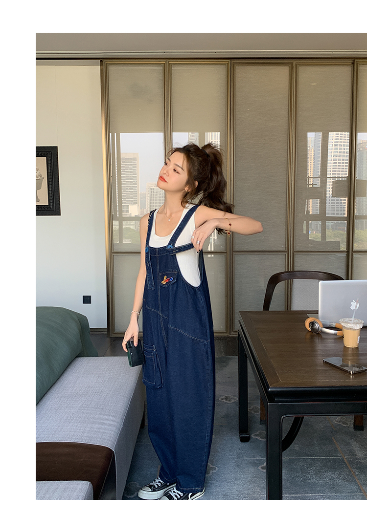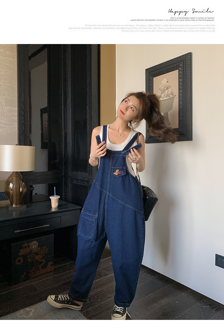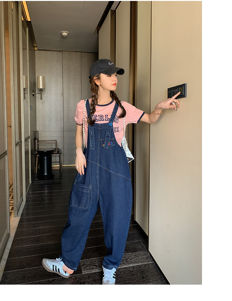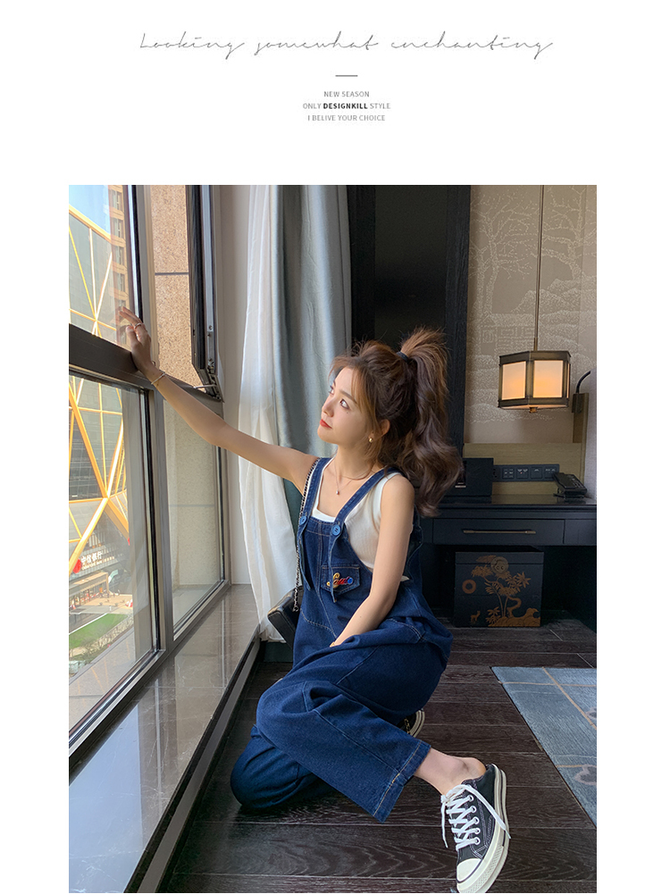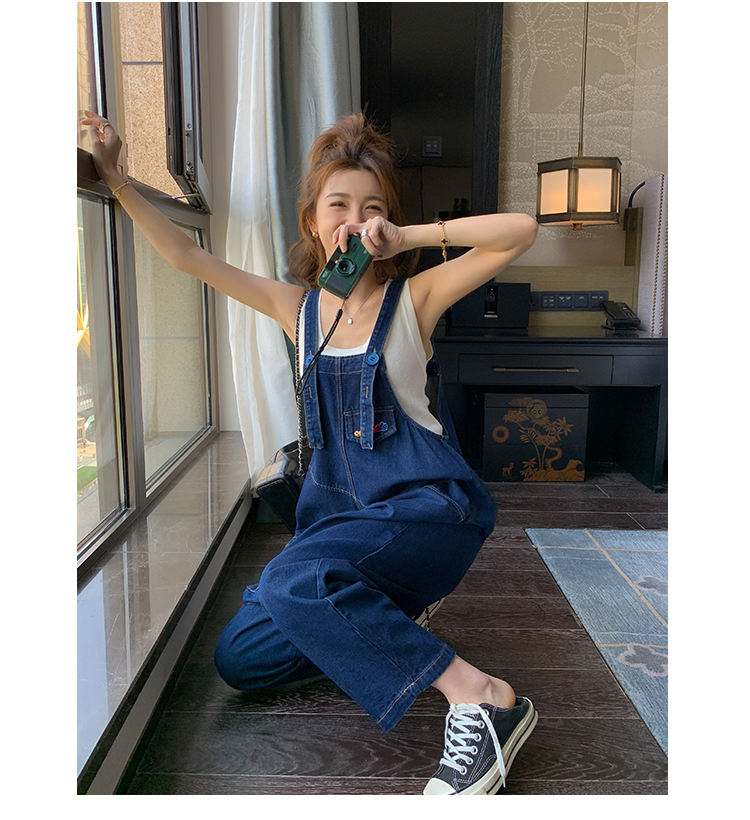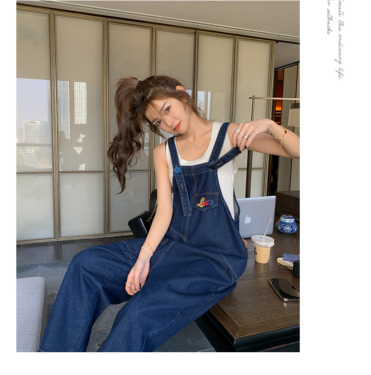 獨家訂製│韓系甜酷立體口袋刺繡牛仔吊帶褲(09H4832)