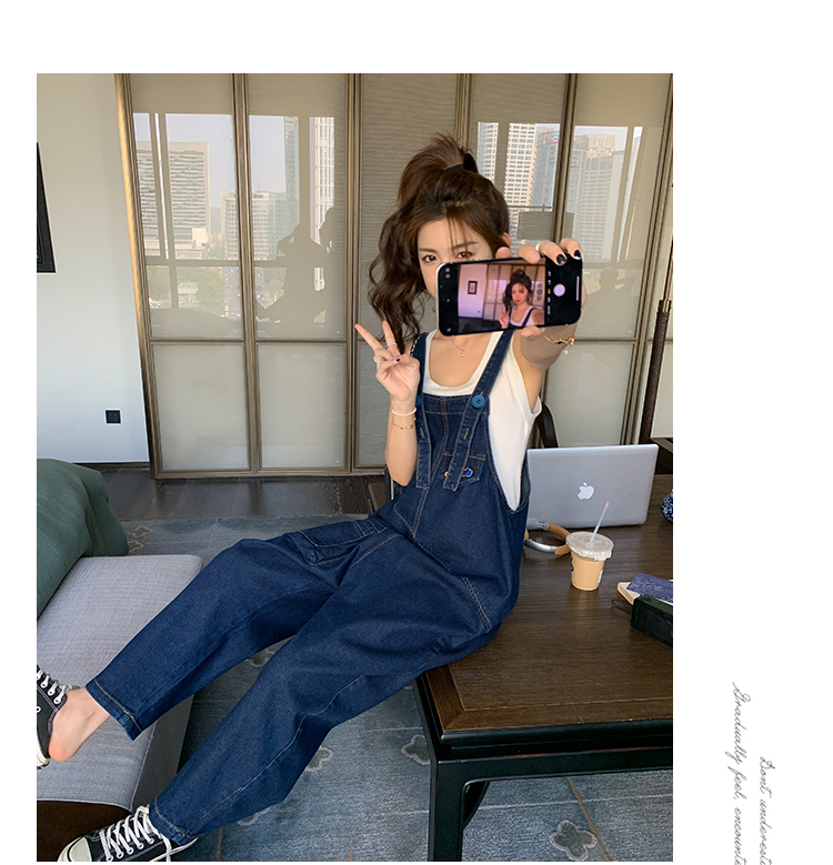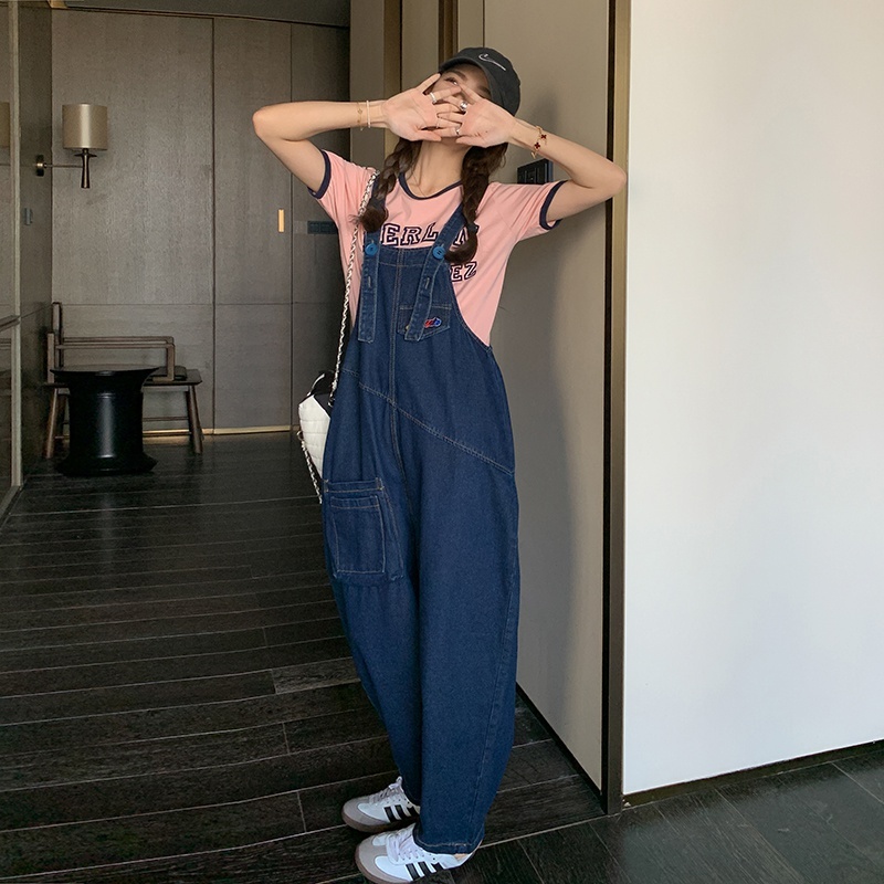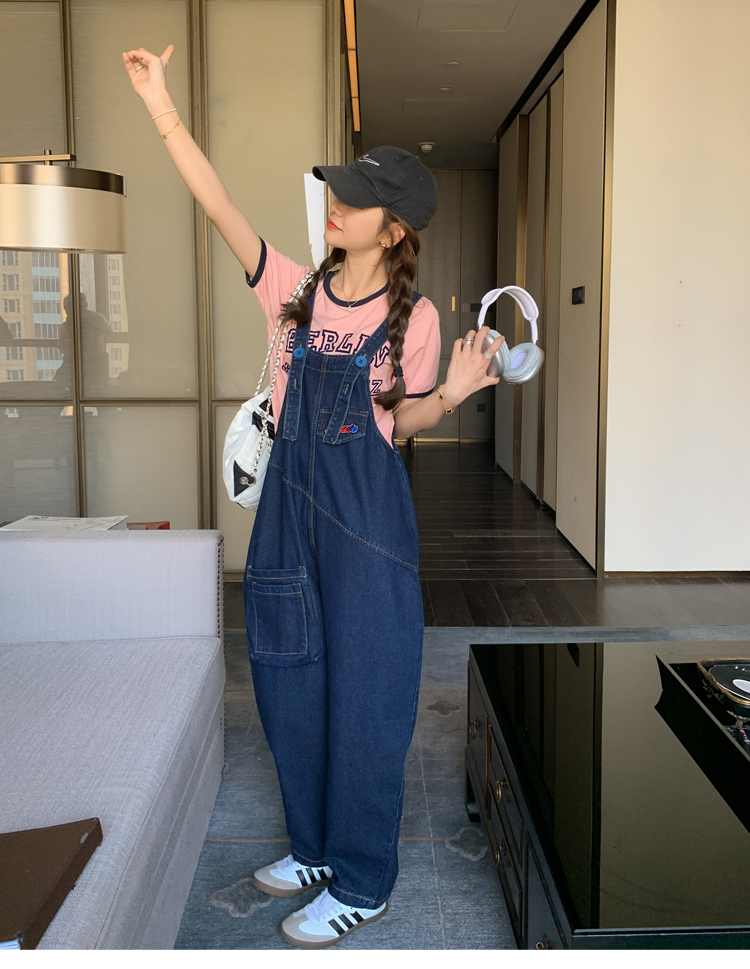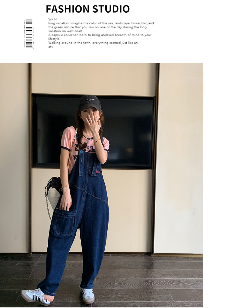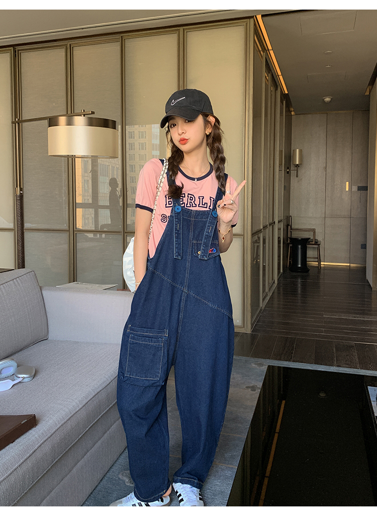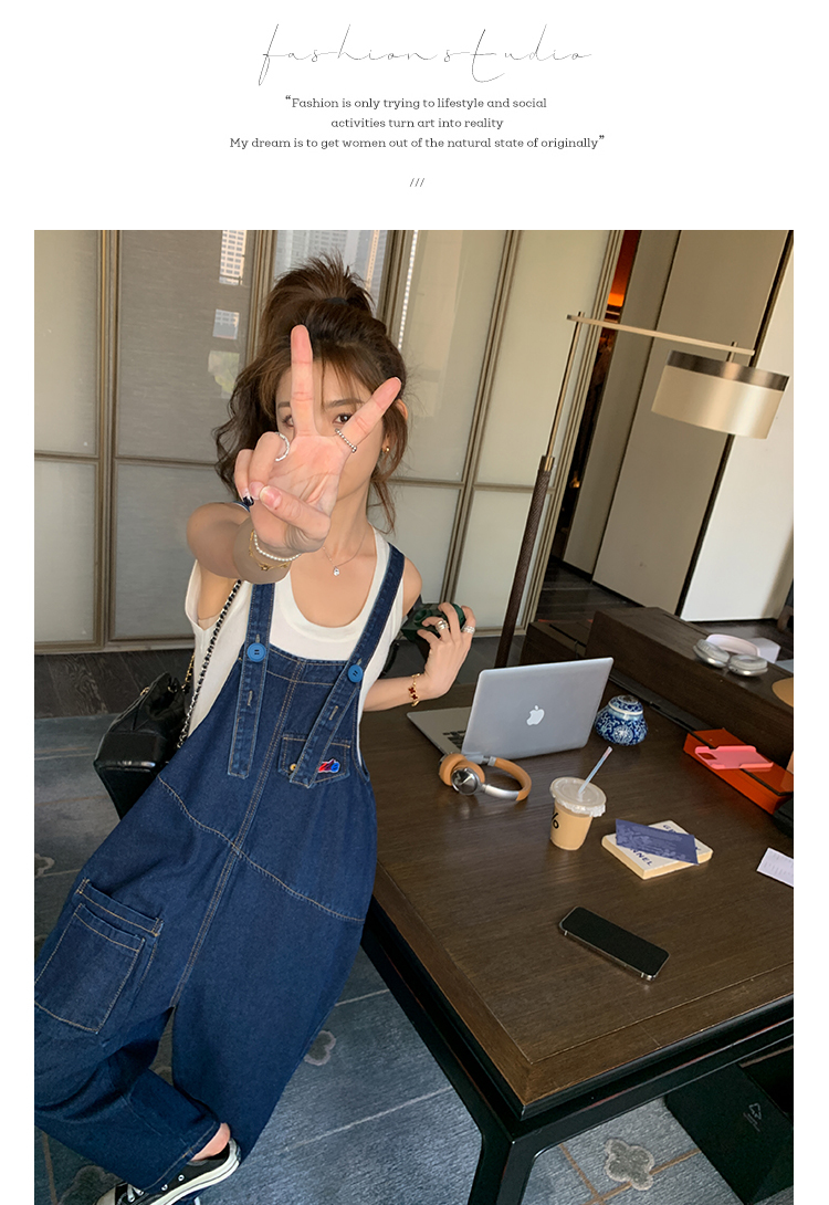獨家訂製│韓系甜酷立體口袋刺繡牛仔吊帶褲(09H4832)