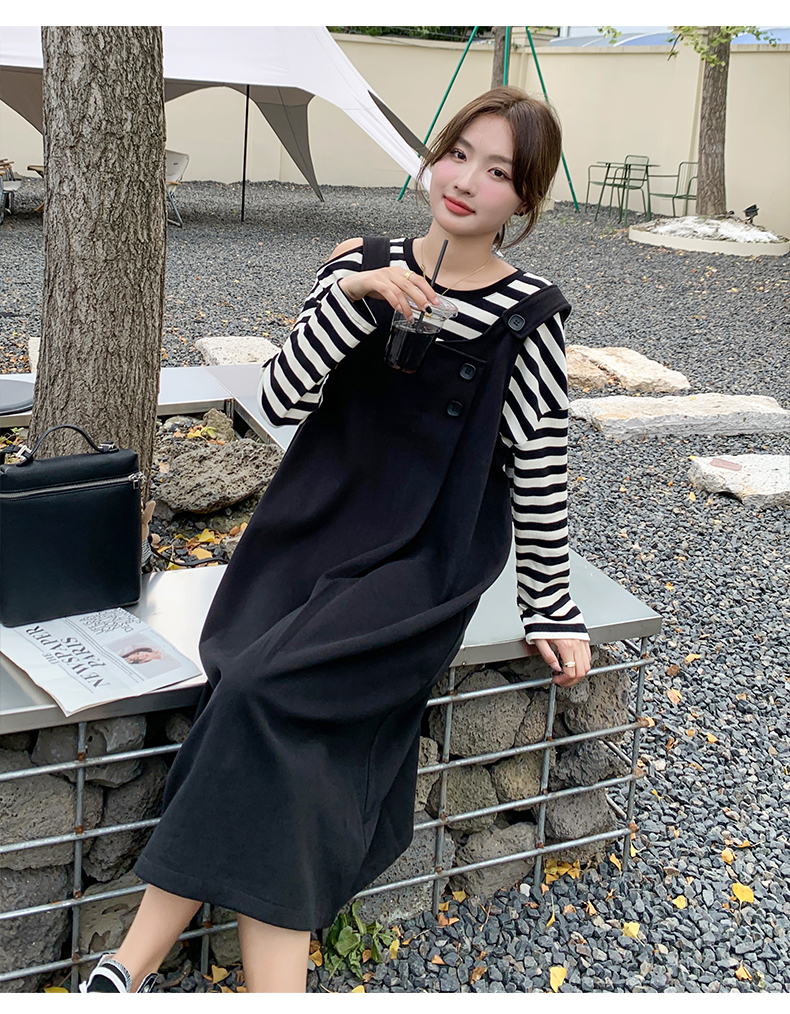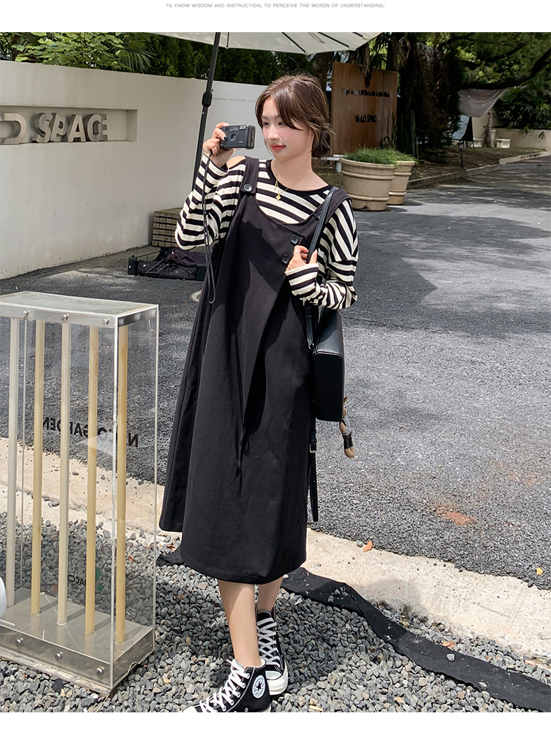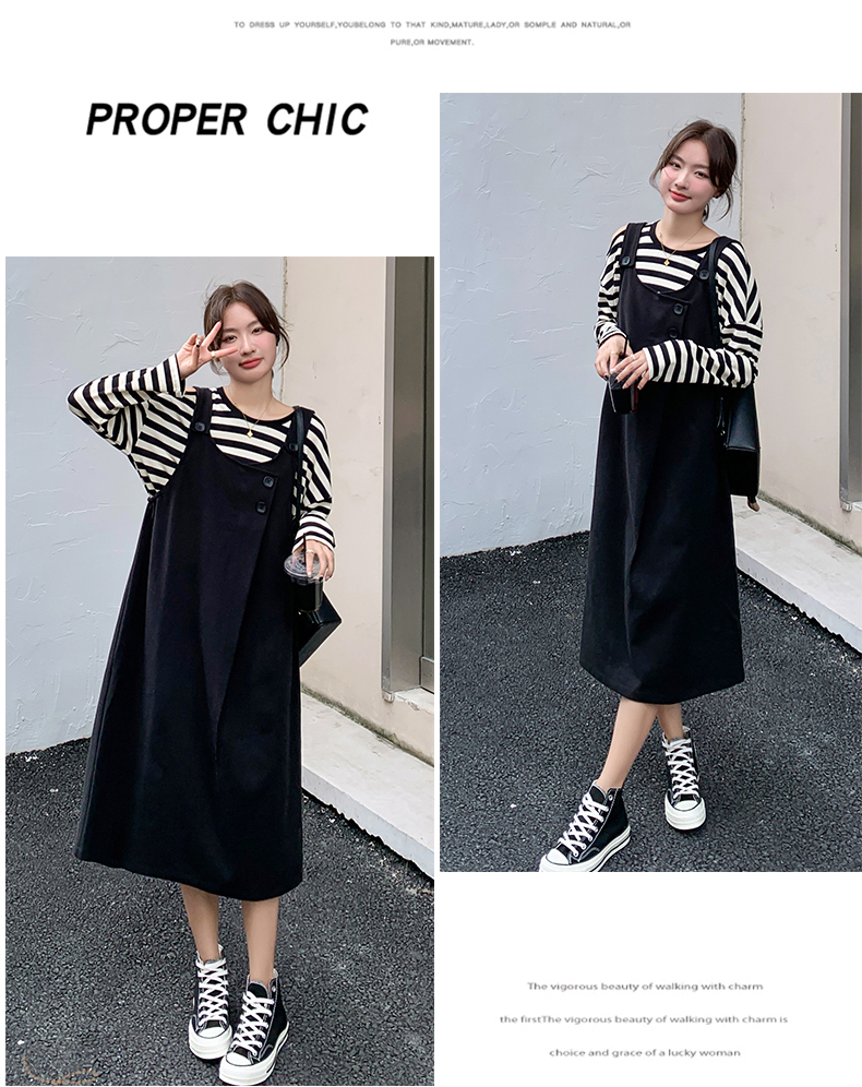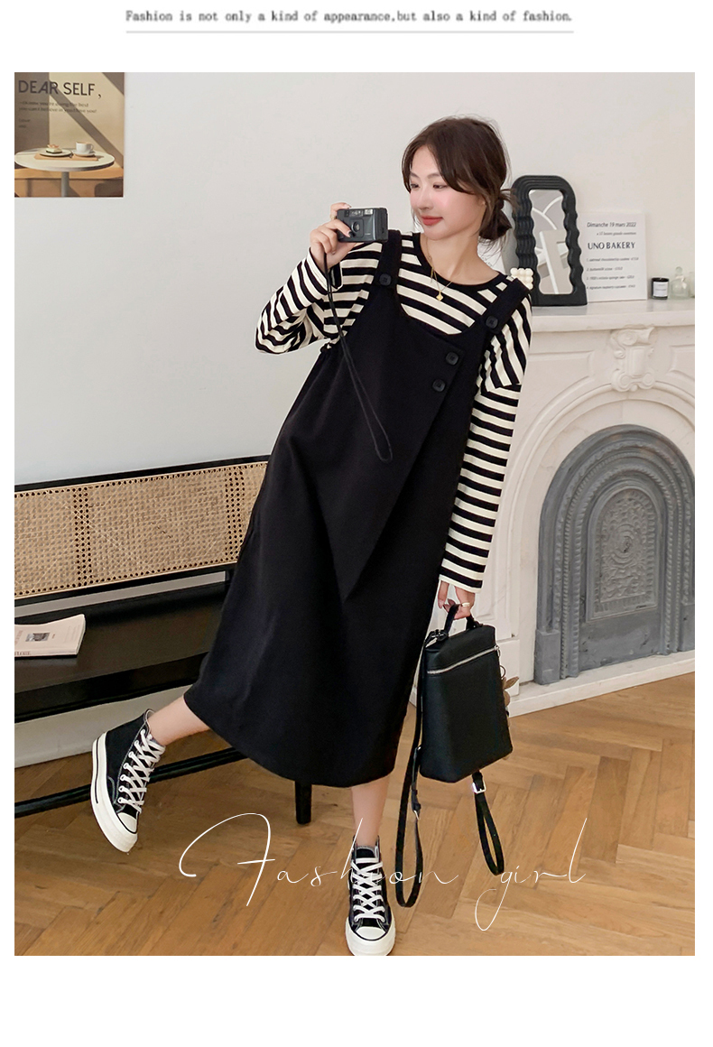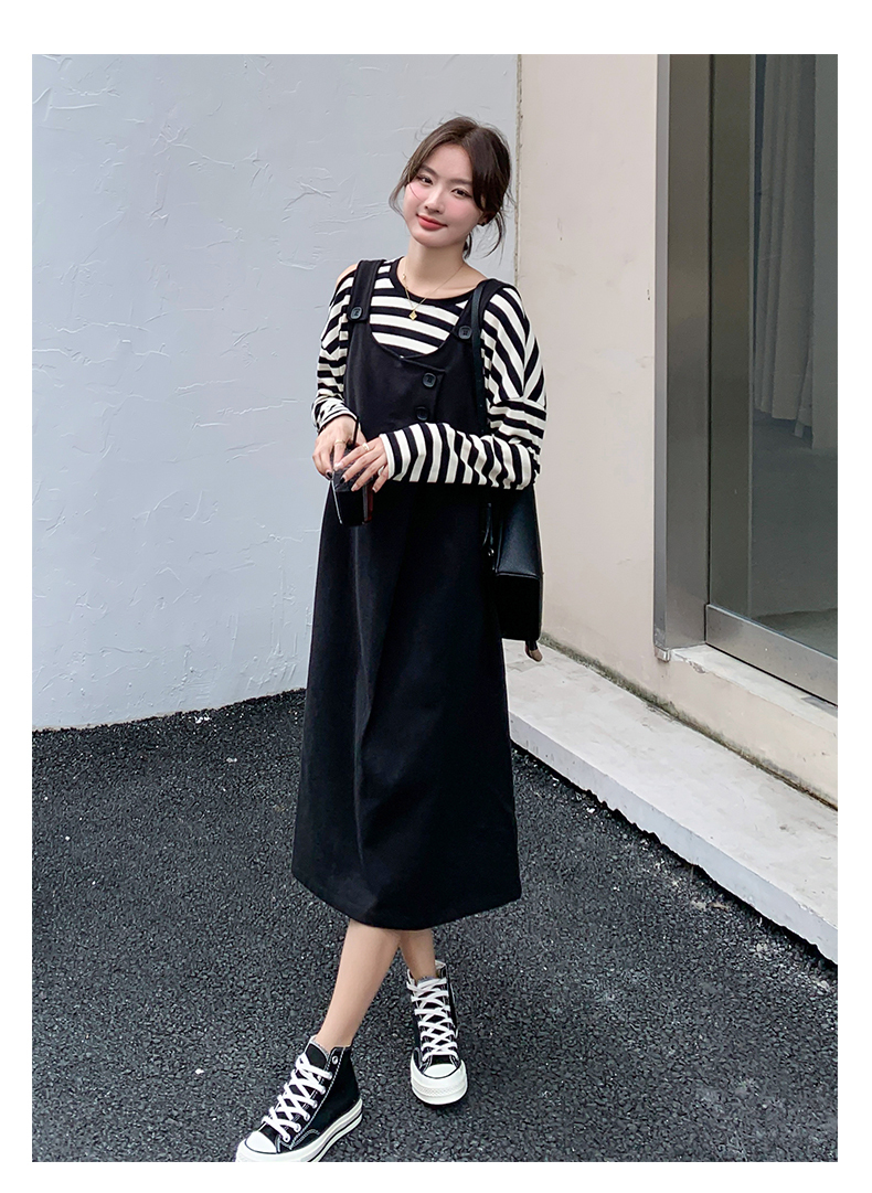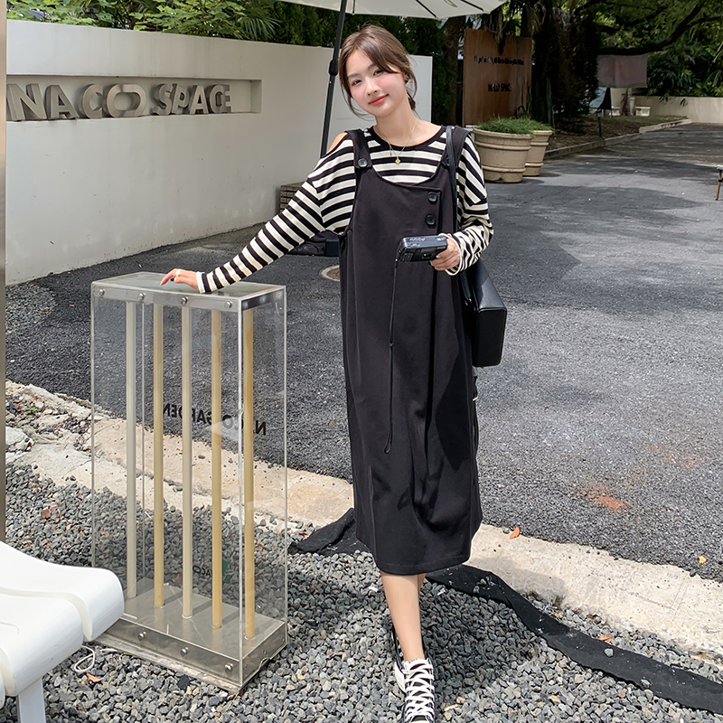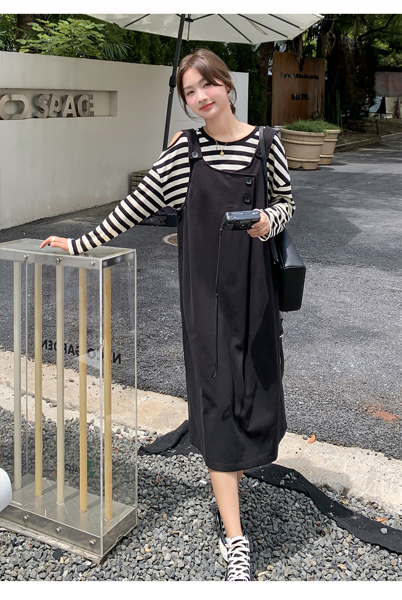 獨家訂製│韓系心機感露肩T恤+單排釦吊帶裙兩件式套裝組(09H4888)
