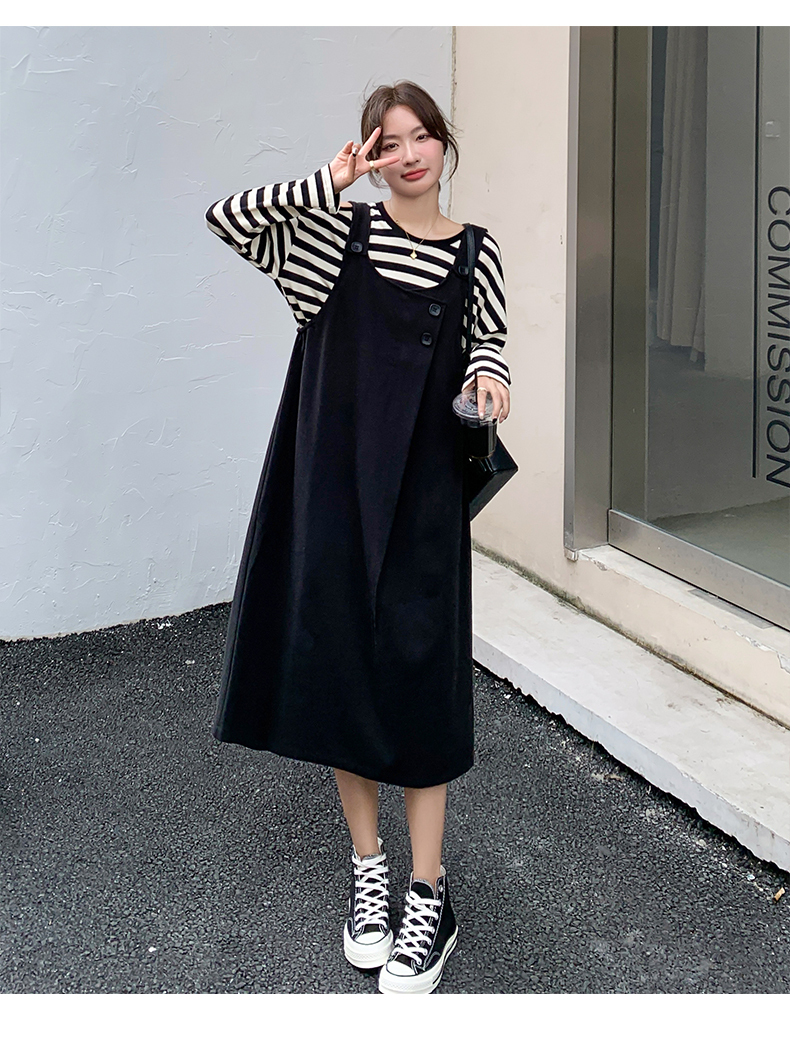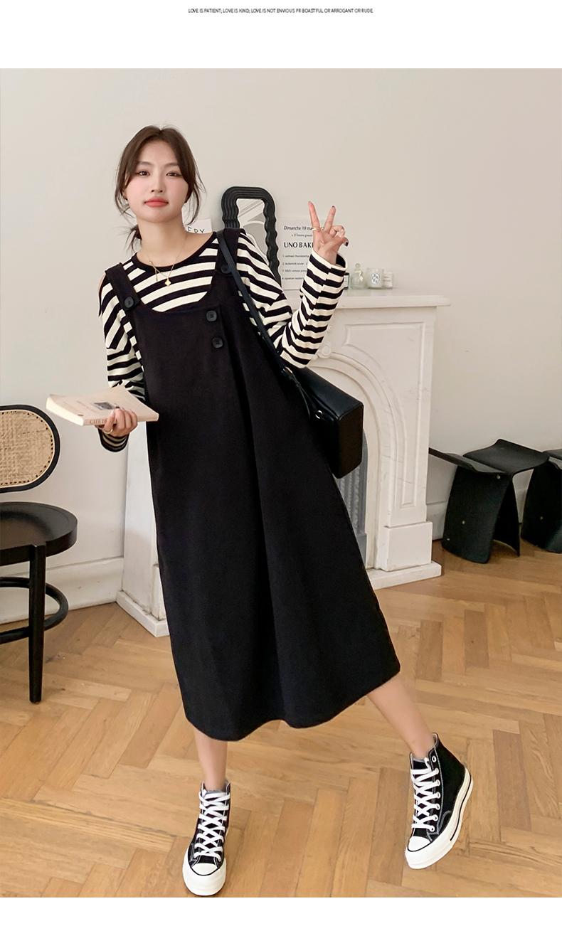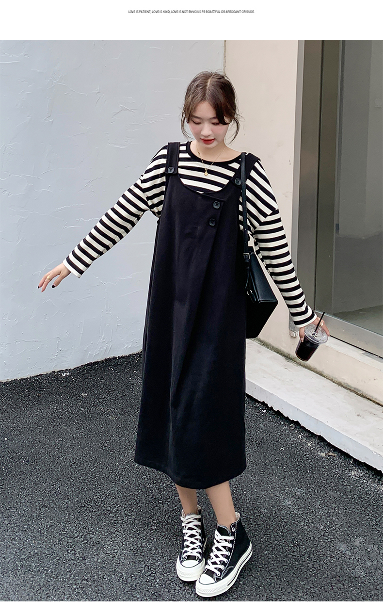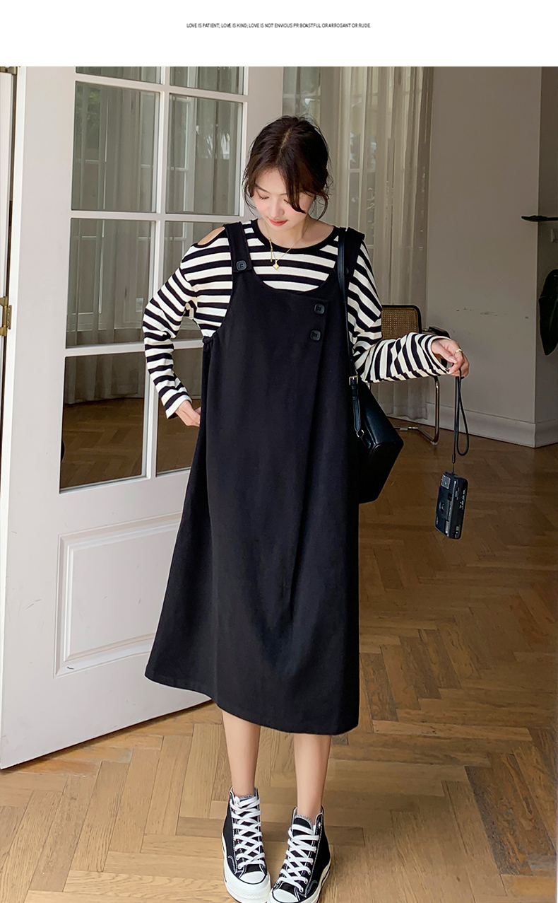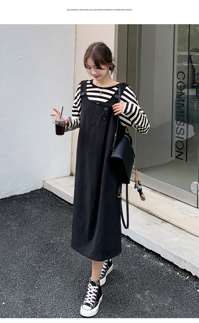 獨家訂製│韓系心機感露肩T恤+單排釦吊帶裙兩件式套裝組(09H4888)