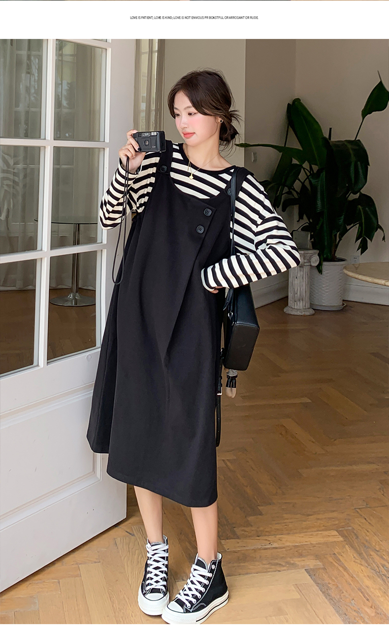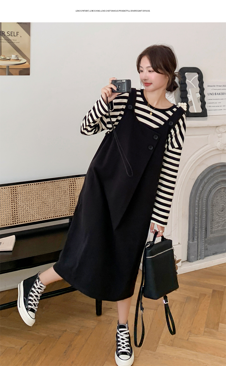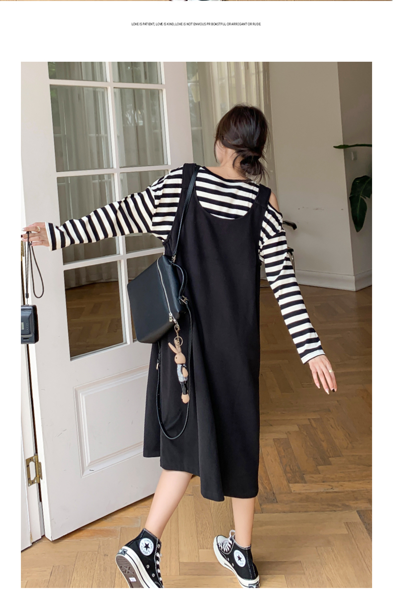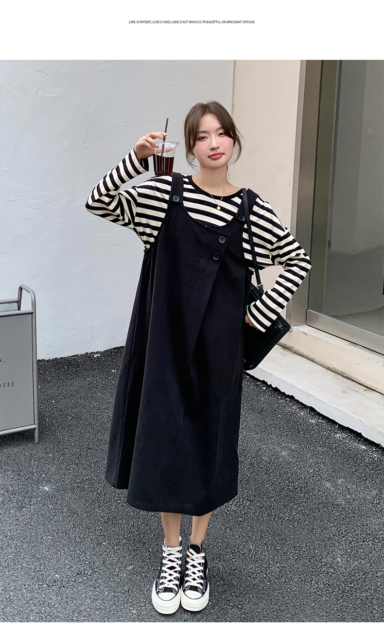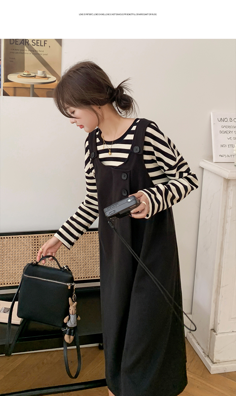 獨家訂製│韓系心機感露肩T恤+單排釦吊帶裙兩件式套裝組(09H4888)