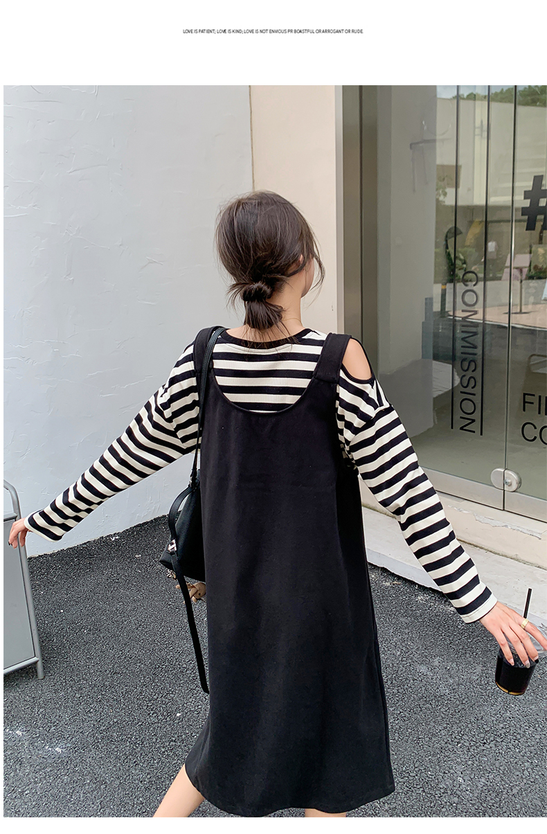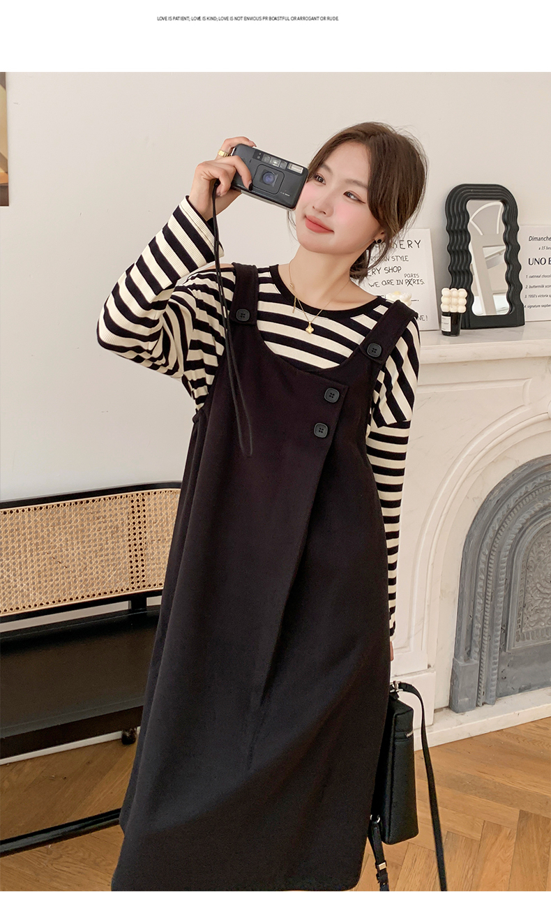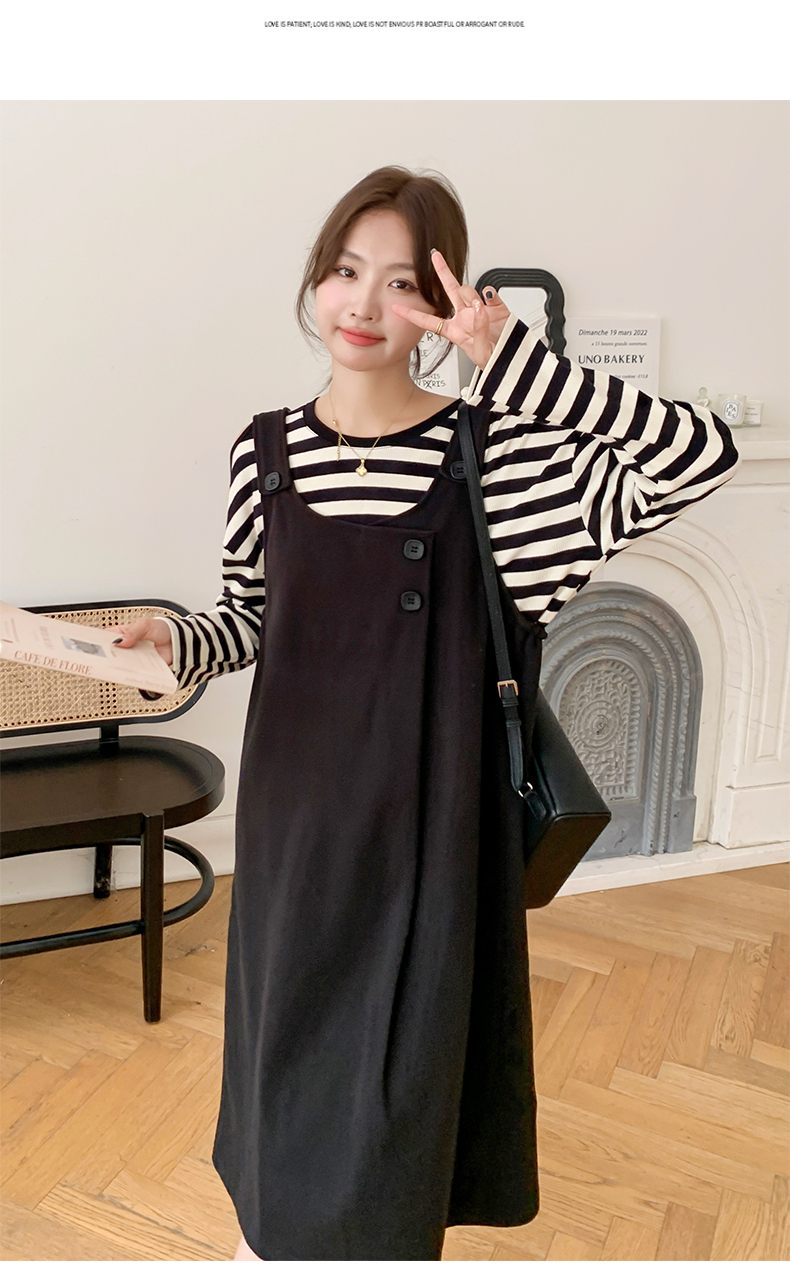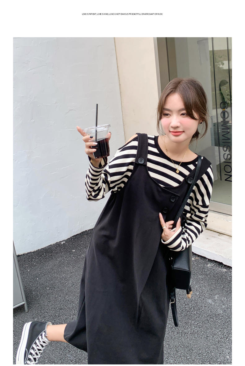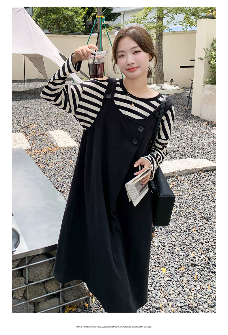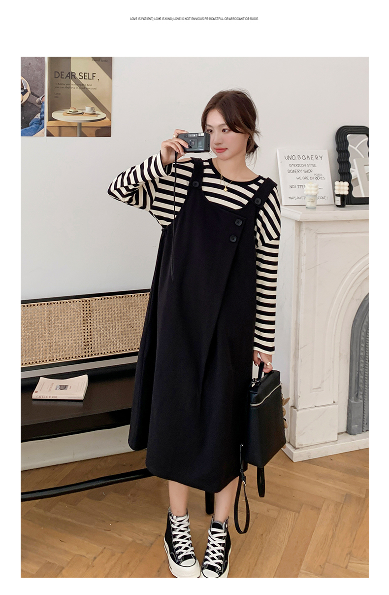 獨家訂製│韓系心機感露肩T恤+單排釦吊帶裙兩件式套裝組(09H4888)