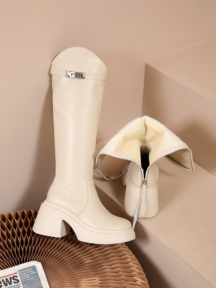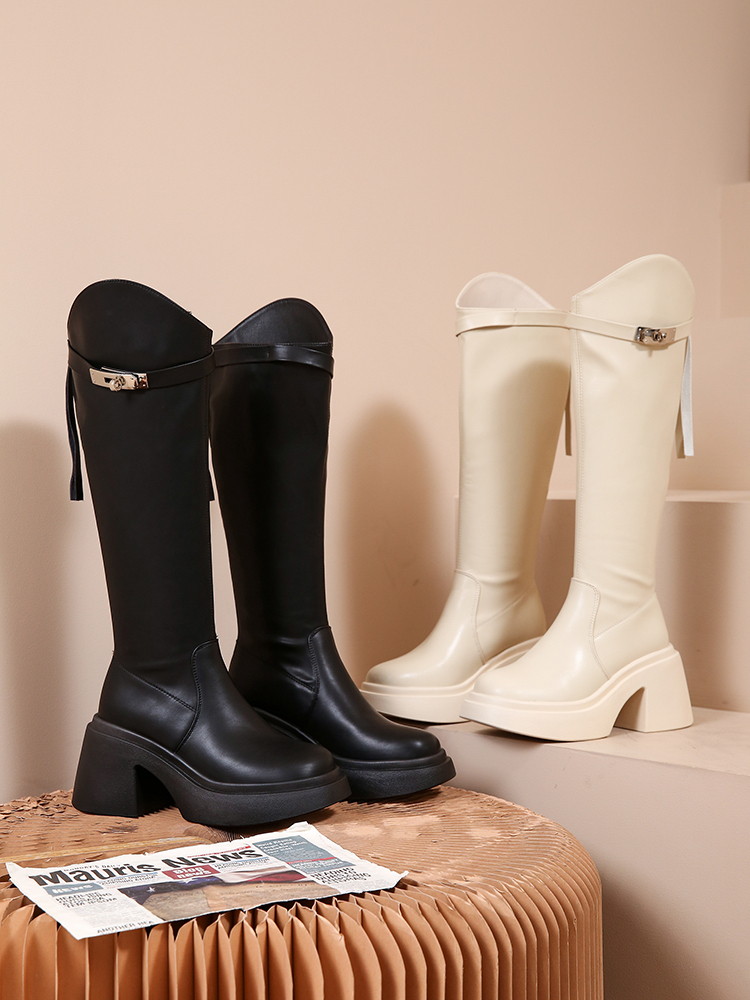氣質素面拉鍊超厚底長筒靴-2色(09H4910)