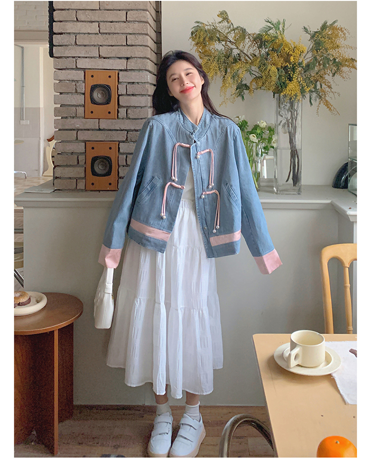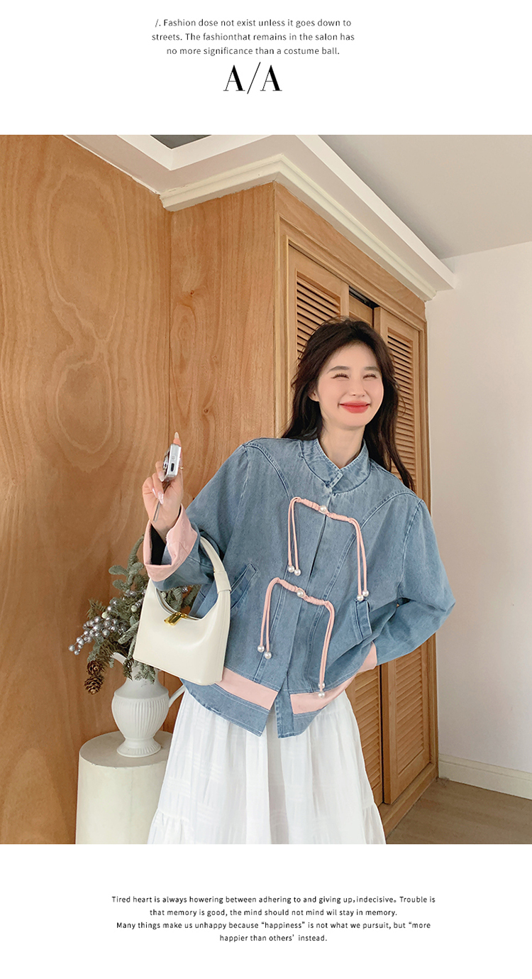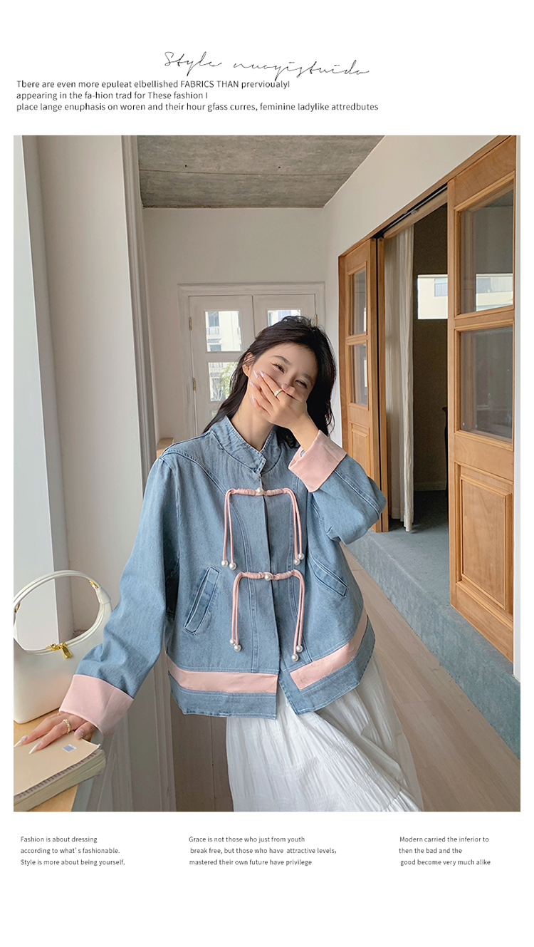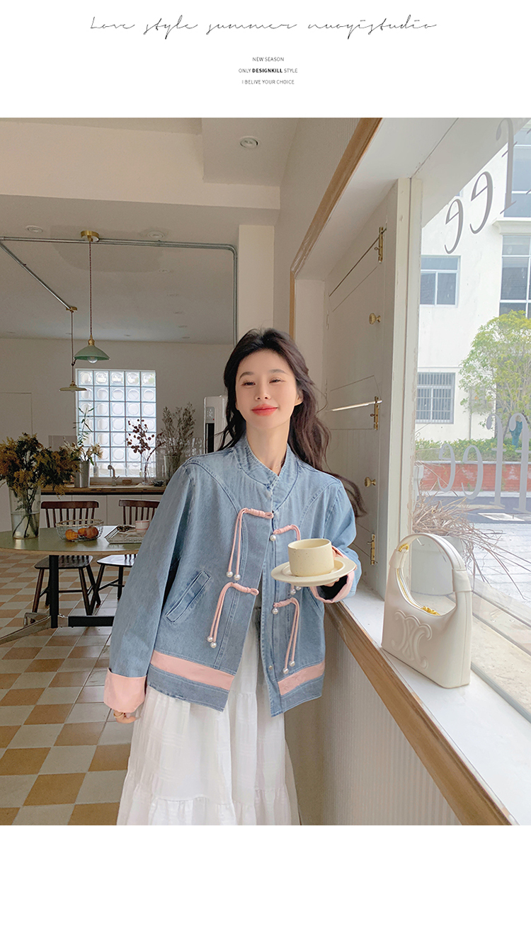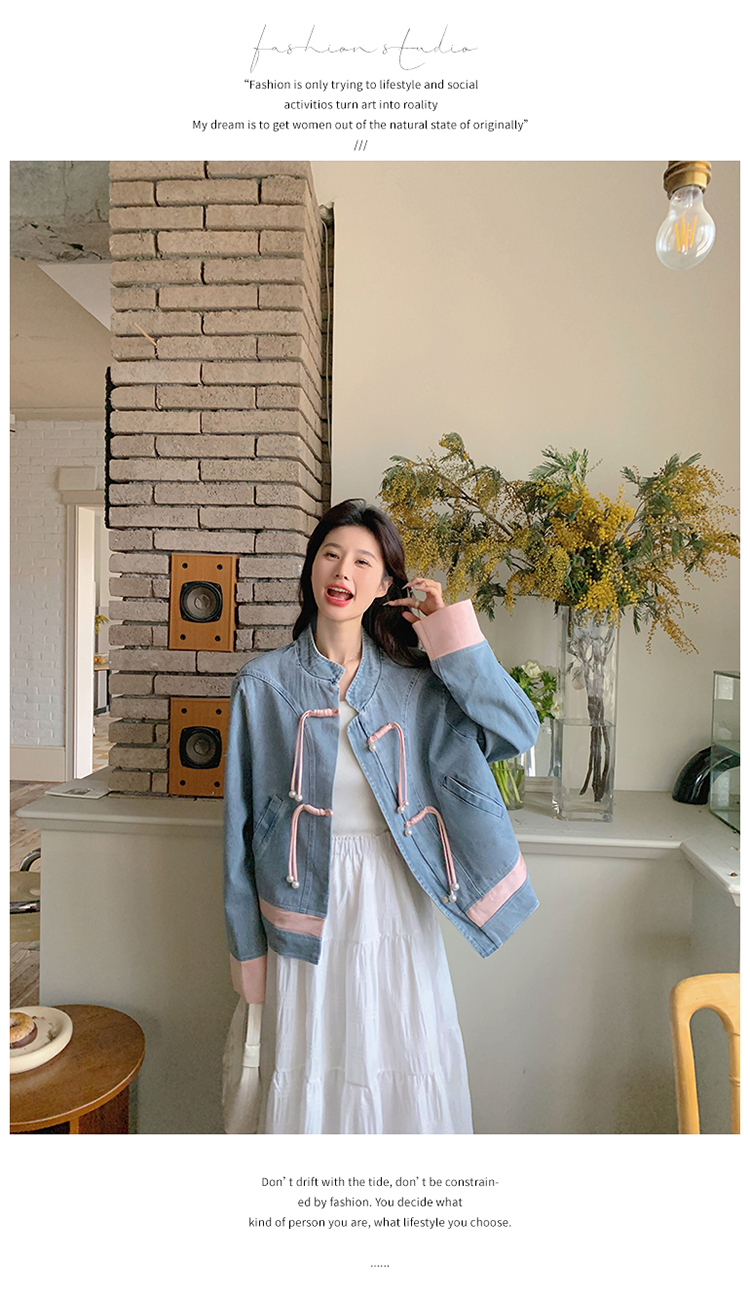 獨家訂製│韓系甜酷風立領盤釦造型牛仔外套(10H6909)