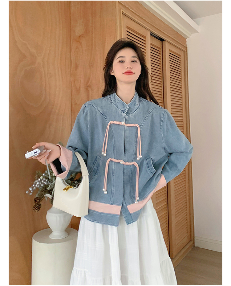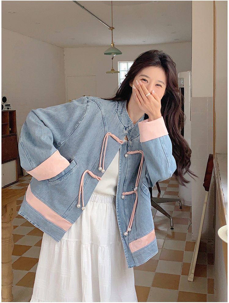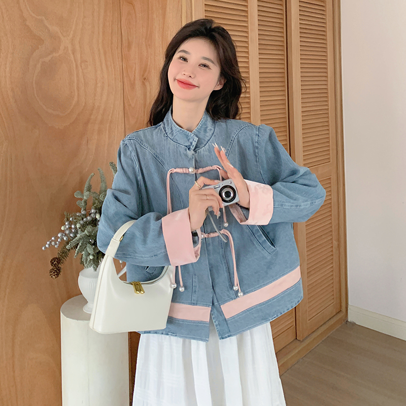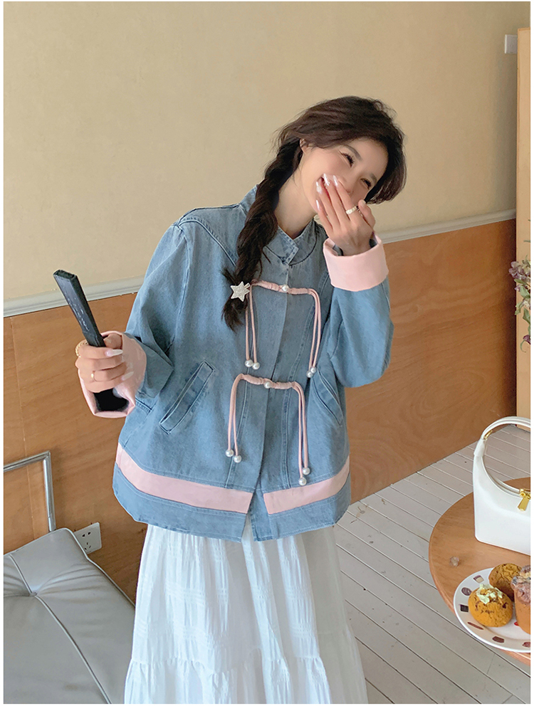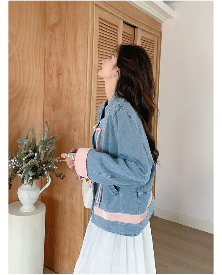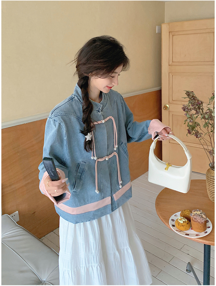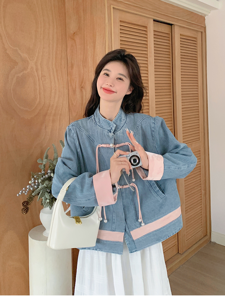 獨家訂製│韓系甜酷風立領盤釦造型牛仔外套(10H6909)