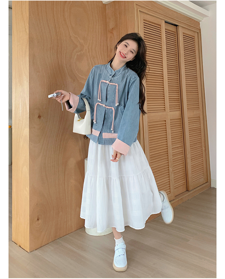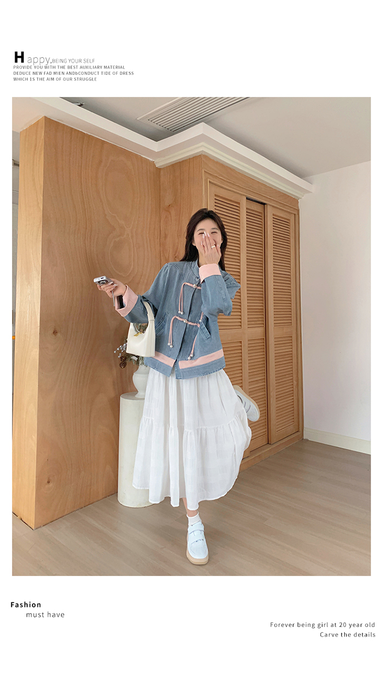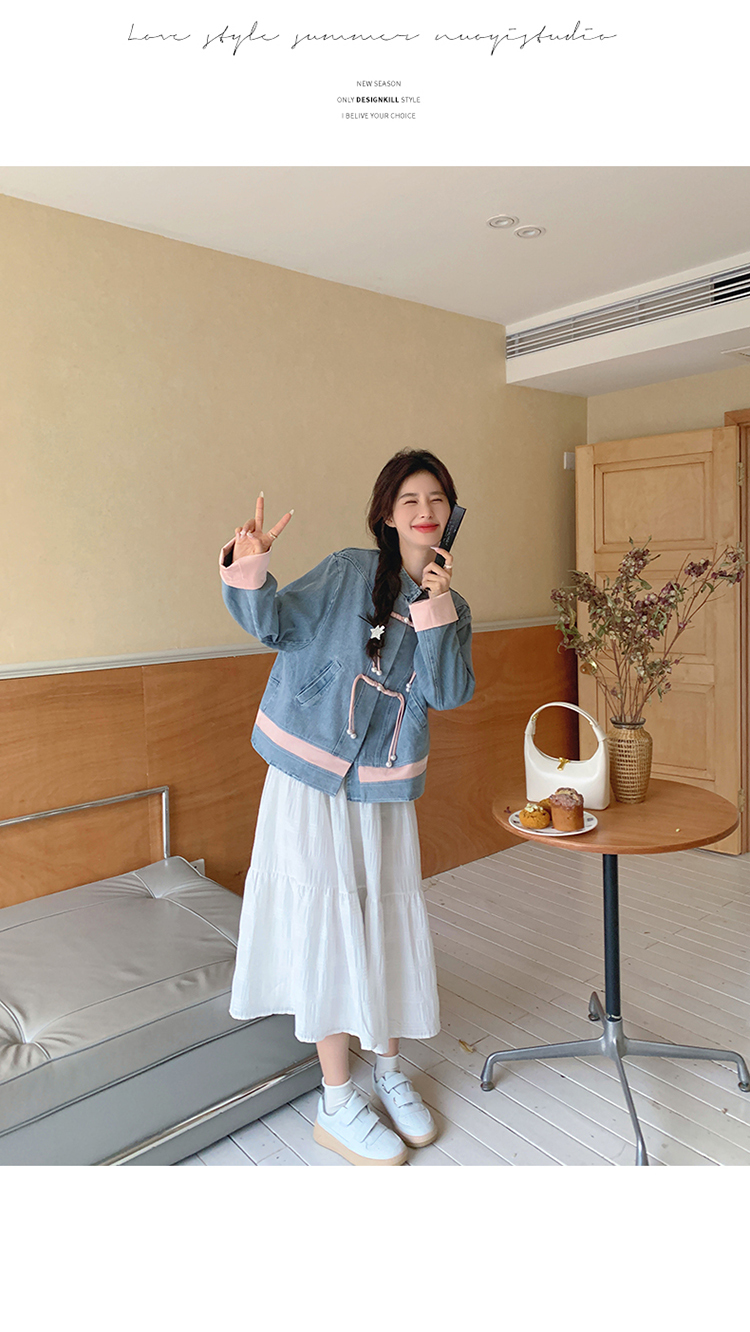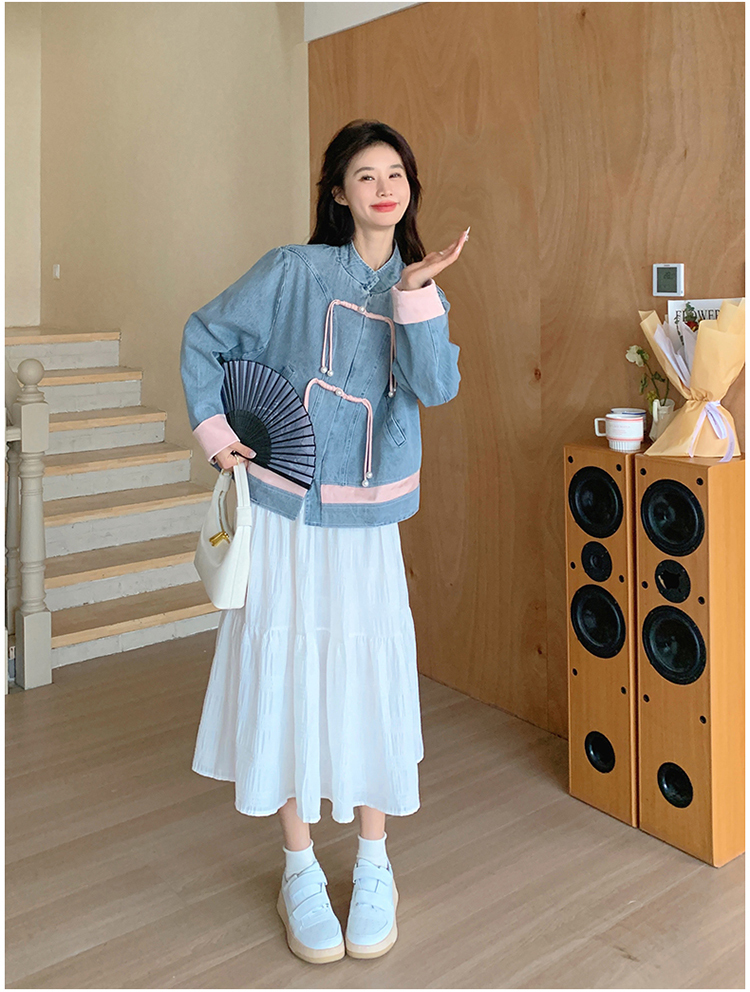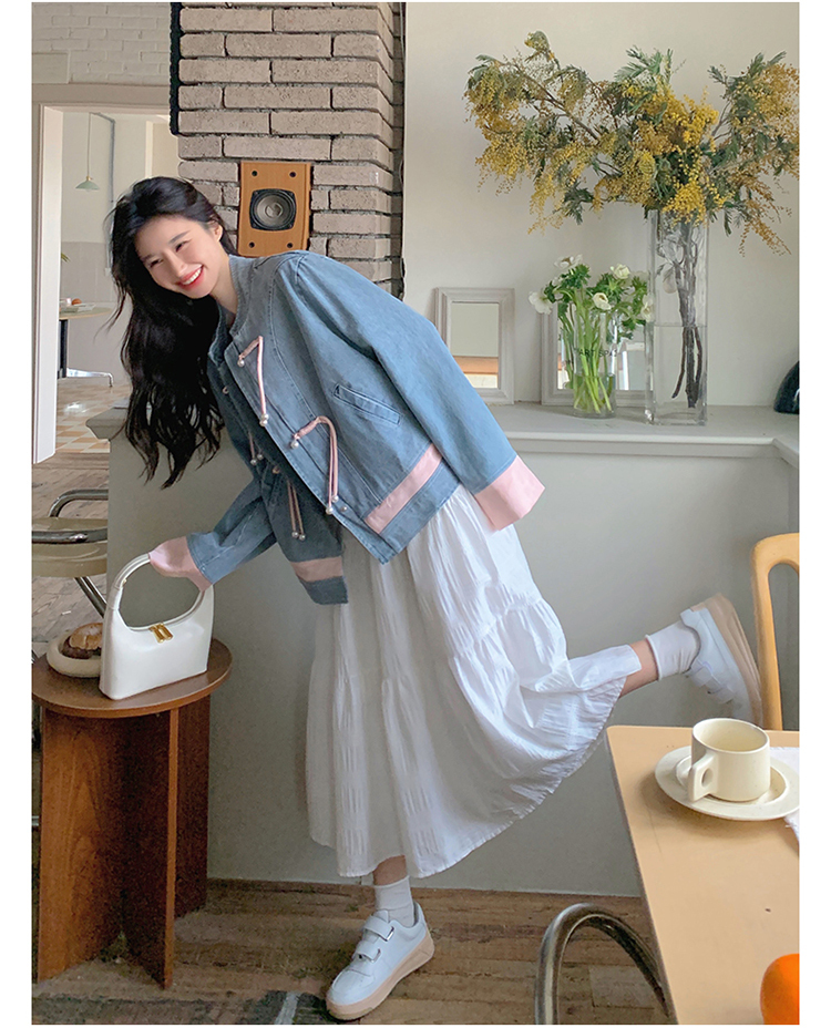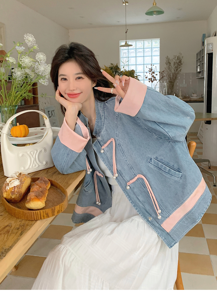 獨家訂製│韓系甜酷風立領盤釦造型牛仔外套(10H6909)