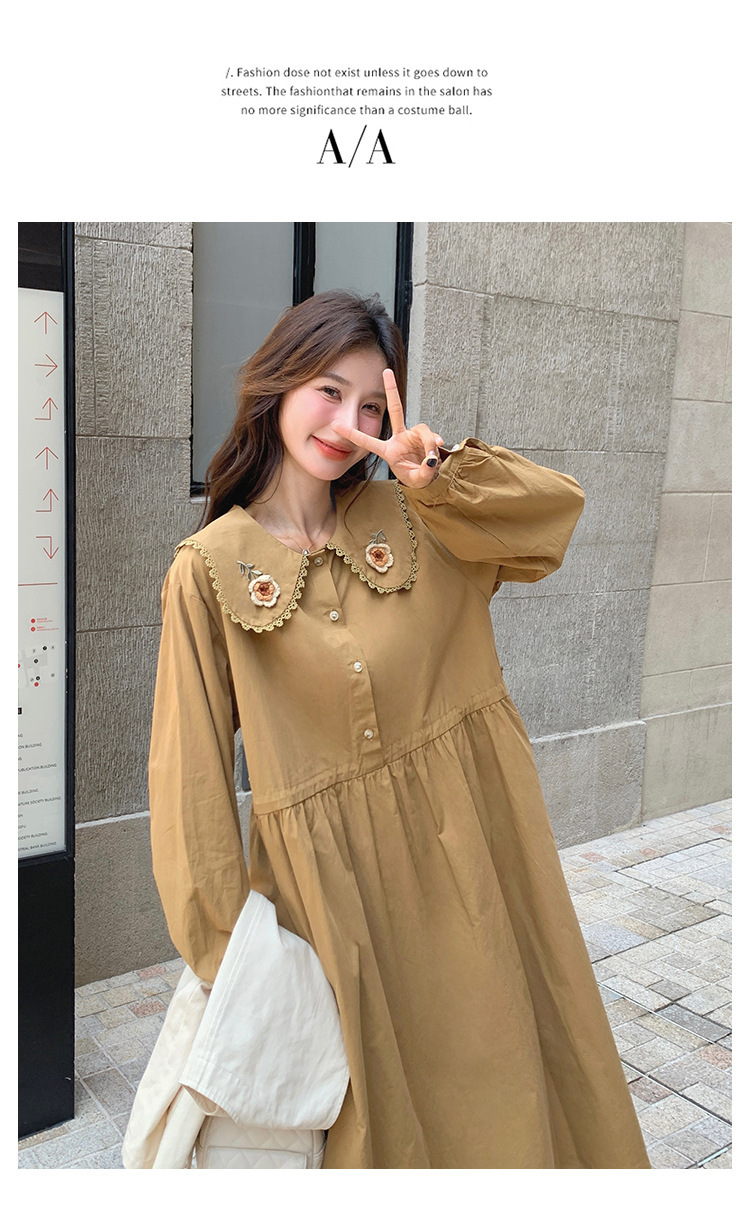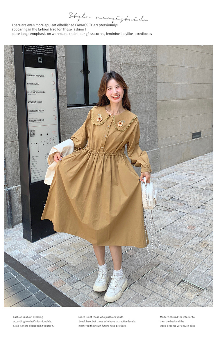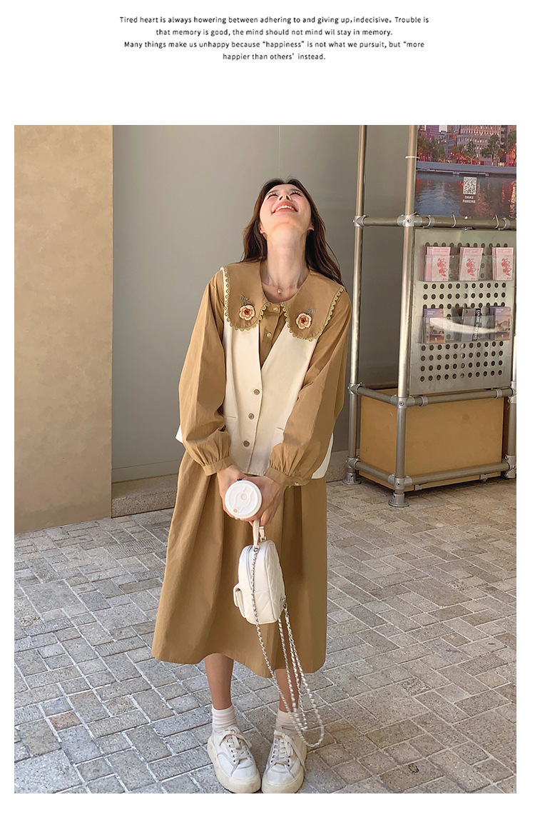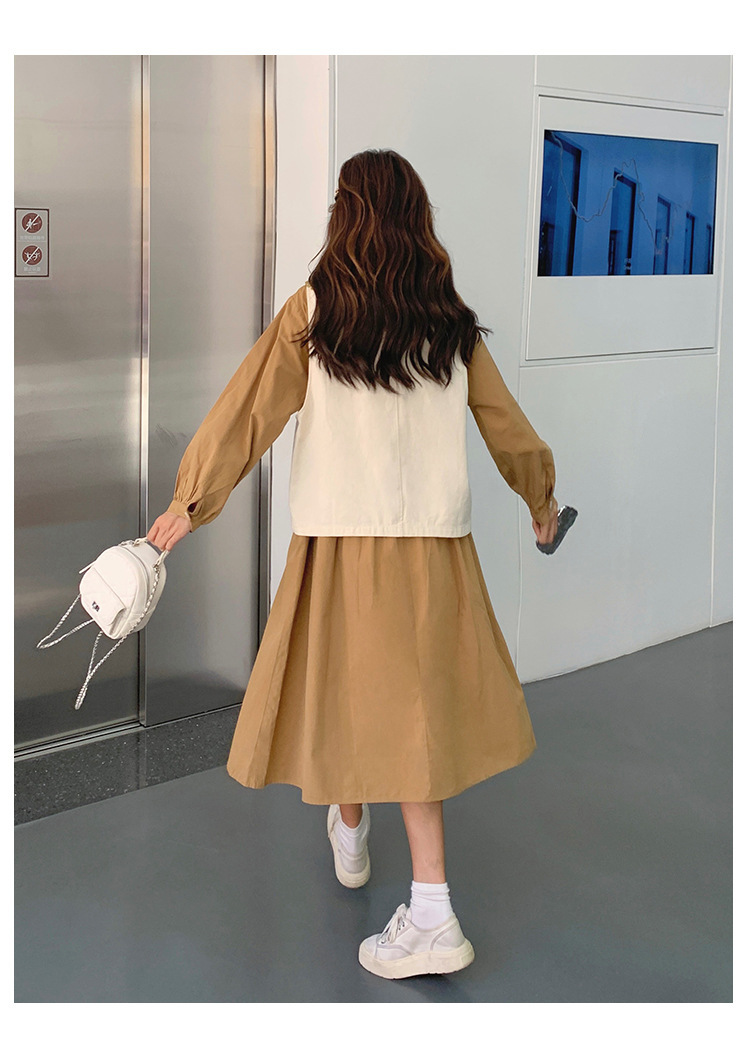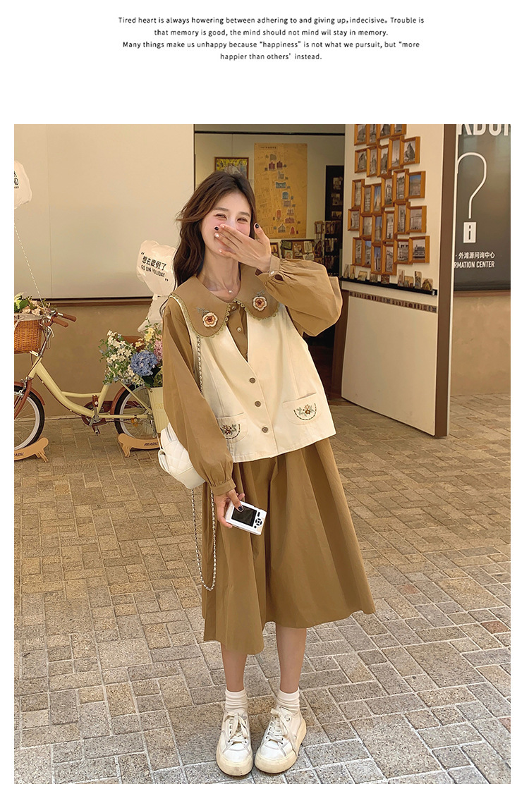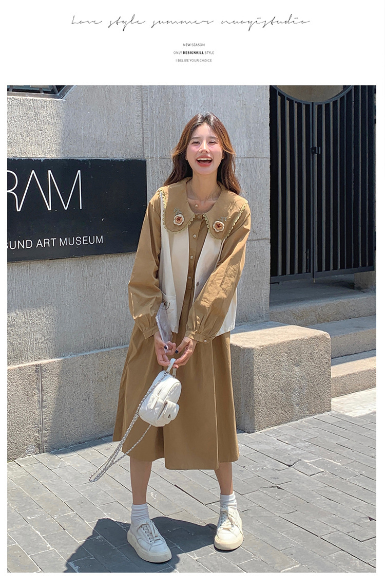 獨家訂製│2件式 韓系減齡感刺繡背心+花邊翻領收腰連衣裙(10H6923)