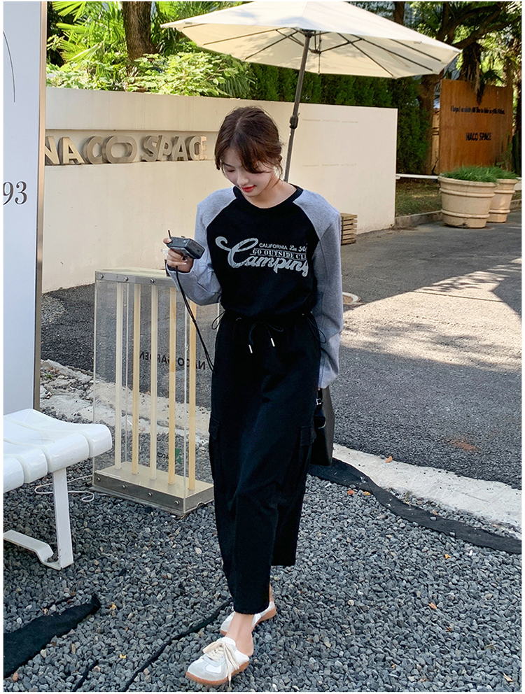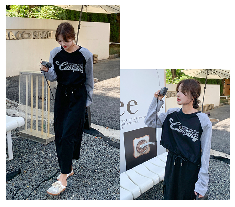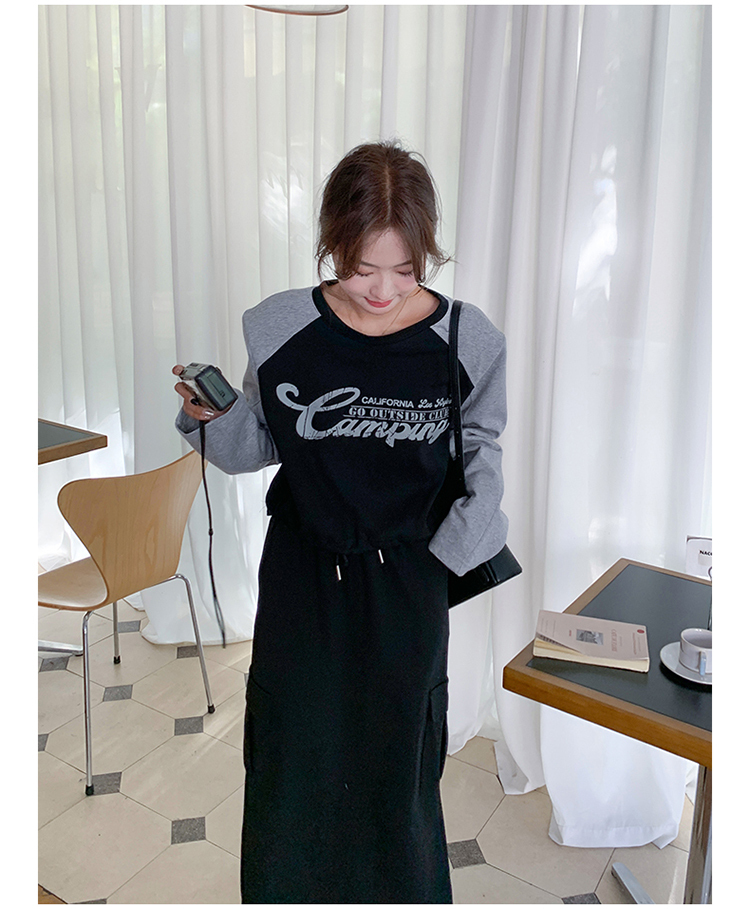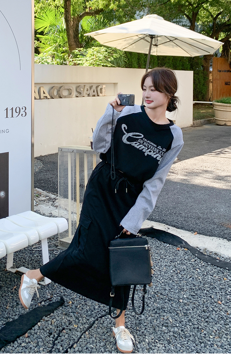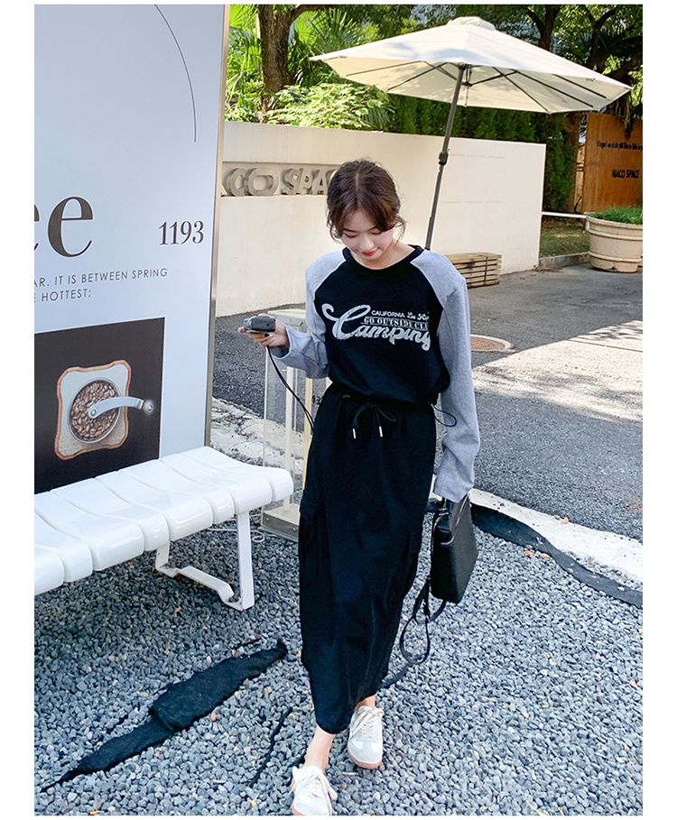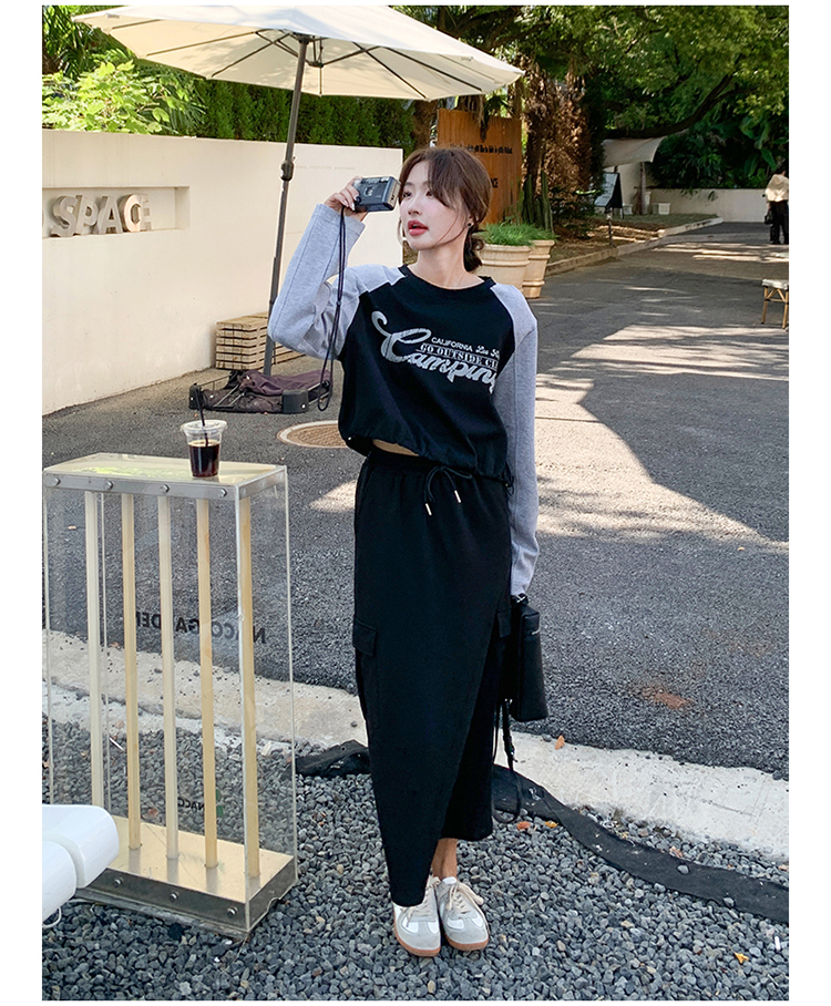 獨家訂製│2件式 韓系甜酷撞色抽繩T恤+A字裙(10H6943)