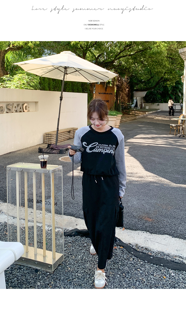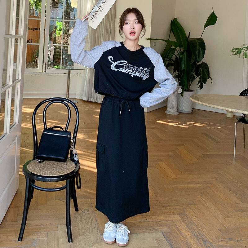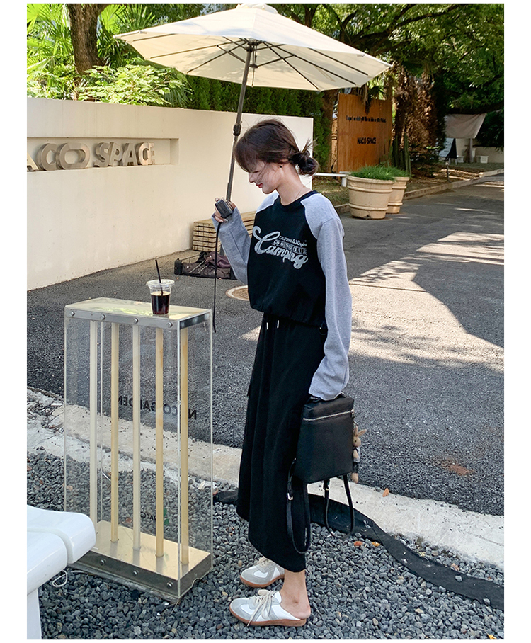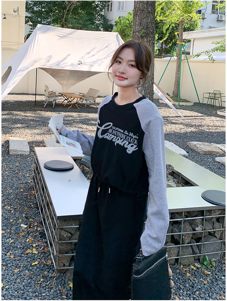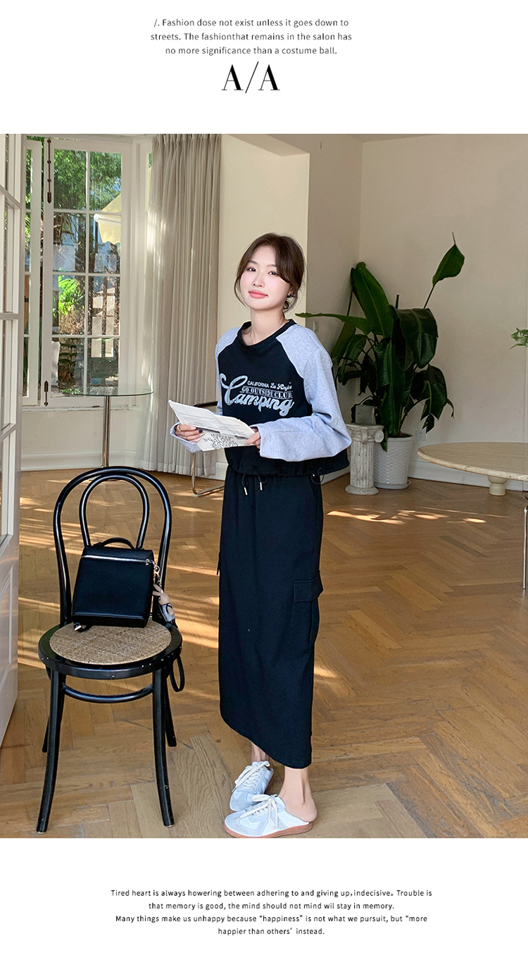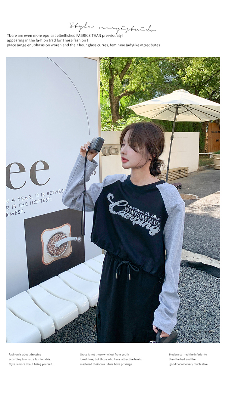 獨家訂製│2件式 韓系甜酷撞色抽繩T恤+A字裙(10H6943)