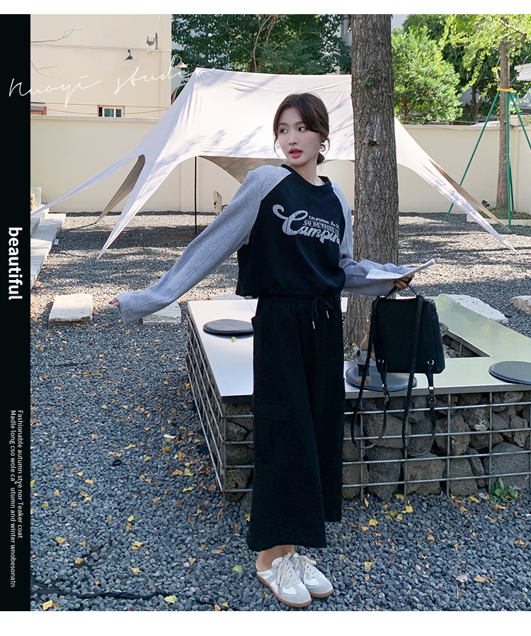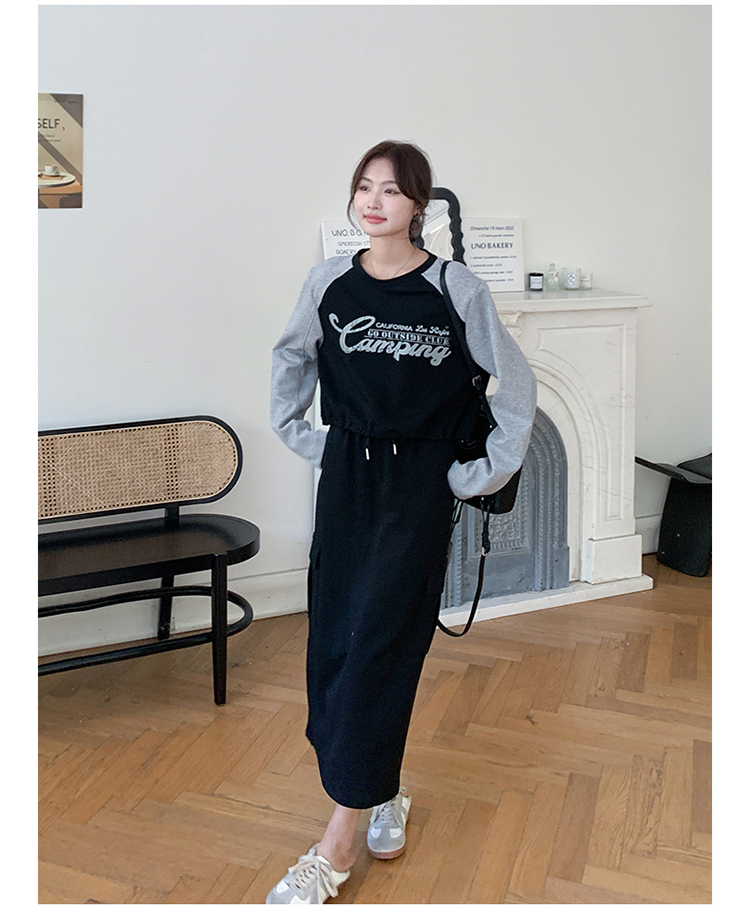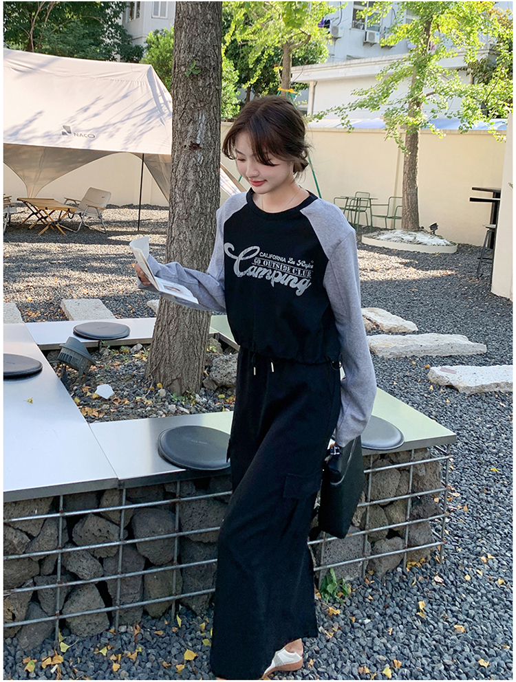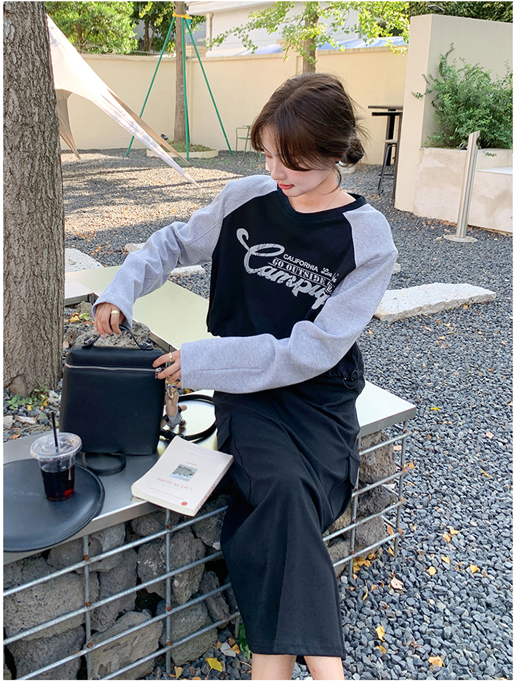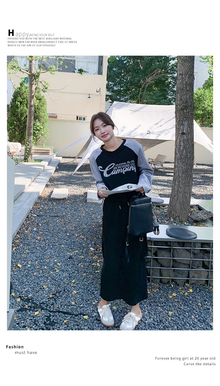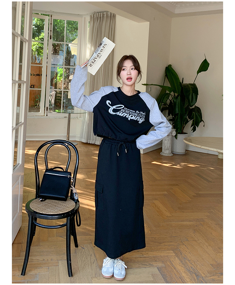 獨家訂製│2件式 韓系甜酷撞色抽繩T恤+A字裙(10H6943)