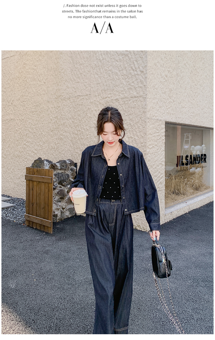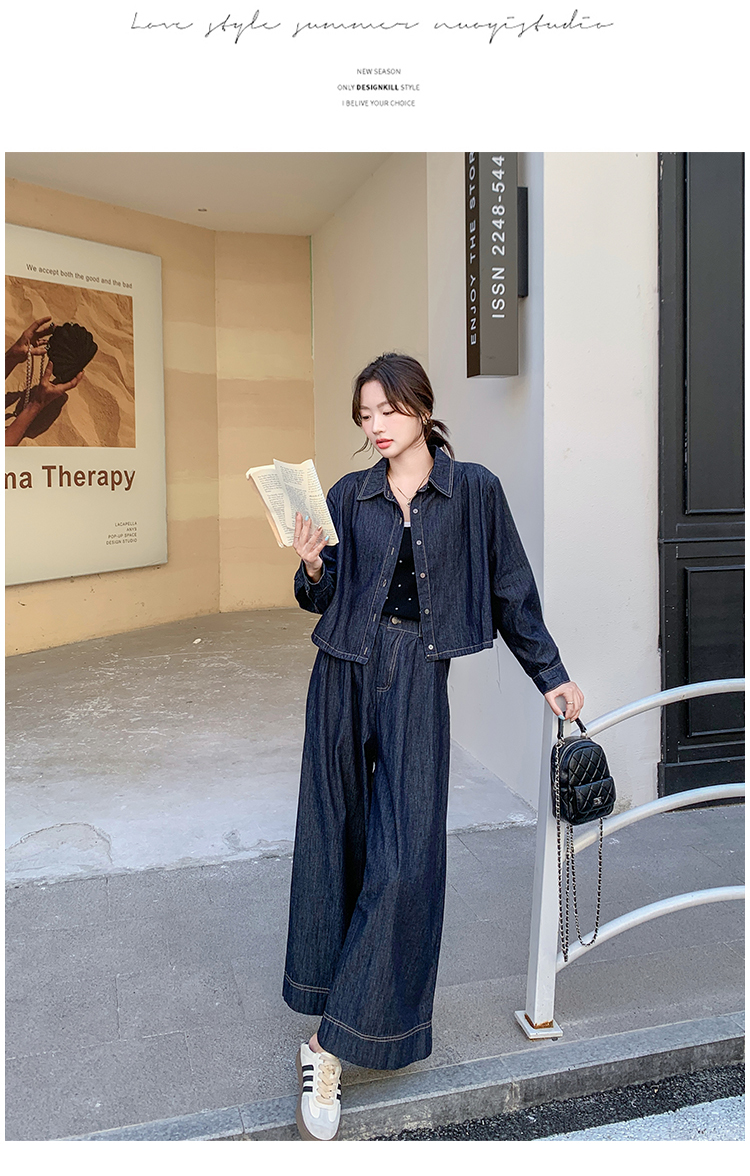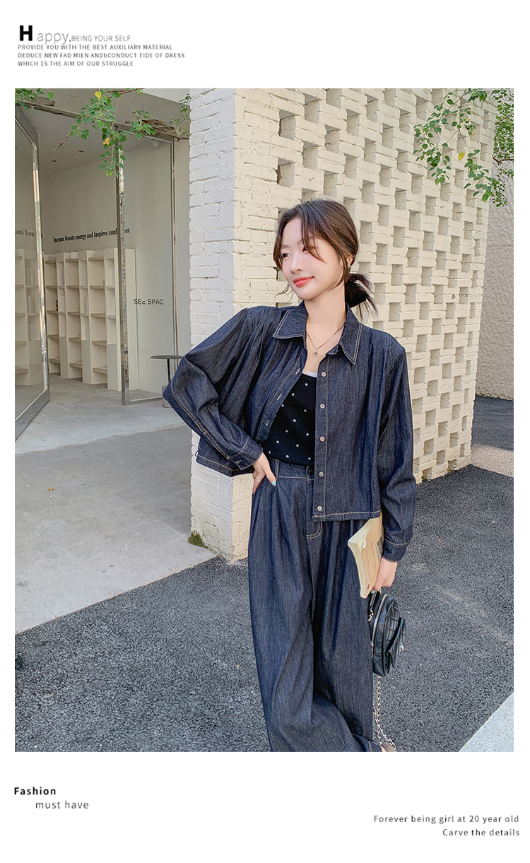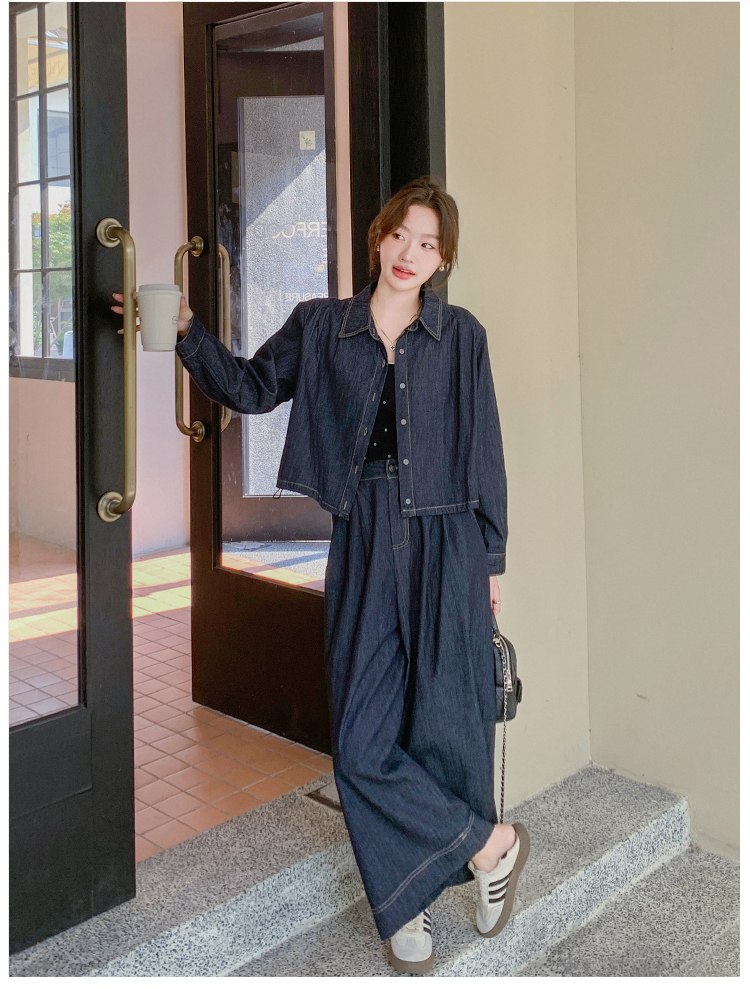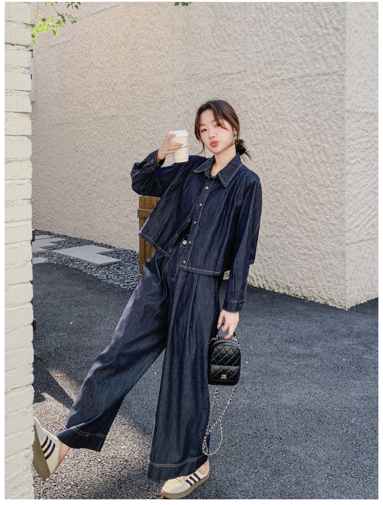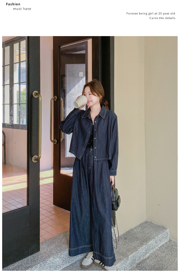 獨家訂製│2件式 韓系甜酷風牛仔外套+闊腿褲(10H6955)