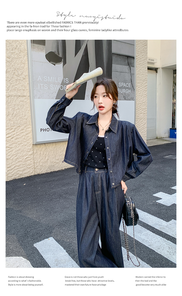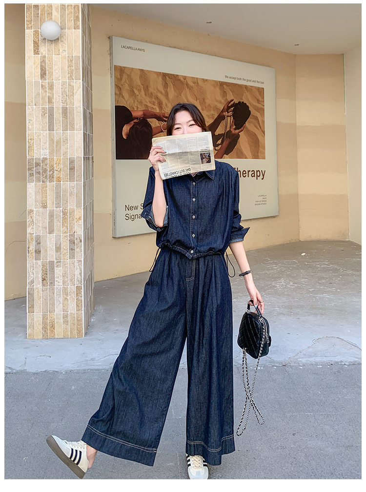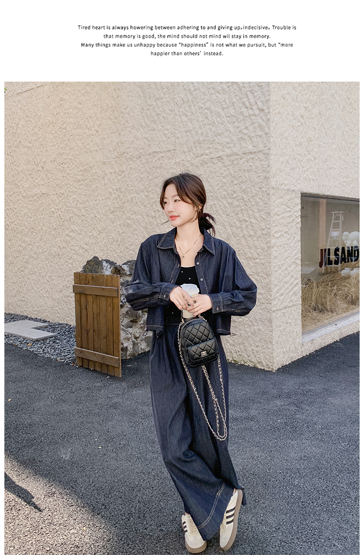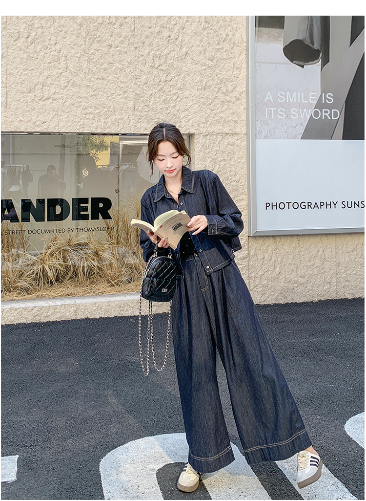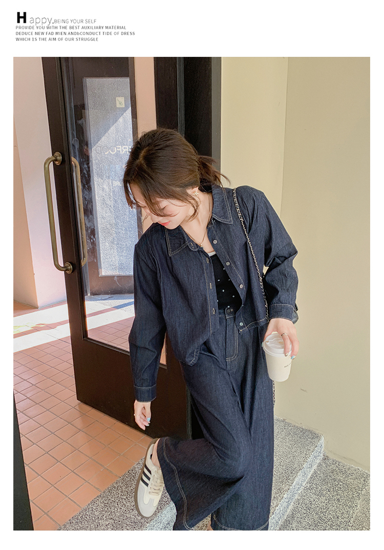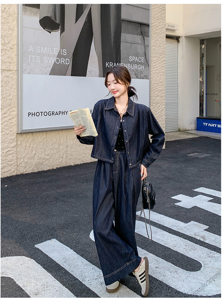 獨家訂製│2件式 韓系甜酷風牛仔外套+闊腿褲(10H6955)