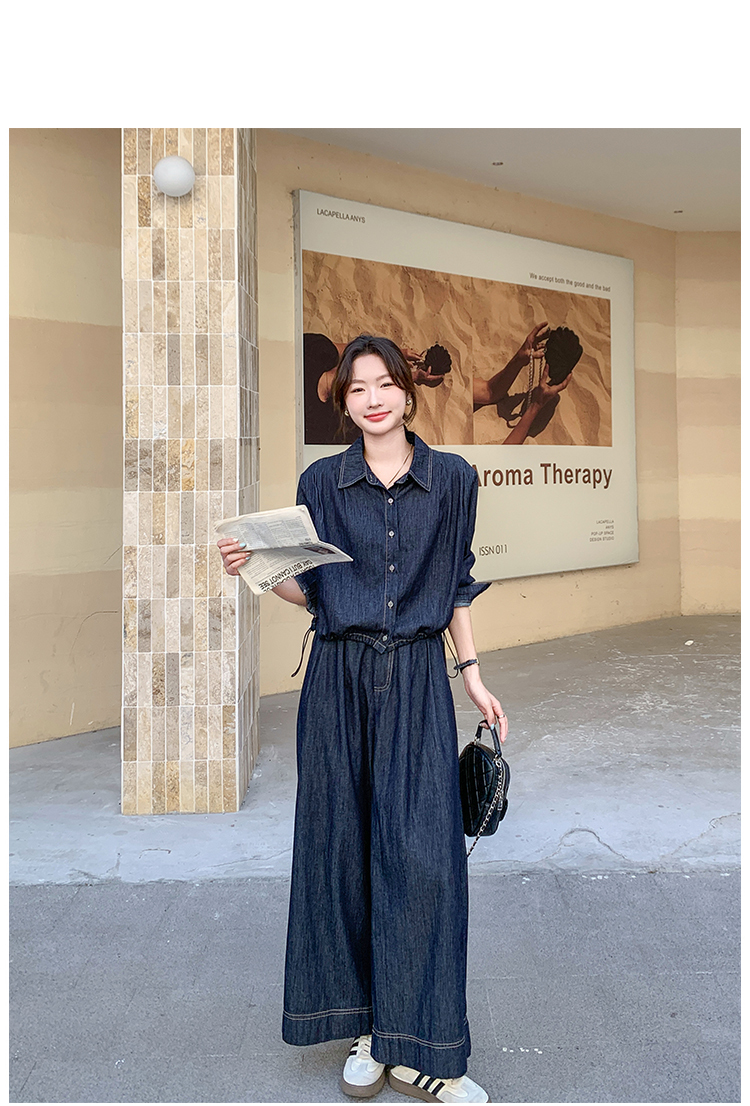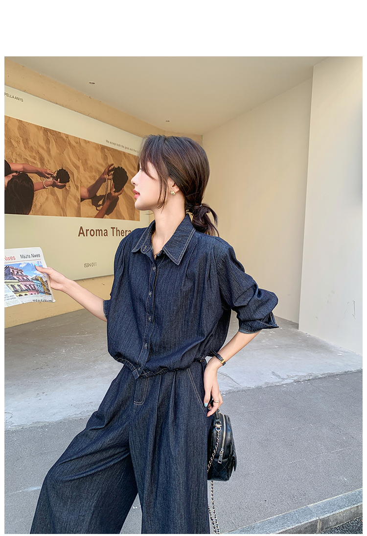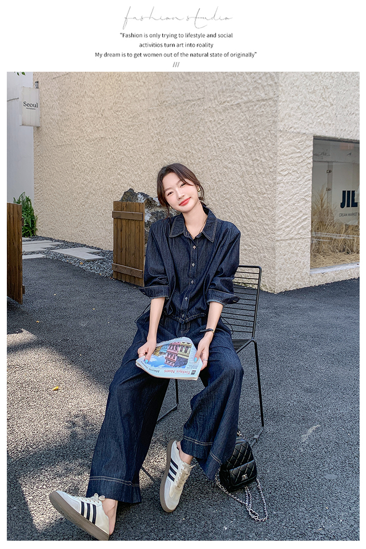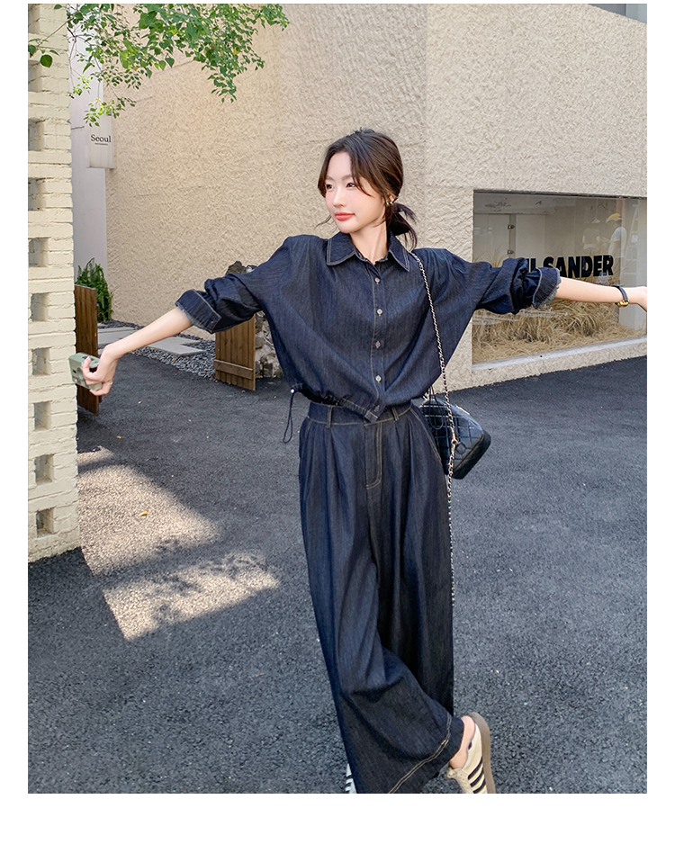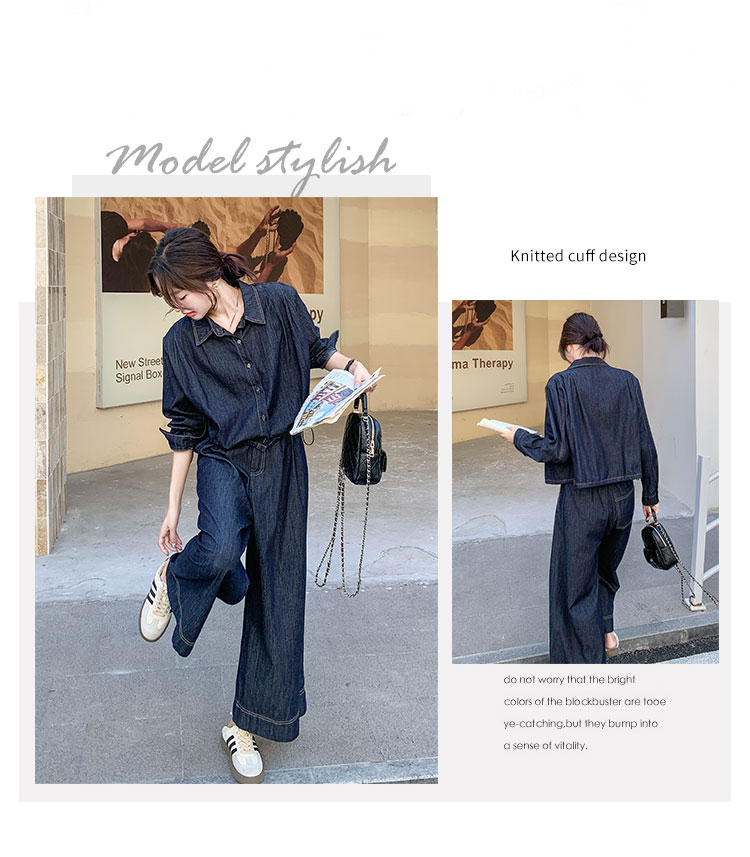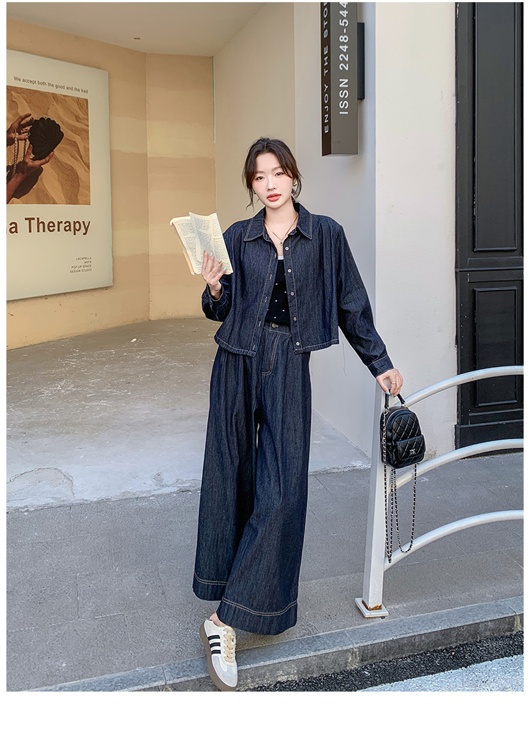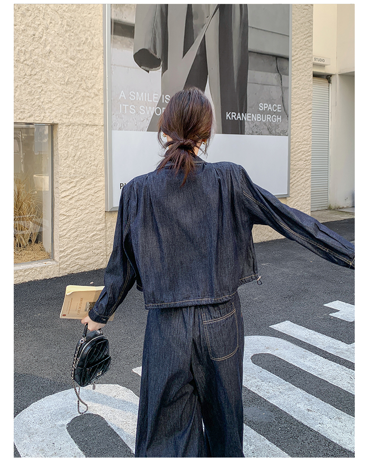 獨家訂製│2件式 韓系甜酷風牛仔外套+闊腿褲(10H6955)