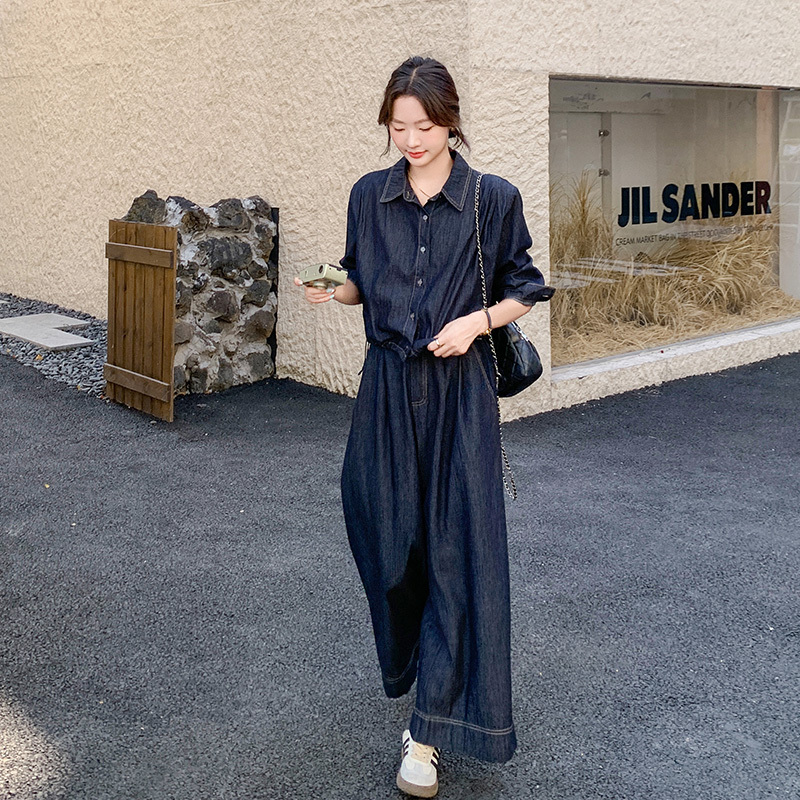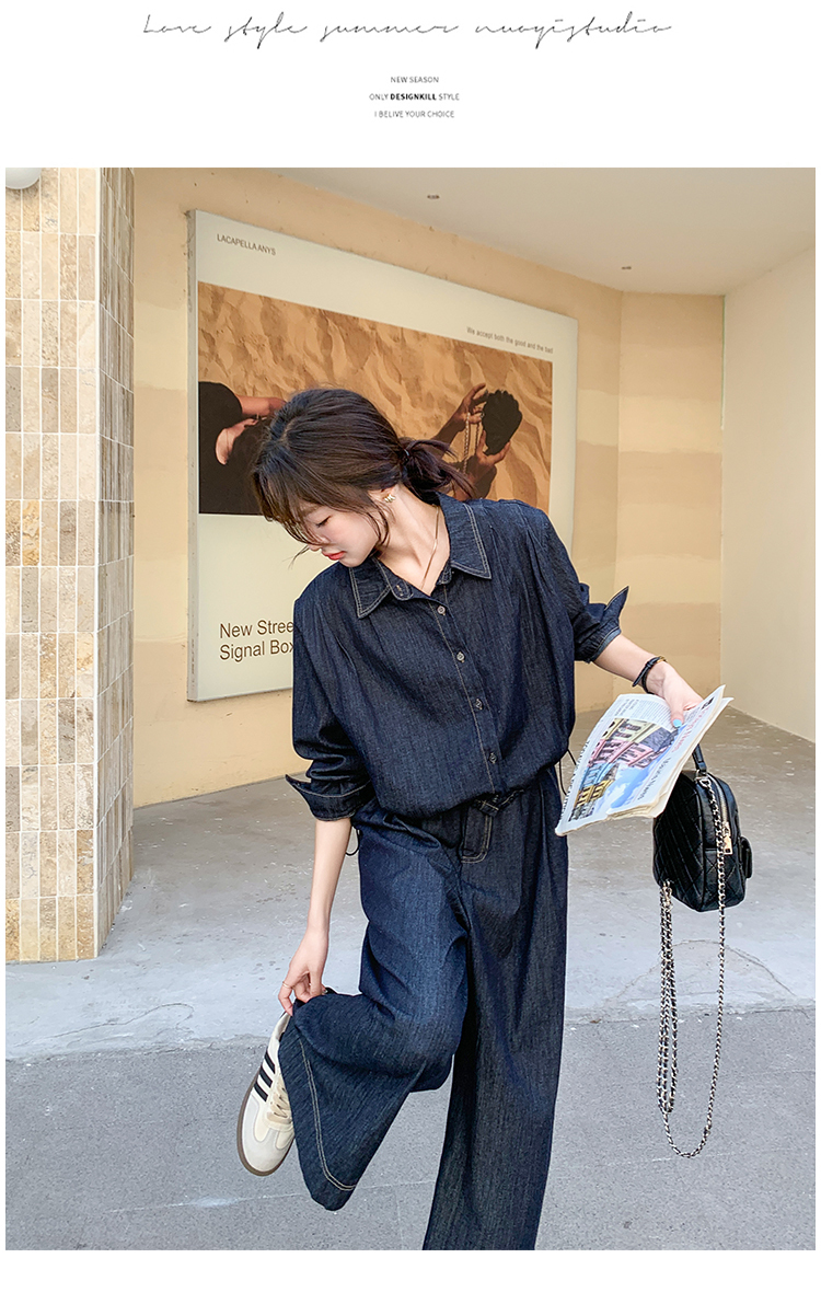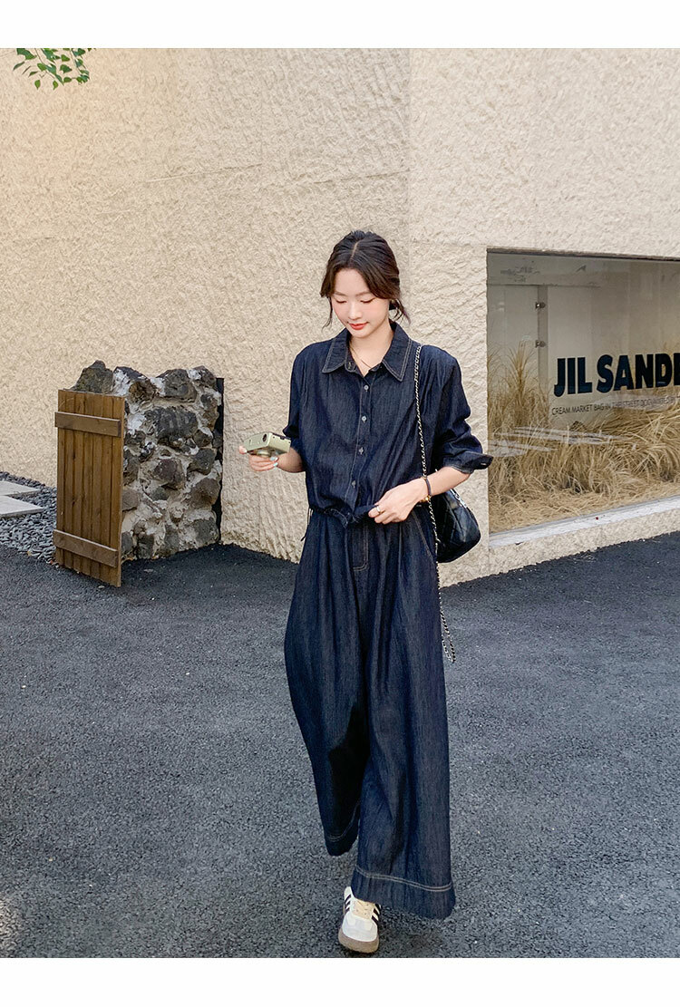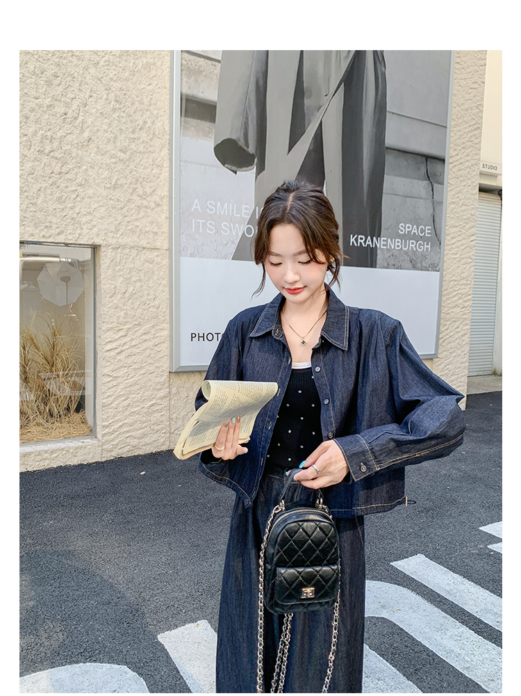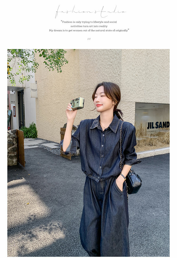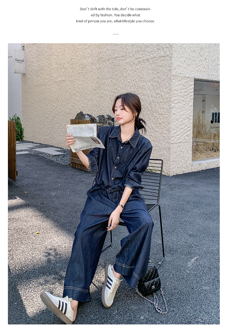 獨家訂製│2件式 韓系甜酷風牛仔外套+闊腿褲(10H6955)