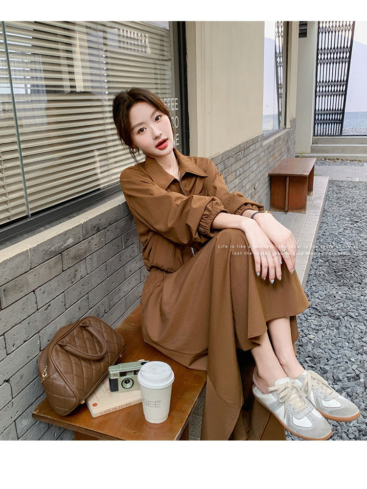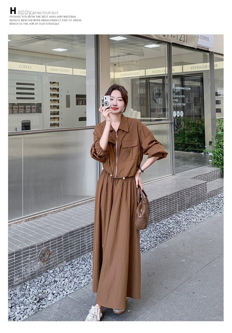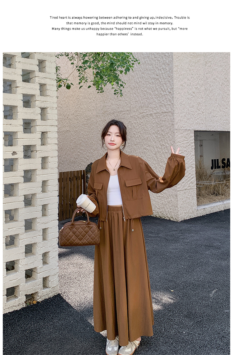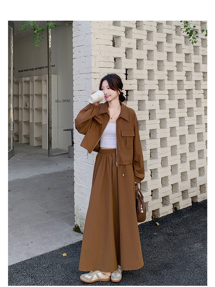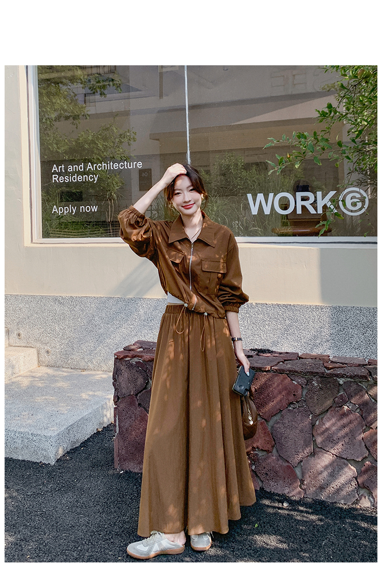 獨家訂製│2件式 韓系氣質感拉鍊造型外套+A字裙(10H6973)