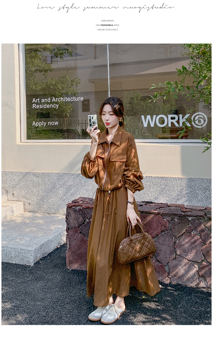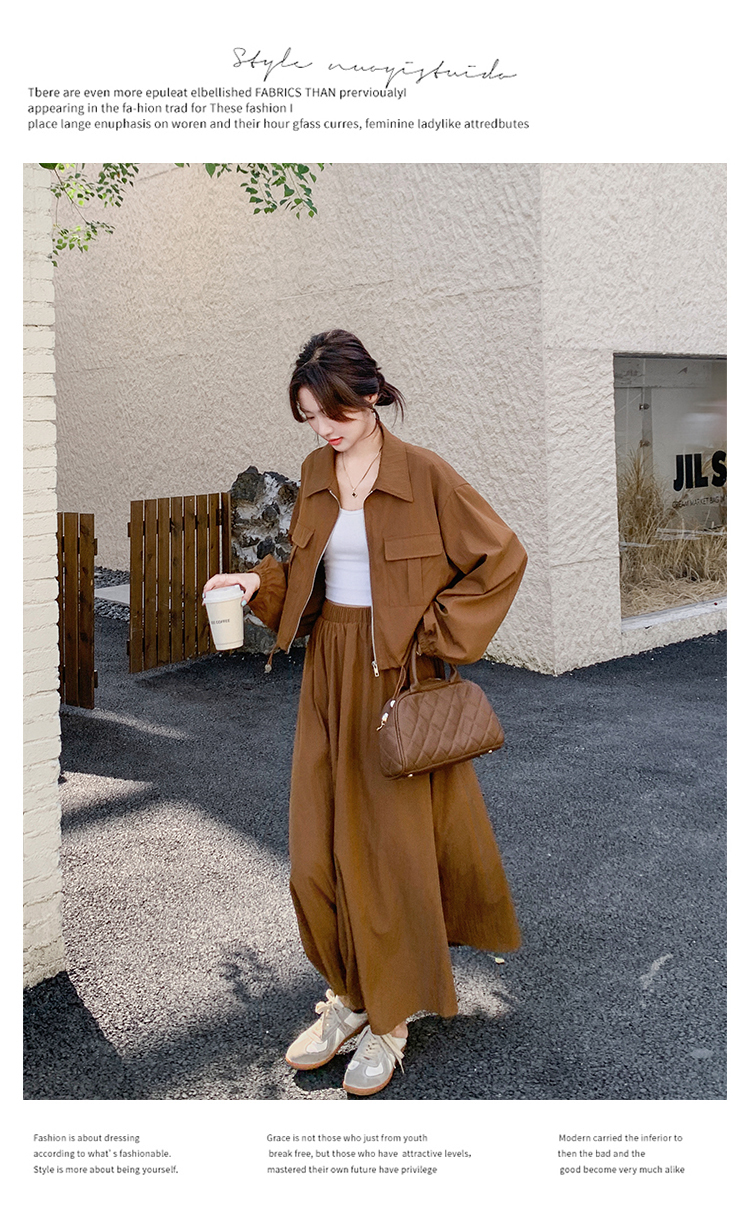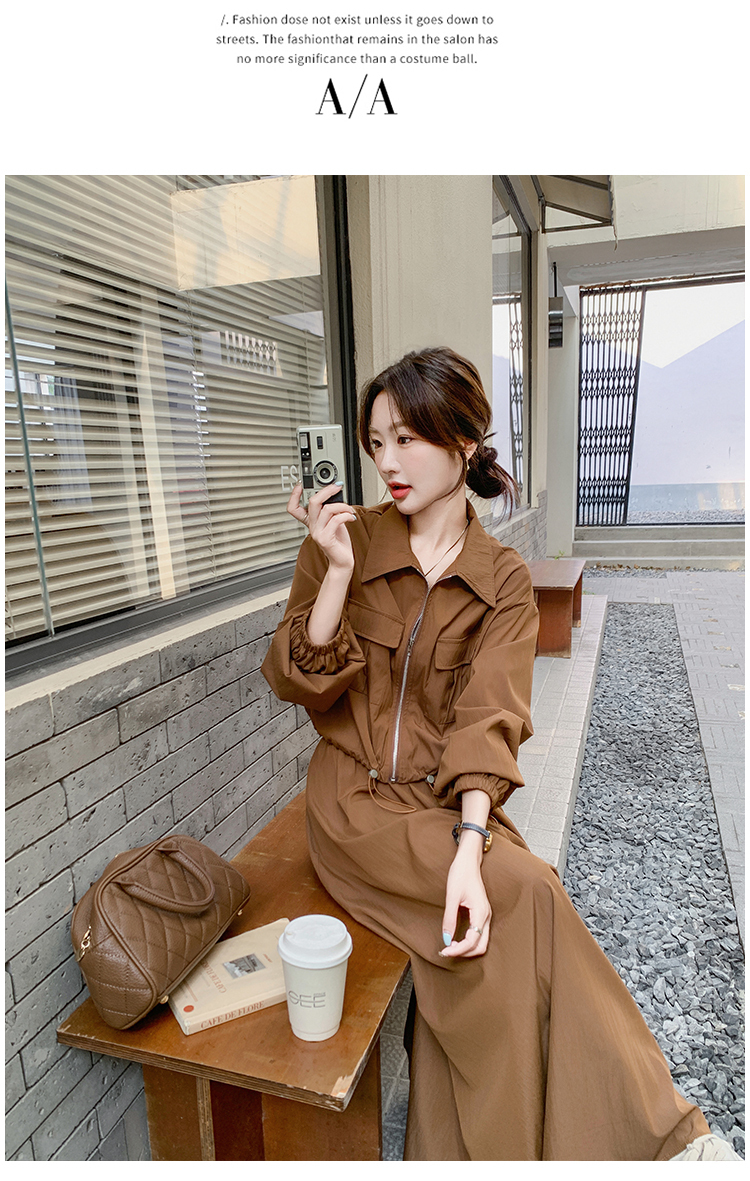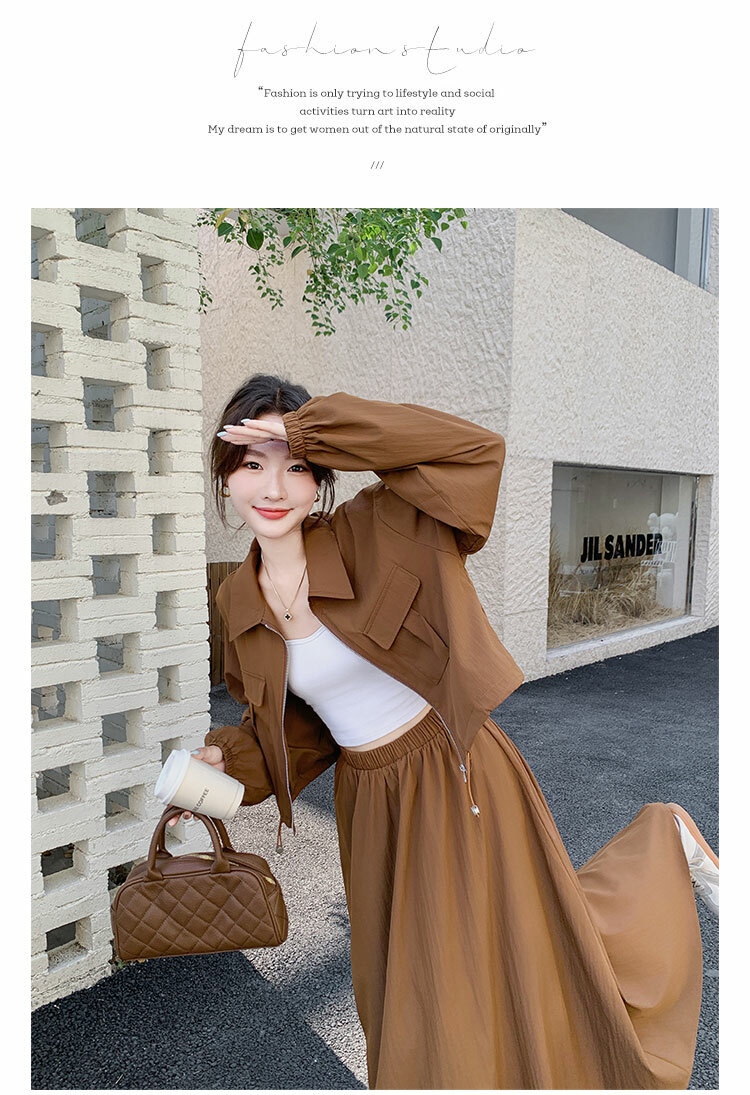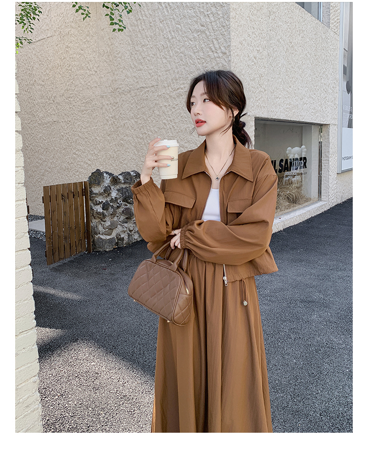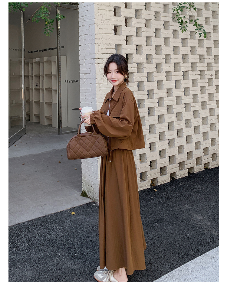 獨家訂製│2件式 韓系氣質感拉鍊造型外套+A字裙(10H6973)