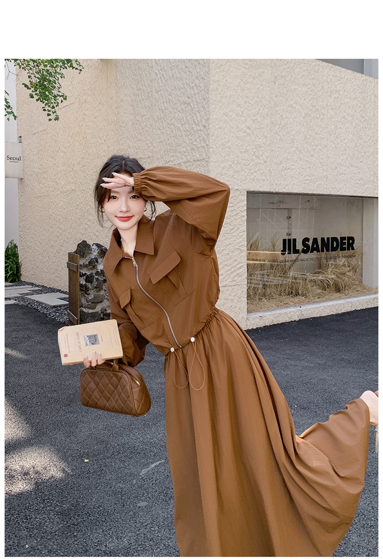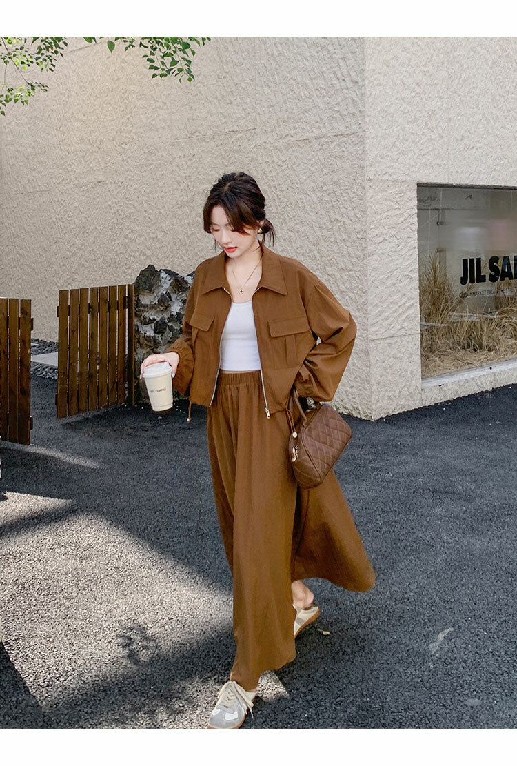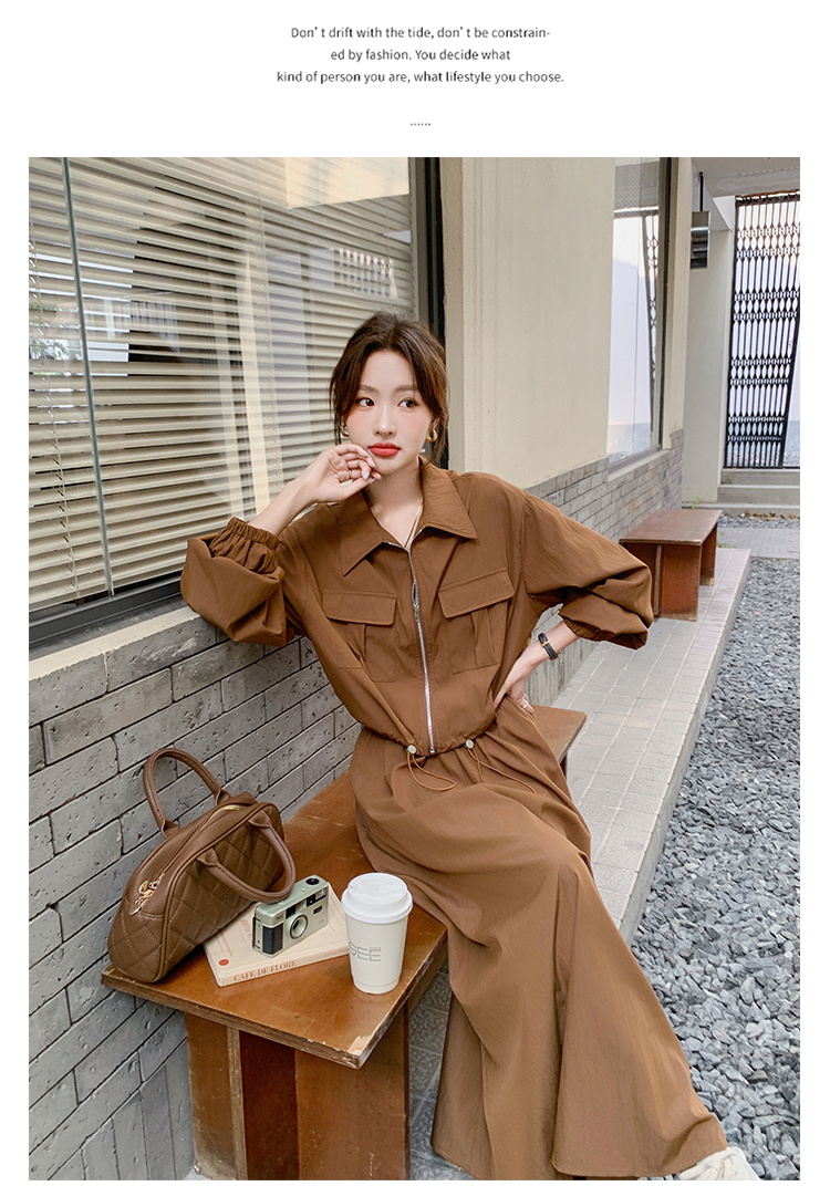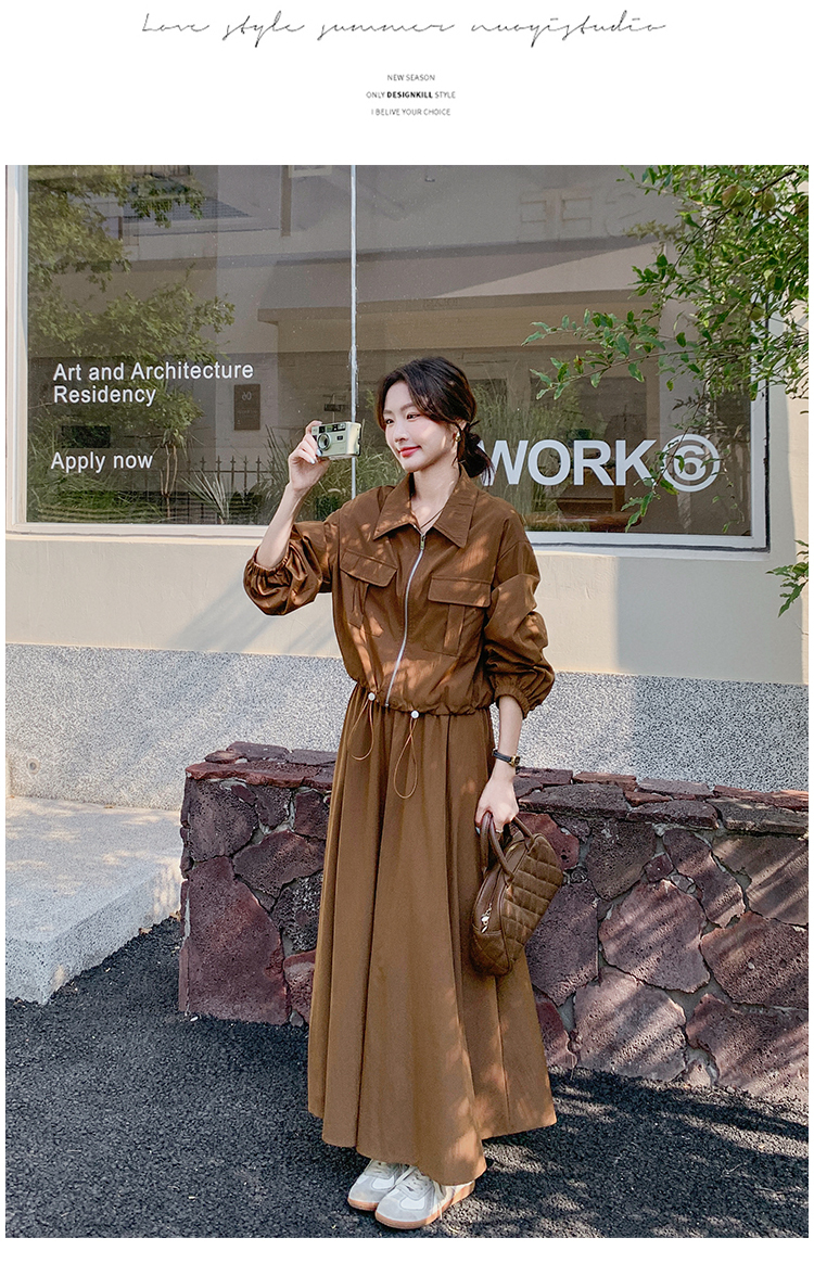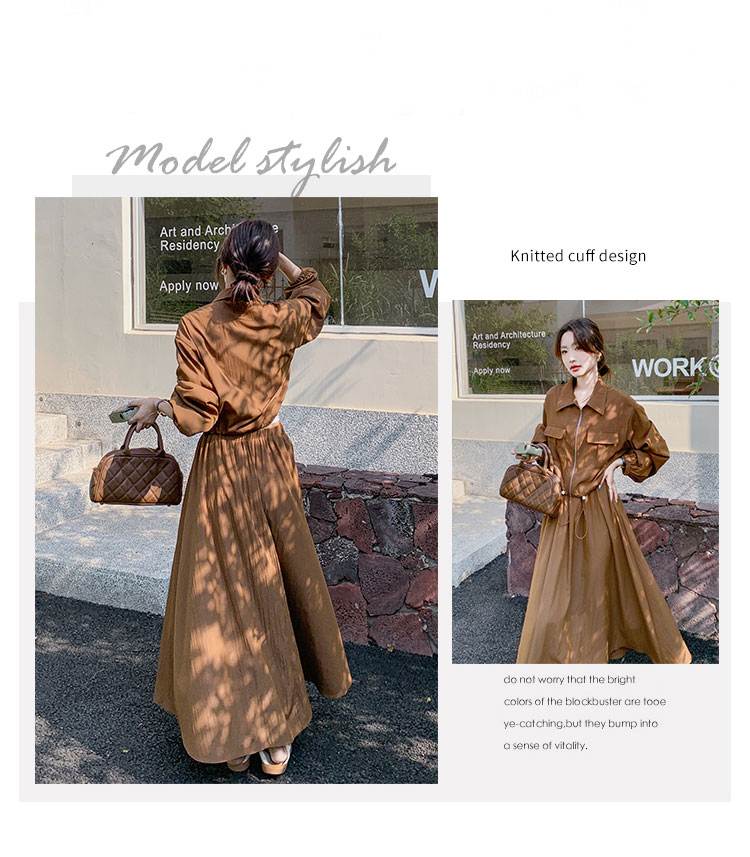 獨家訂製│2件式 韓系氣質感拉鍊造型外套+A字裙(10H6973)