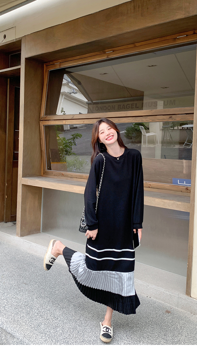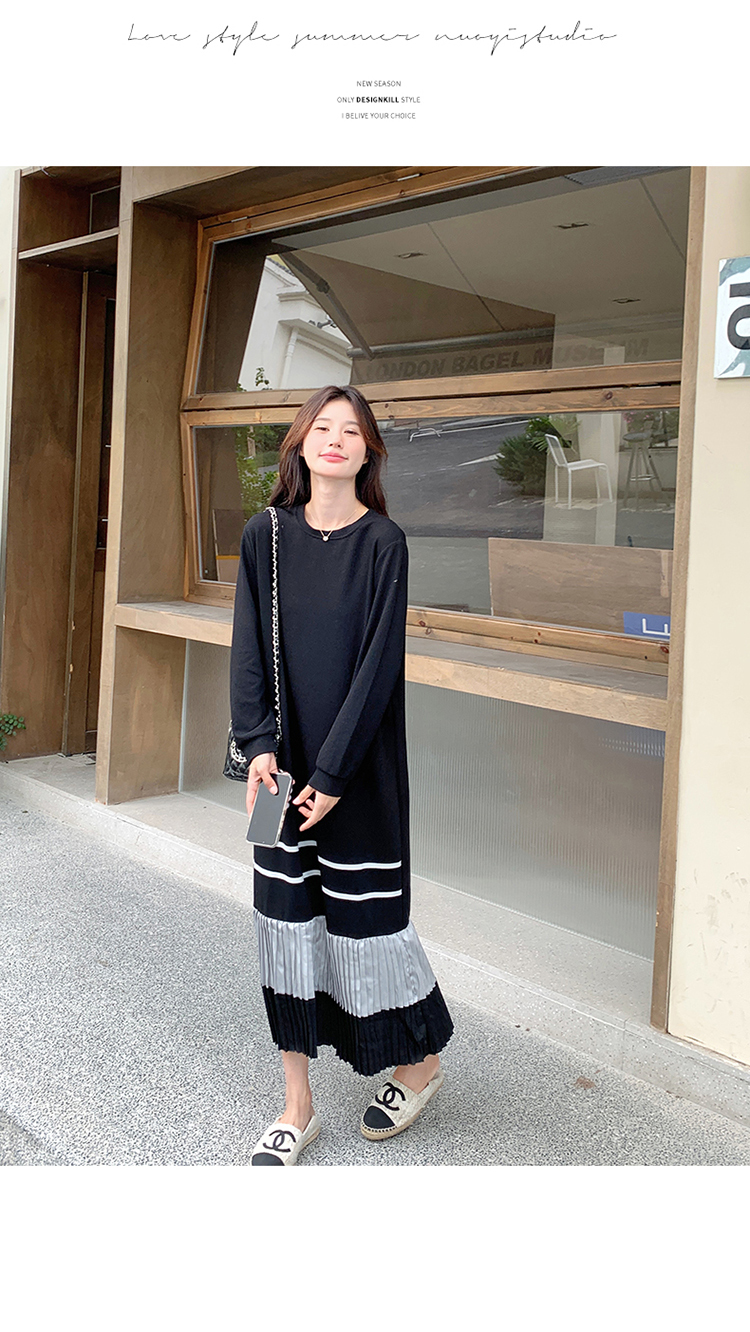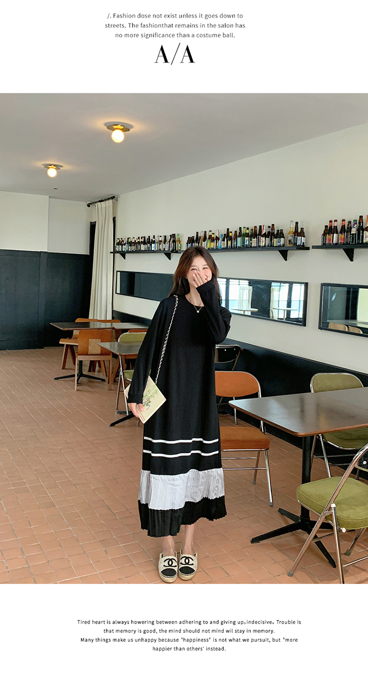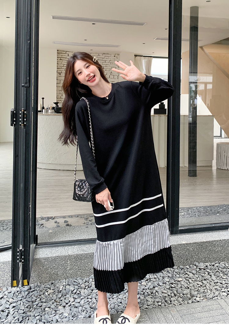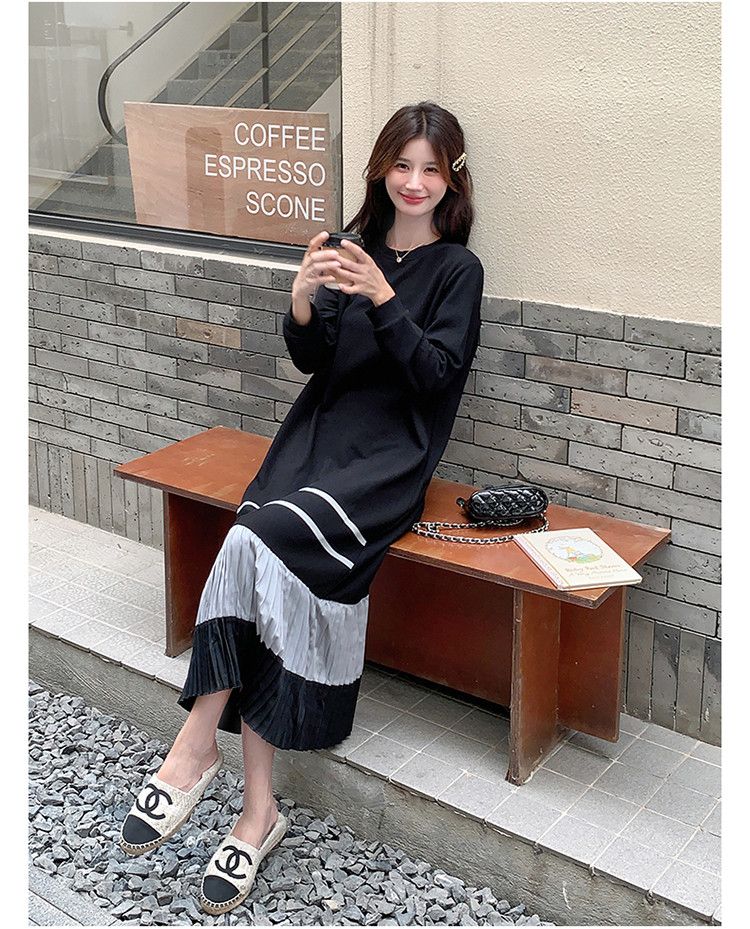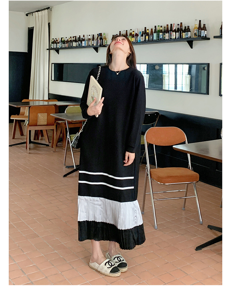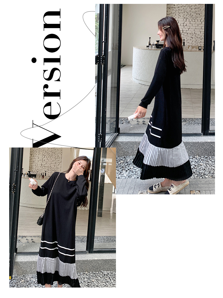 獨家訂製│韓系氣質感百褶拼接造型撞色連衣裙(10H6985)