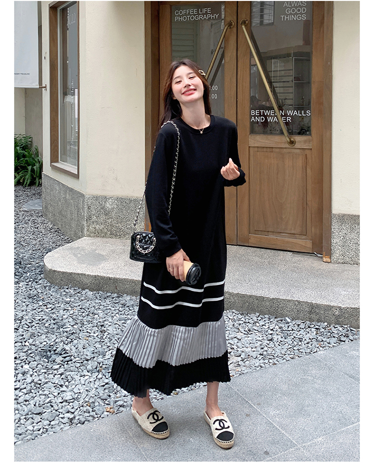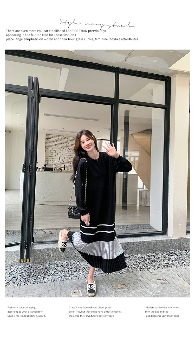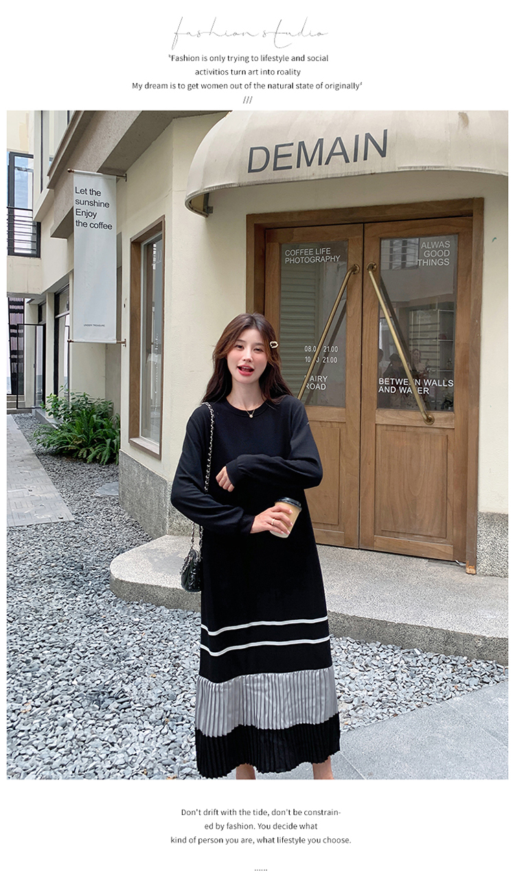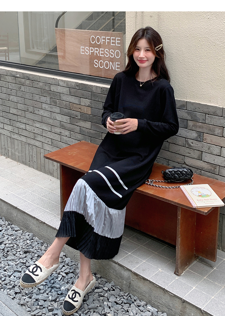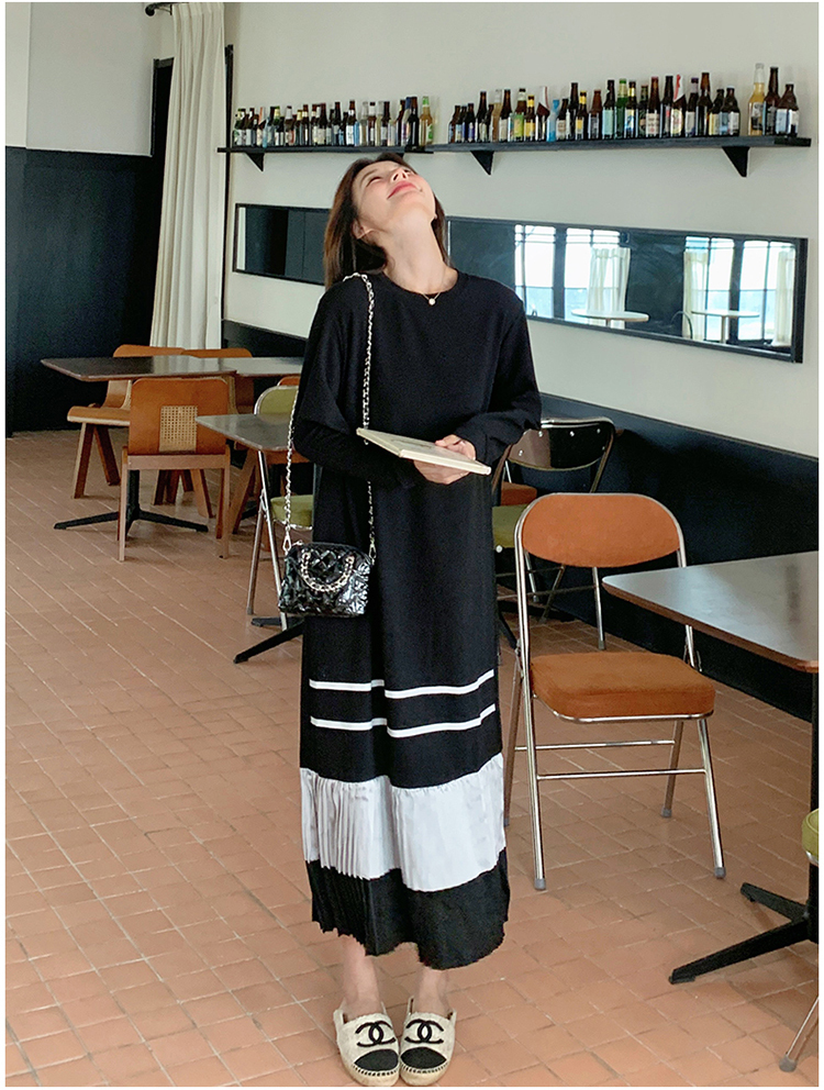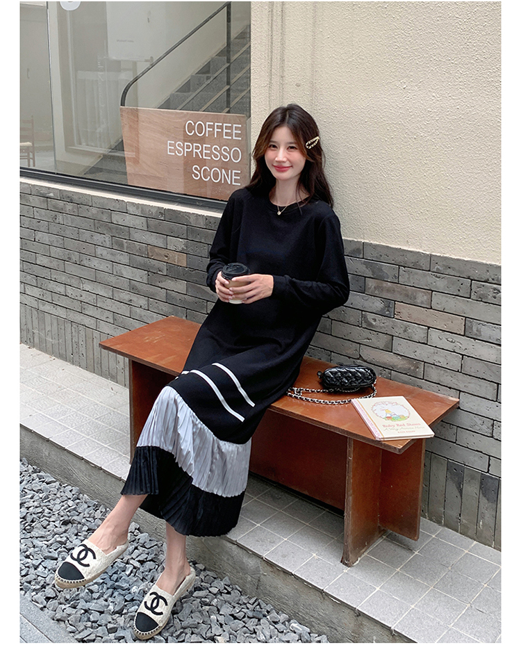 獨家訂製│韓系氣質感百褶拼接造型撞色連衣裙(10H6985)
