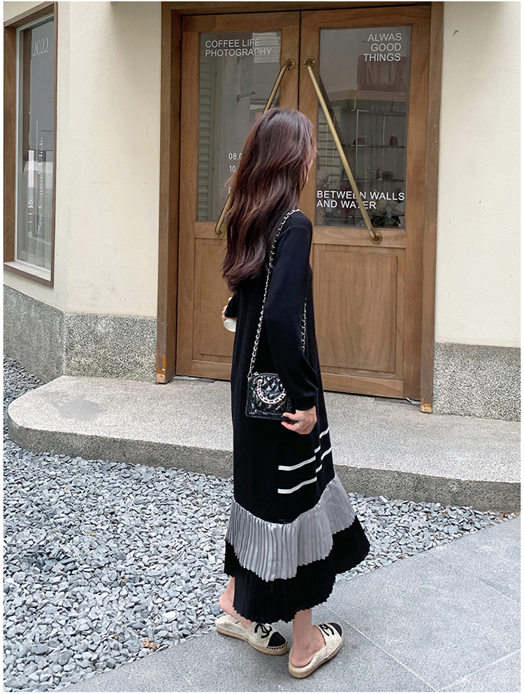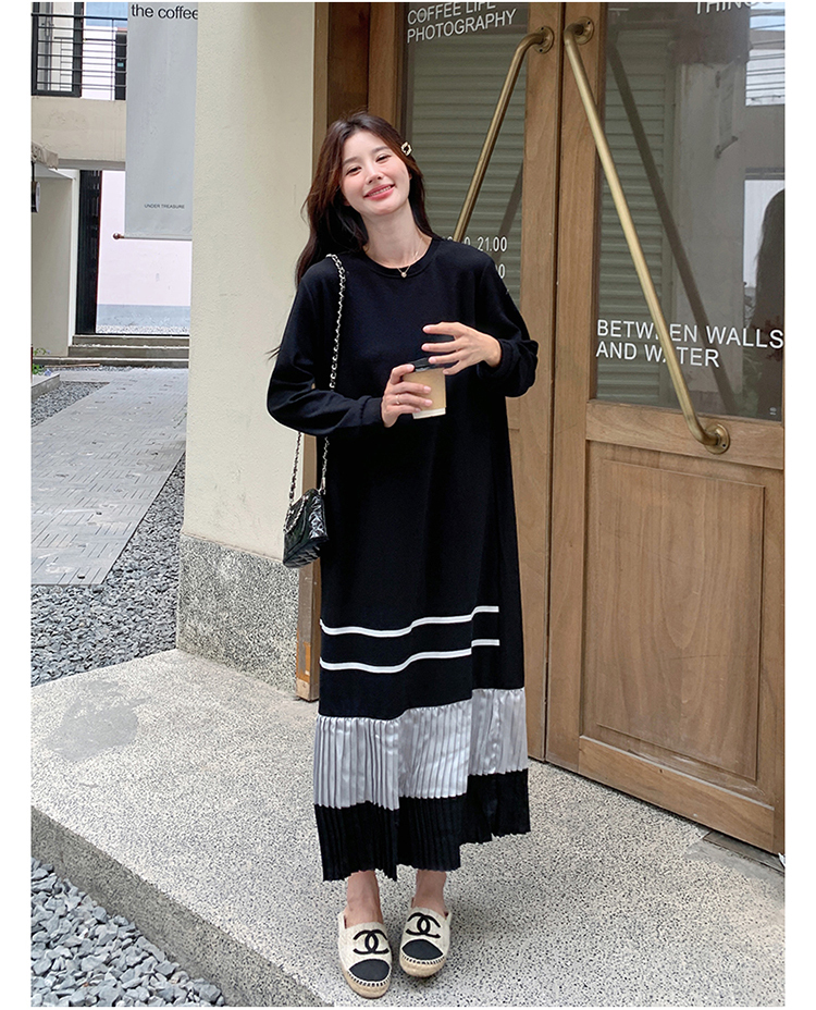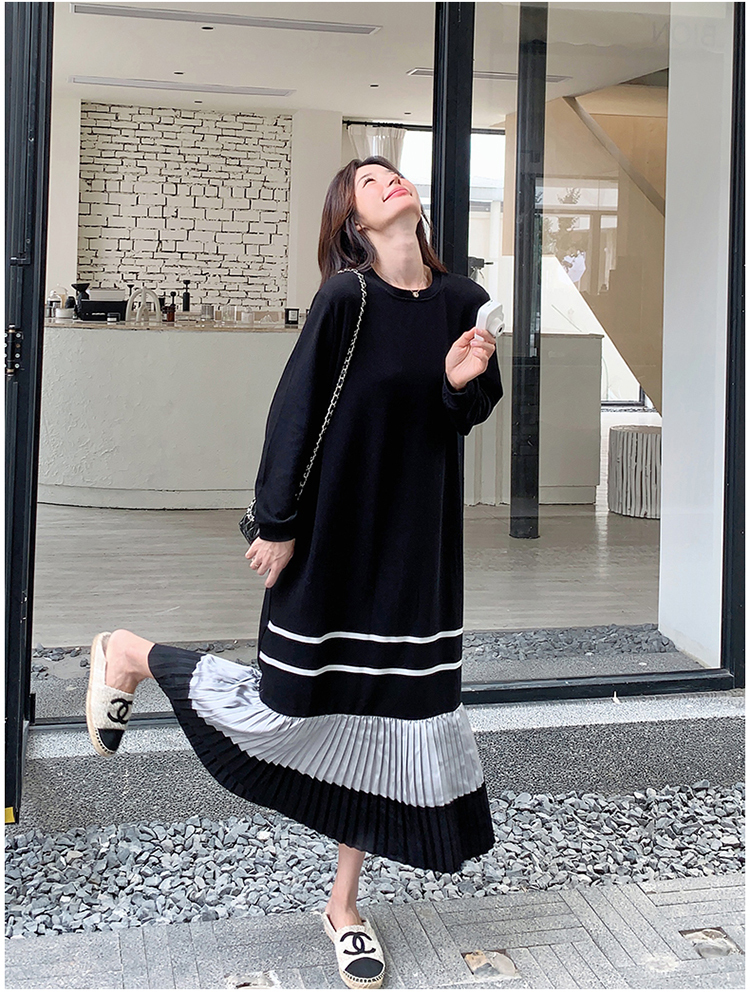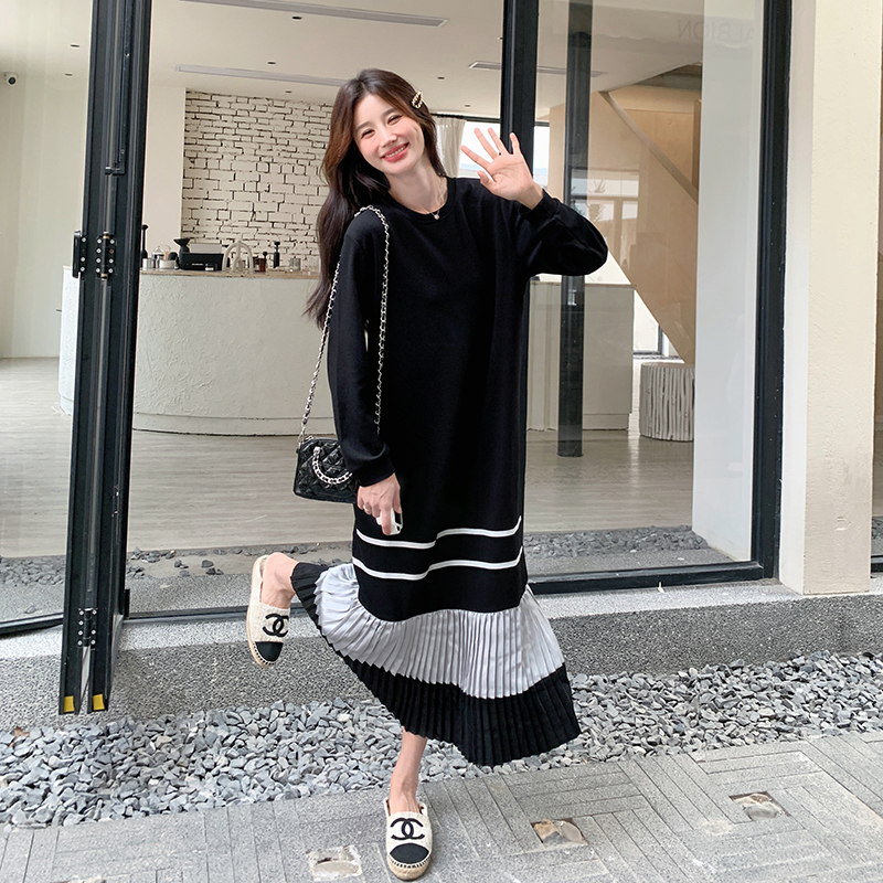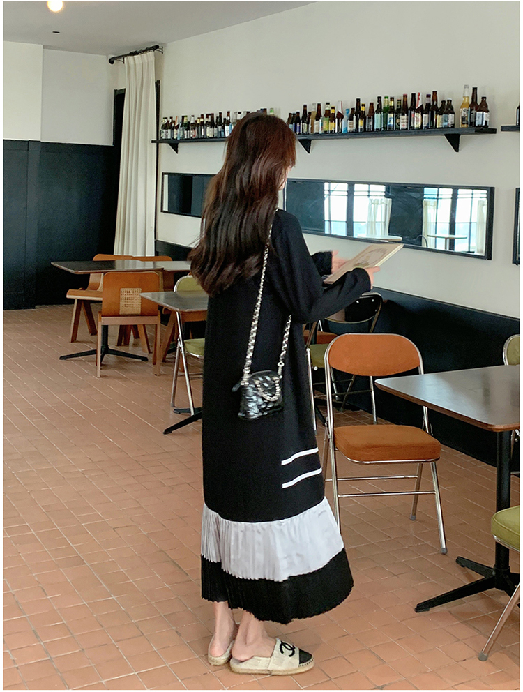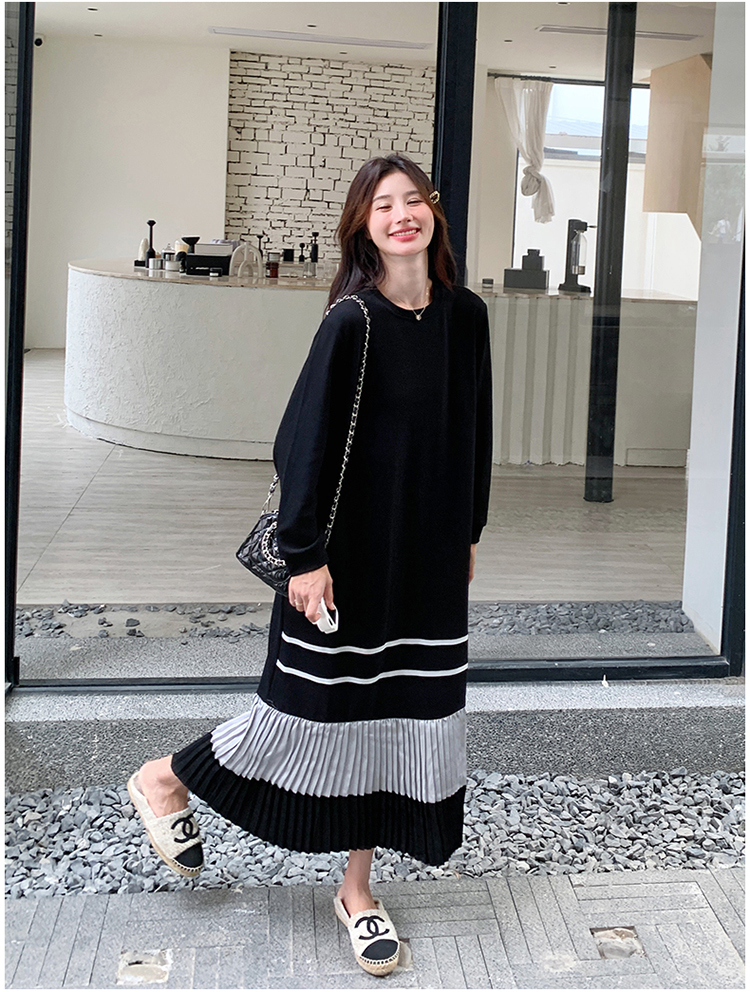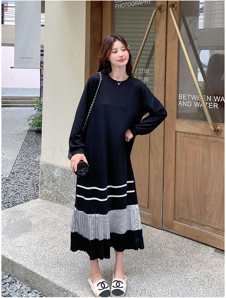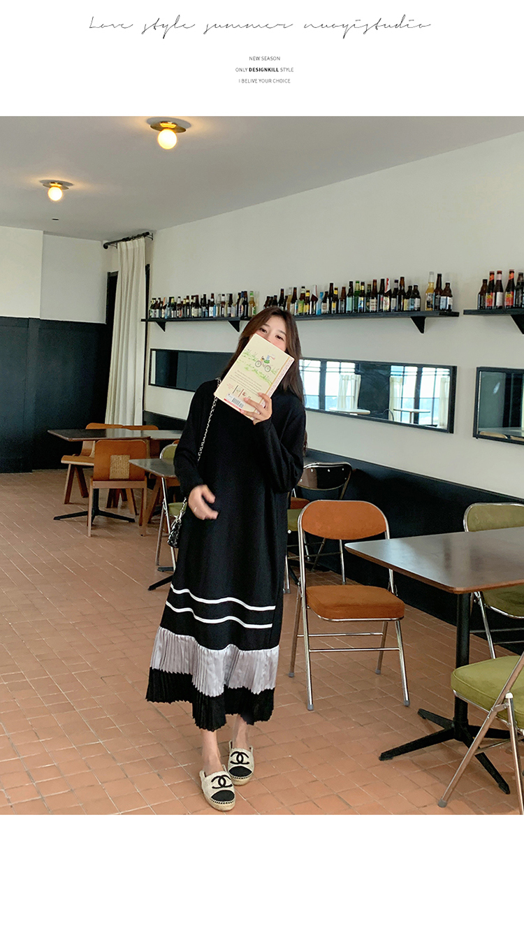 獨家訂製│韓系氣質感百褶拼接造型撞色連衣裙(10H6985)